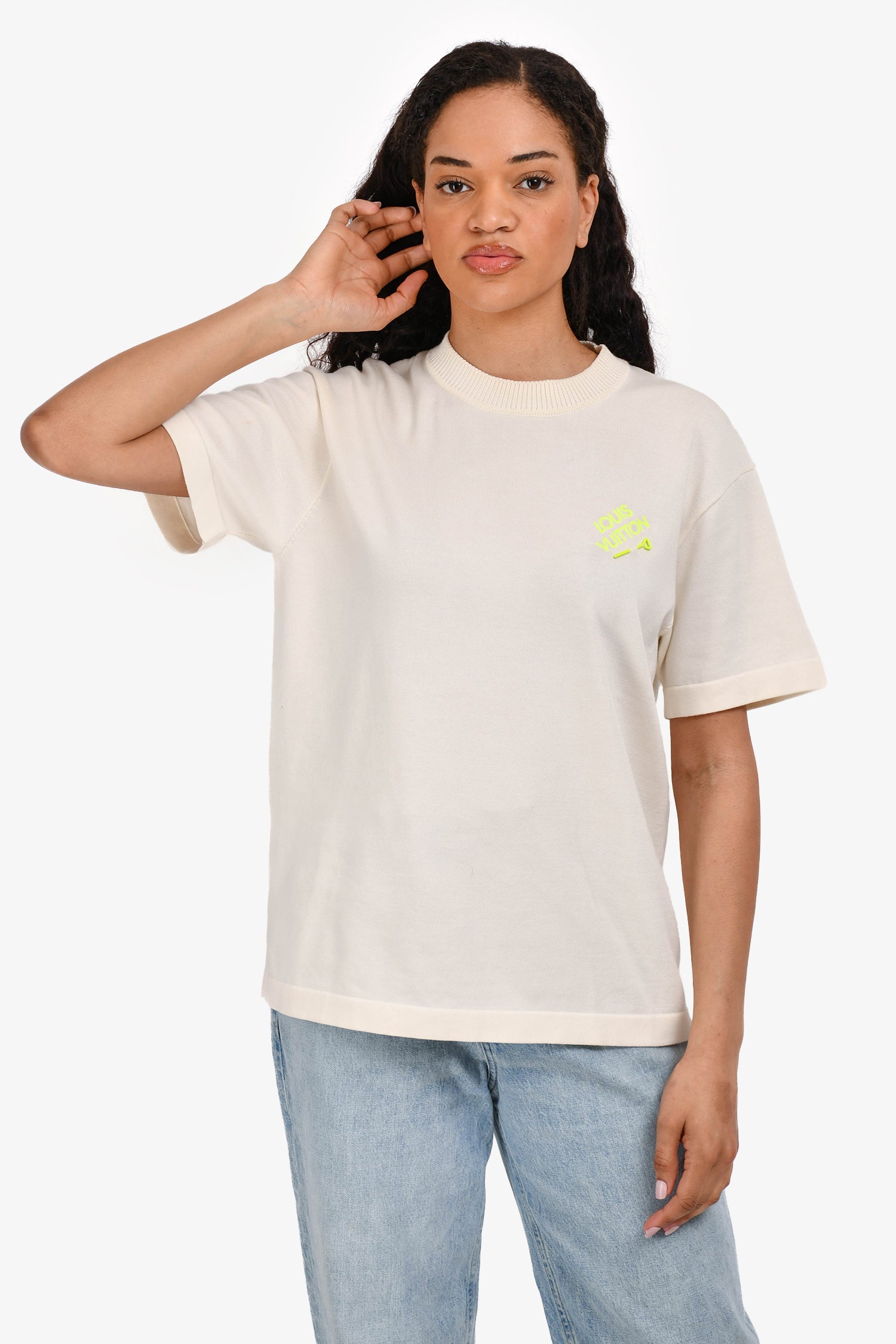 Louis Vuitton 2022 Cream Knit Logo Embroidered Short Sleeve Sweater Size XS (As Is)