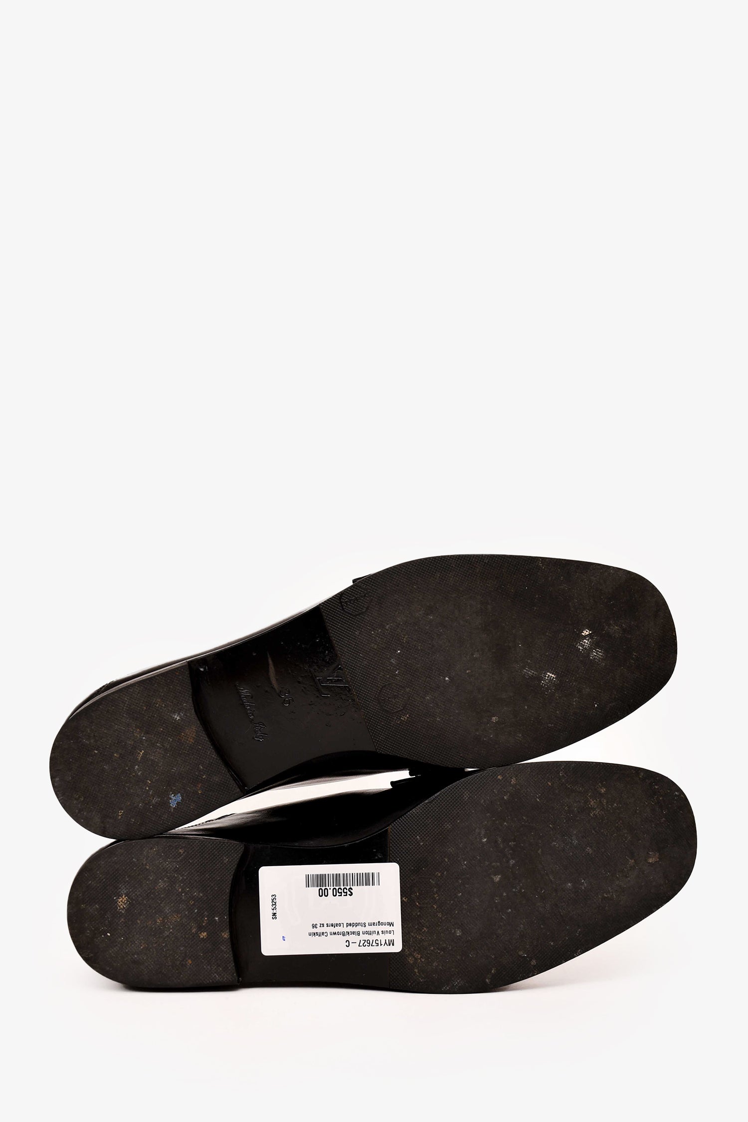 Refresh availabilityLouis Vuitton Black/Brown Calfskin Monogram Studded Loafers. Slip-on style. Round toe. Leather sole. Tonal stitching.