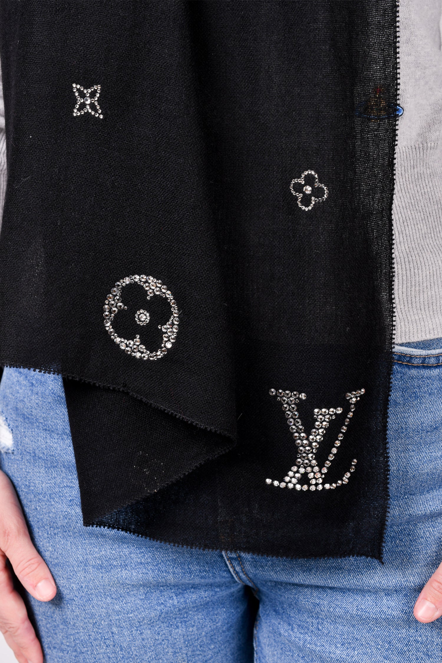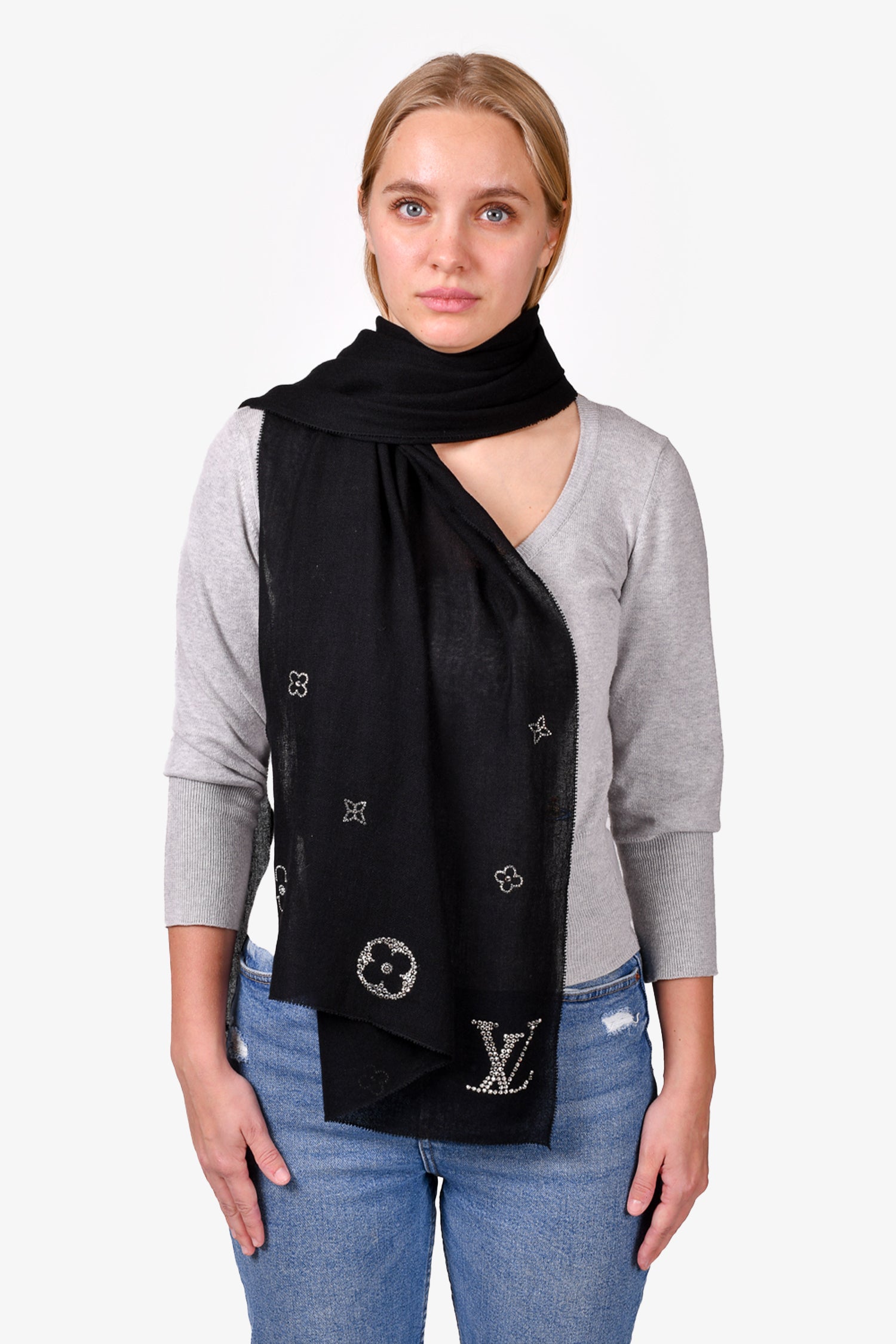 Refresh availabilityLouis Vuitton Black Cashmere Blossom Crystal Scarf. Tonal stitching.