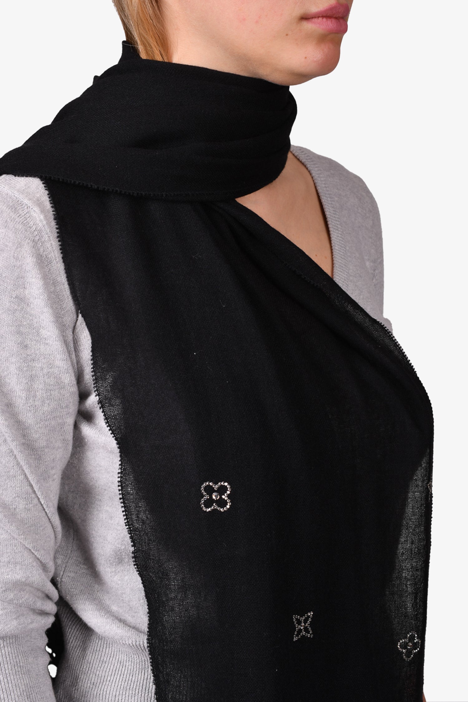 Louis Vuitton Black Cashmere Blossom Crystal Scarf