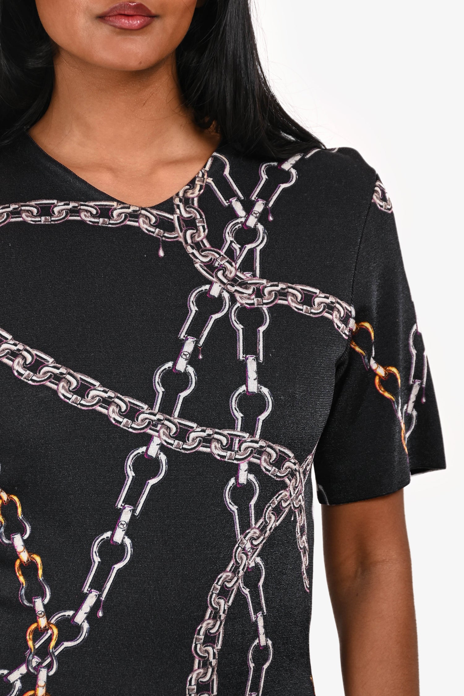 Refresh availabilityLouis Vuitton Black Chain Graphic Midi Dress. Pull-on. Round neckline. Tonal stitching.