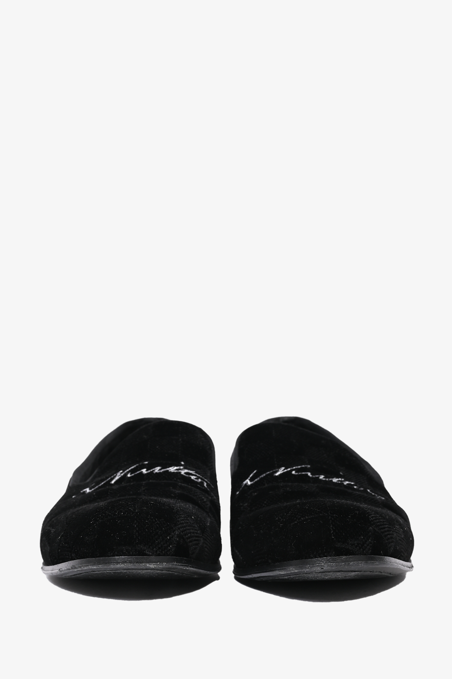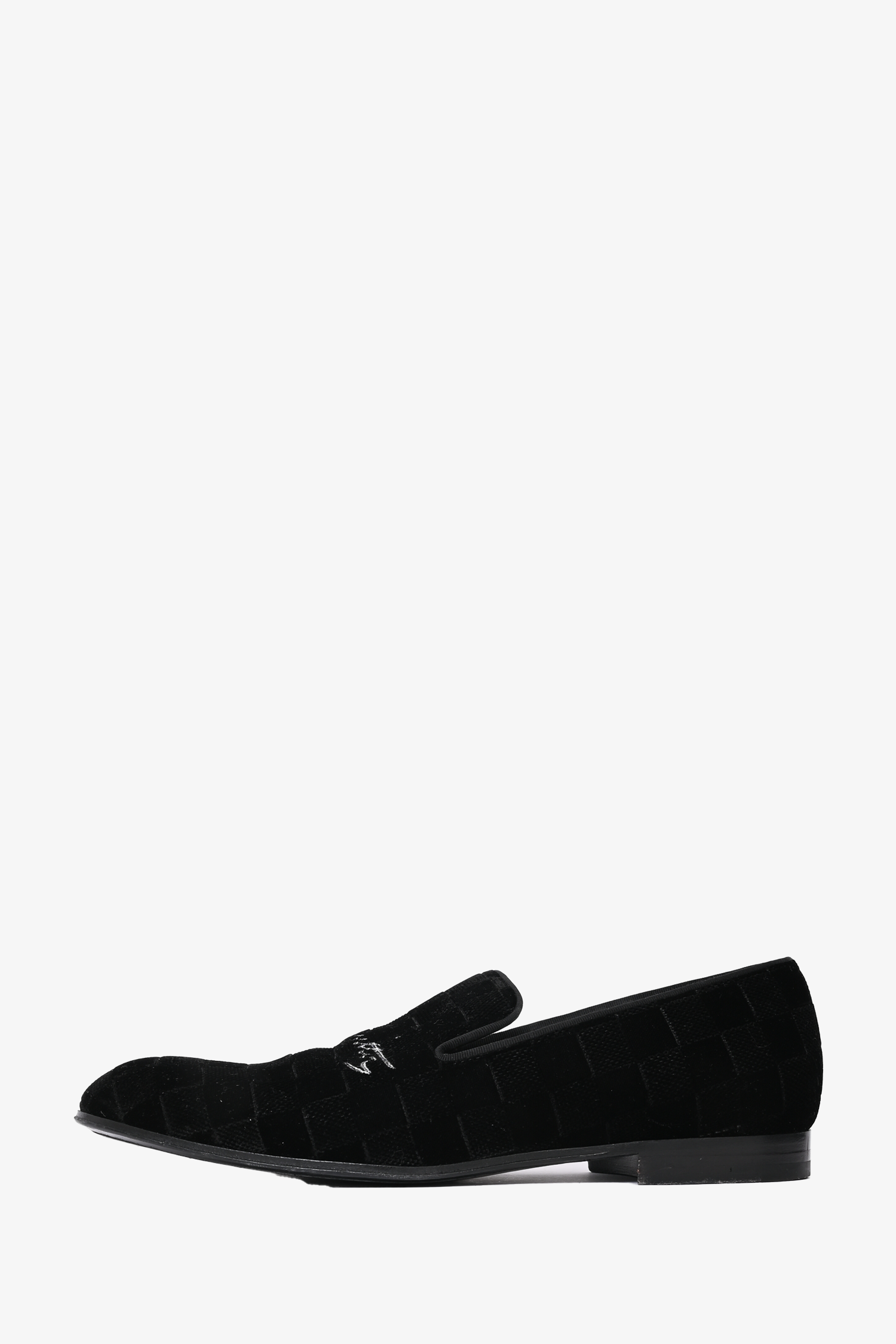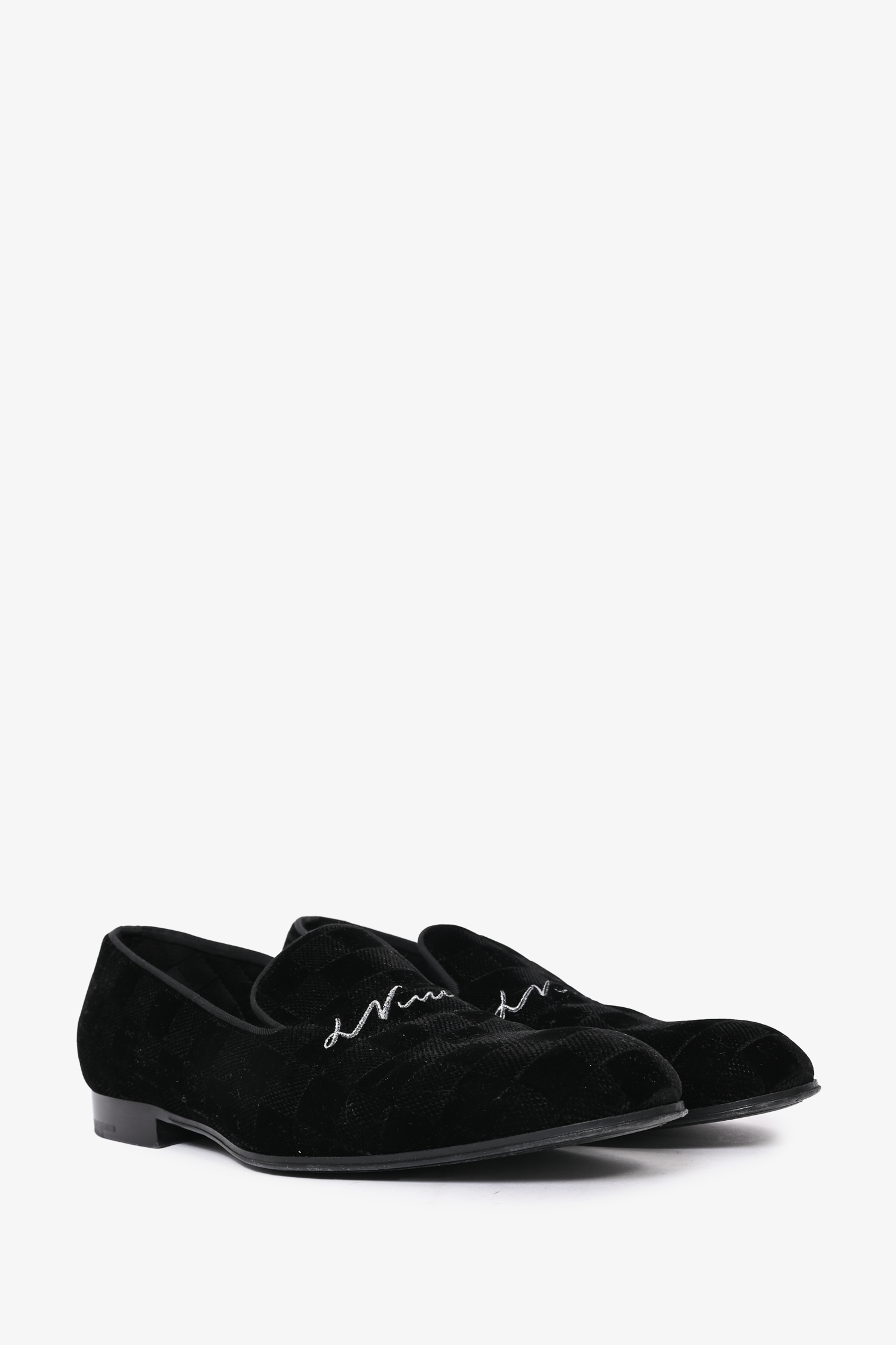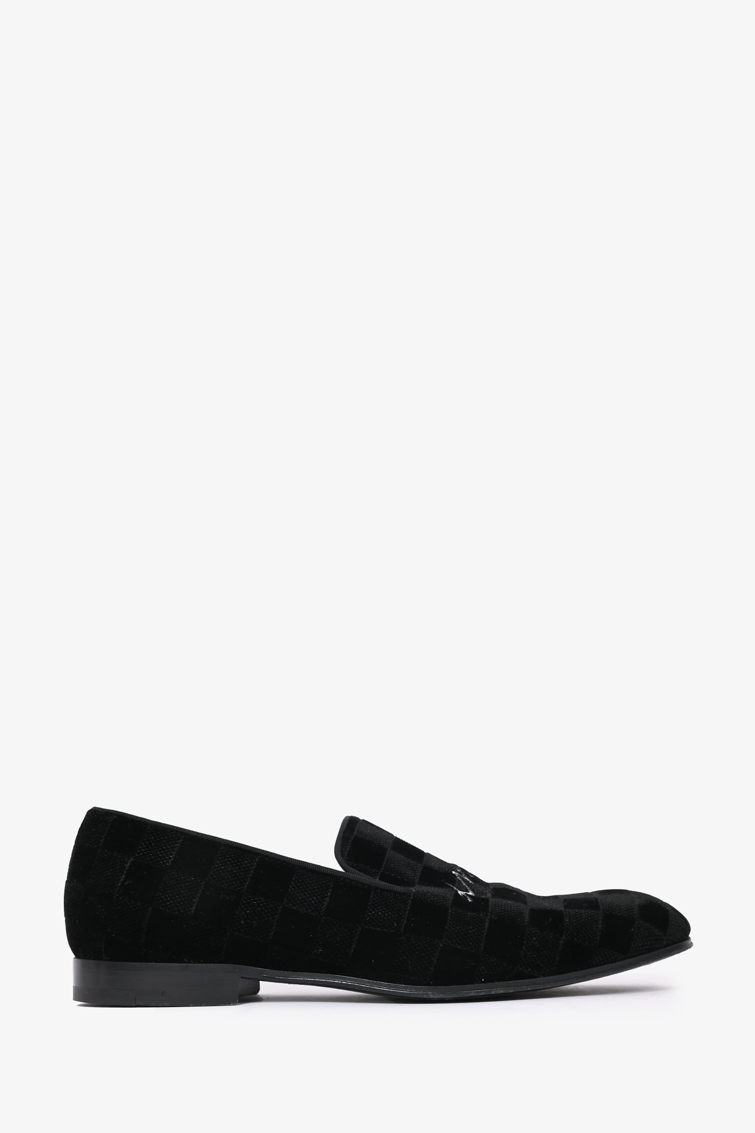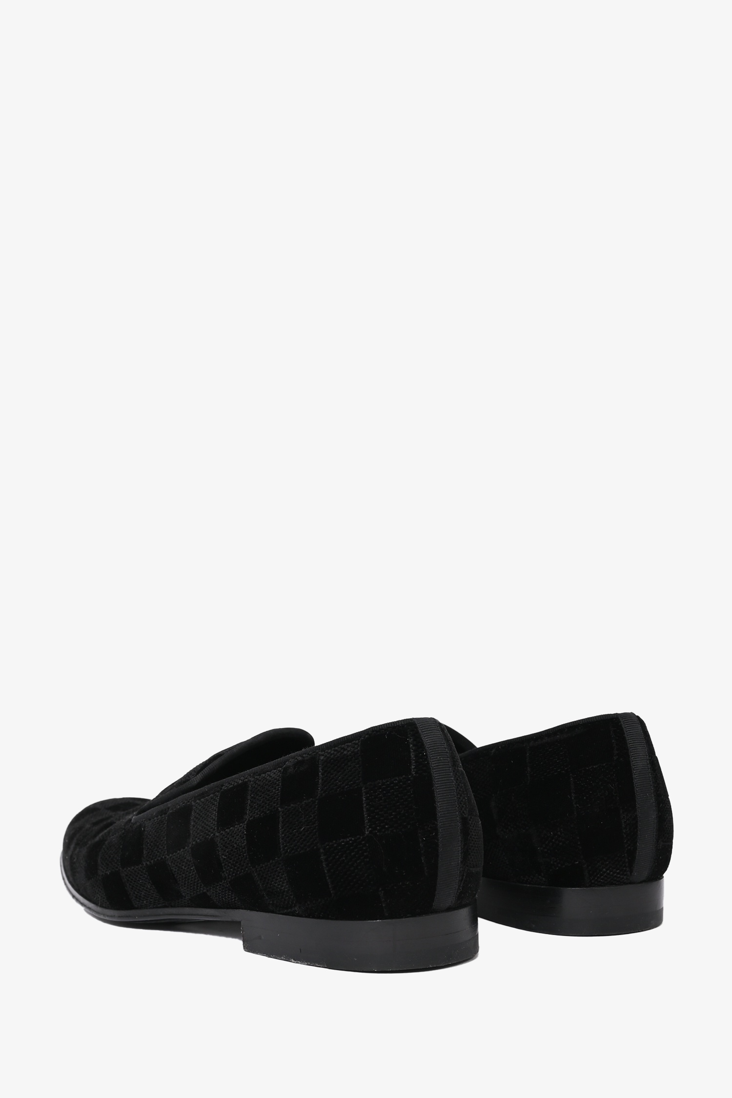 Refresh availabilityLouis Vuitton Black Checkered Velvet Loafers. Slip-on. Round toe. Tonal stitching.