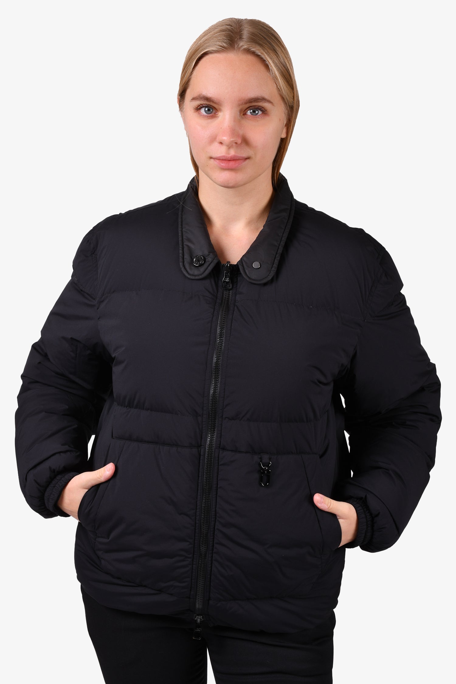 Refresh availabilityLouis Vuitton Black Monogram Nylon Reversible Bomber Jacket. Front two-way zip closure. Front pockets. Elasticized cuffs. Tonal stitching.