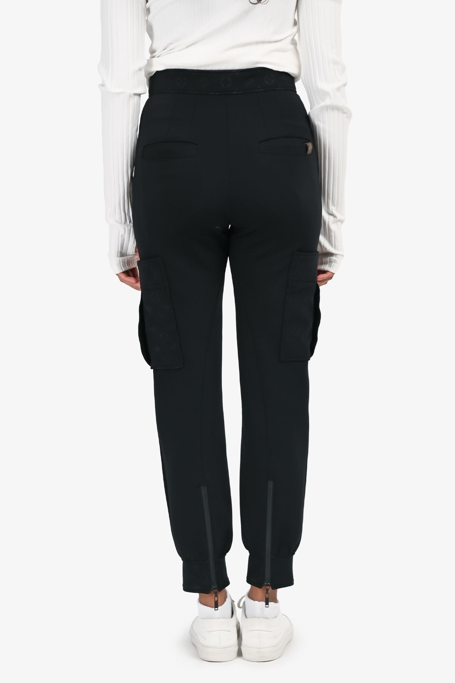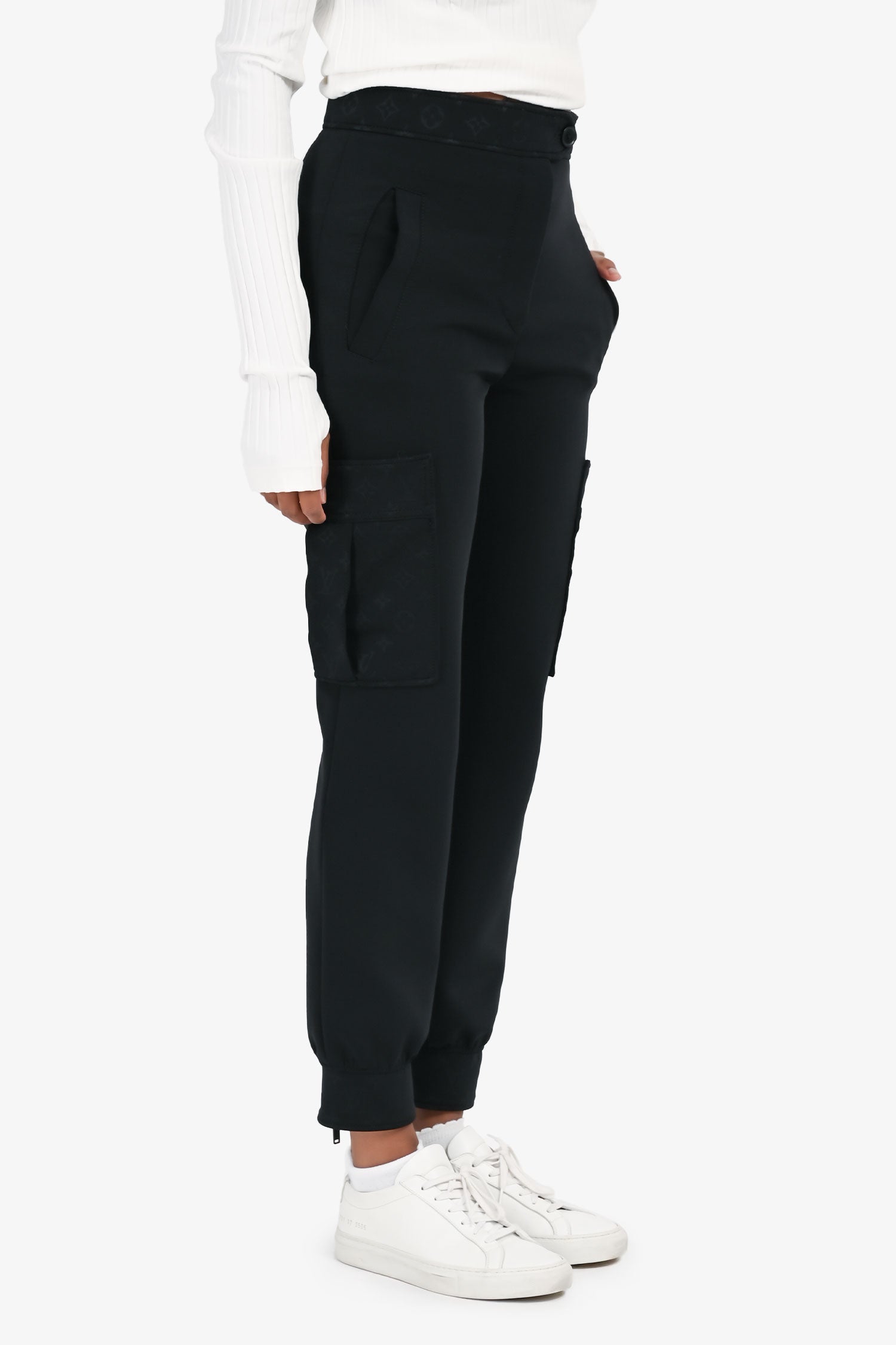 Refresh availabilityLouis Vuitton Black Monogram Trimmed Jogger. Front zip fly and button closure. Tapered leg with zipped cuffs. Side and cargo pockets. Tonal stitching.