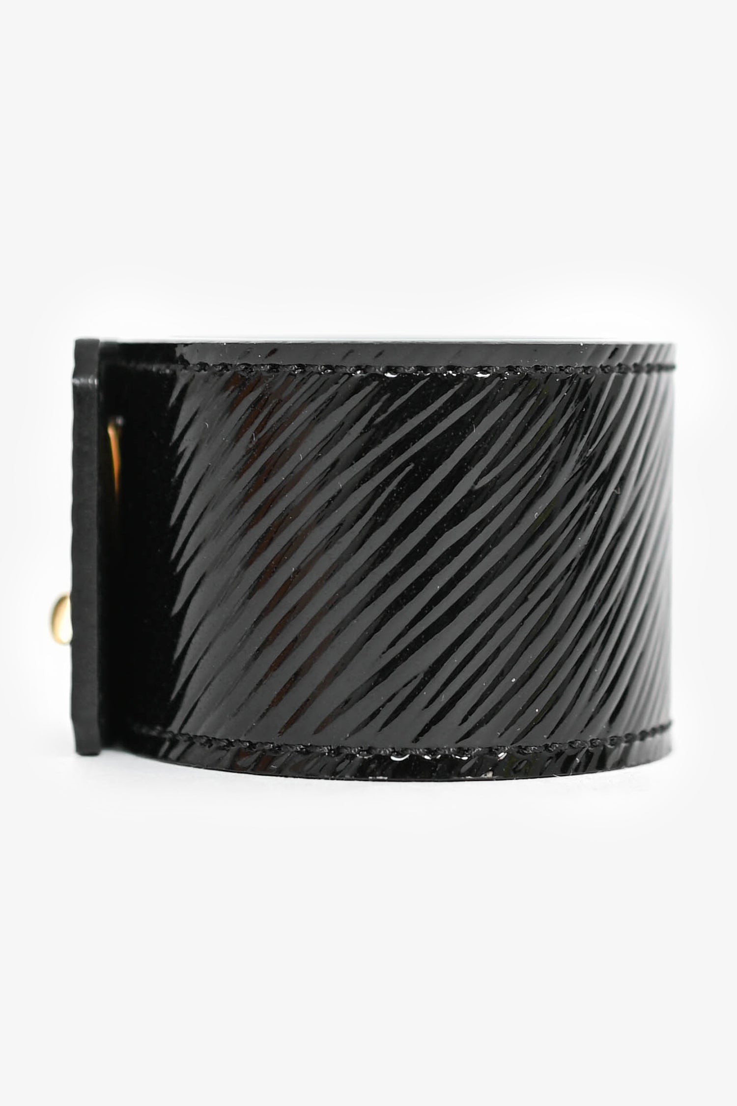 Refresh availabilityLouis Vuitton Black Patent 'LV' Cuff Bracelet. Turn-lock closure.