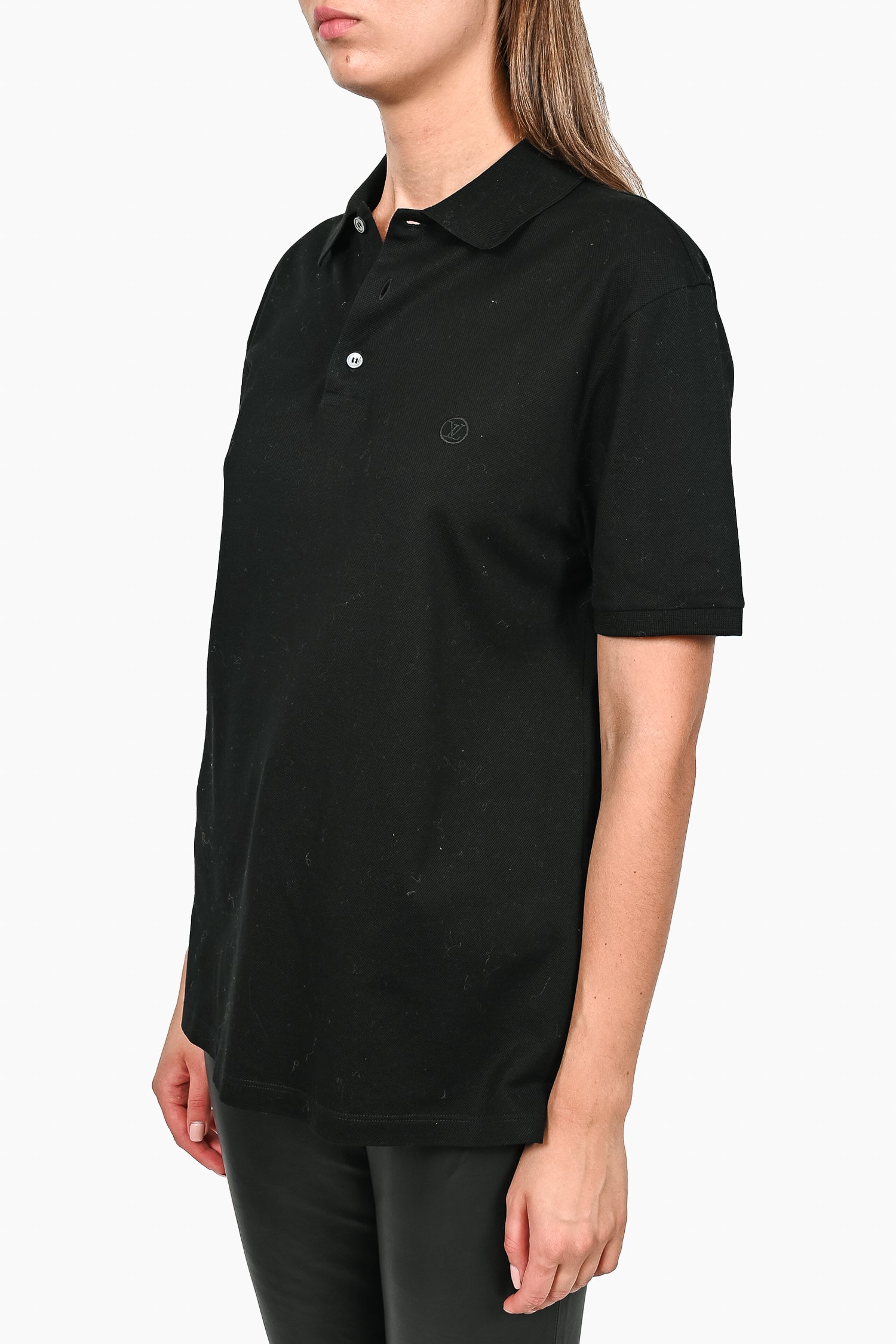 Refresh availabilityLouis Vuitton Black Polo Top with Small Embroidered Logo. Collared neckline. Front button detail. Tonal stitching.