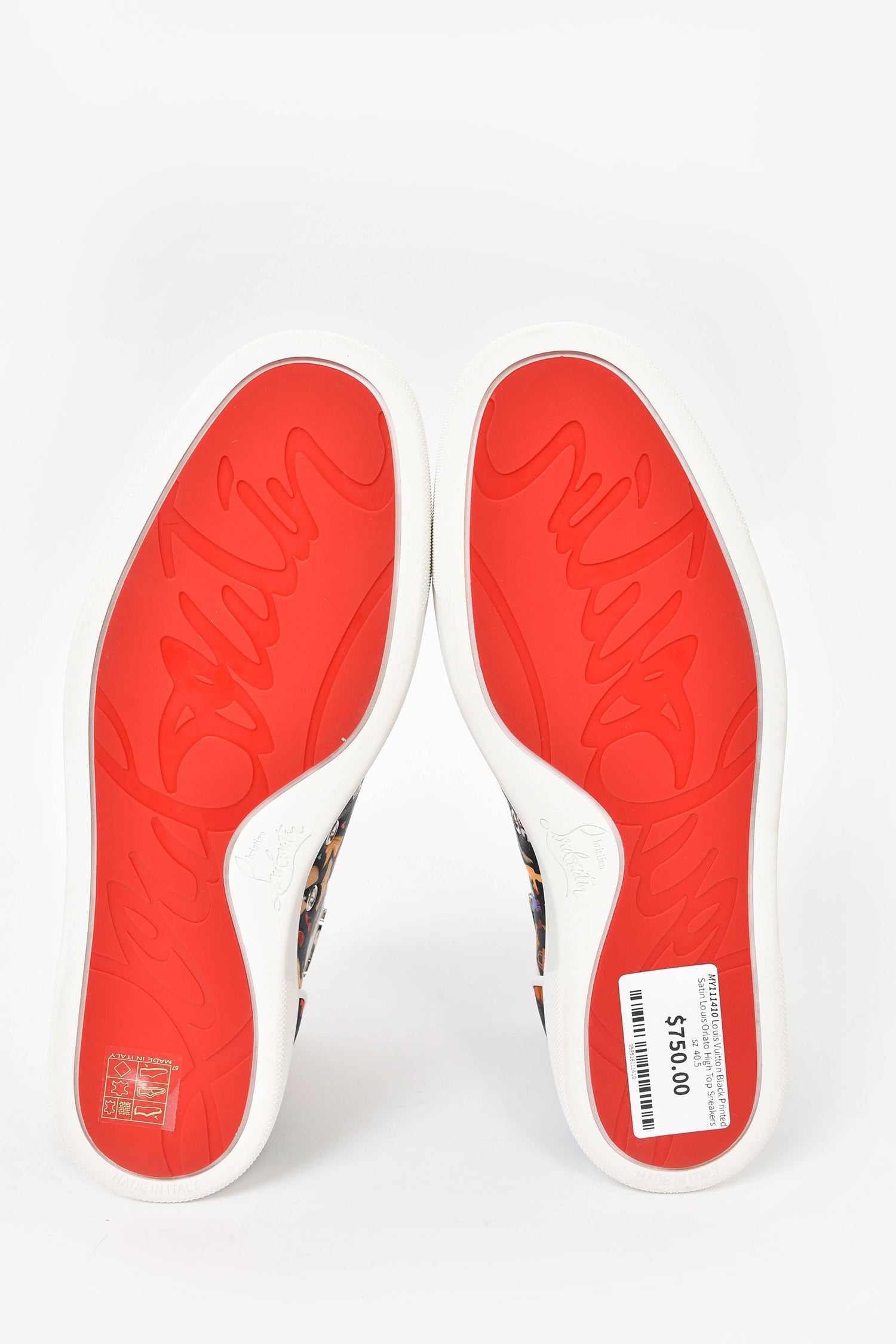 Christian Louboutin Black Printed Satin Louis Orlato High Top Sneakers Size 40.5