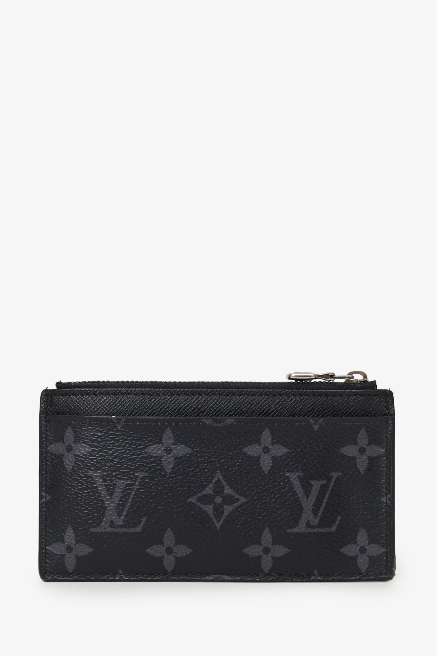 Refresh availabilityLouis Vuitton Black Reverse Monogram Eclipse Canvas Coin Card Holder. 6 exterior pockets; 3 card slots, 2 slip, and 1 zip. Silver-tone hardware. Tonal stitching.