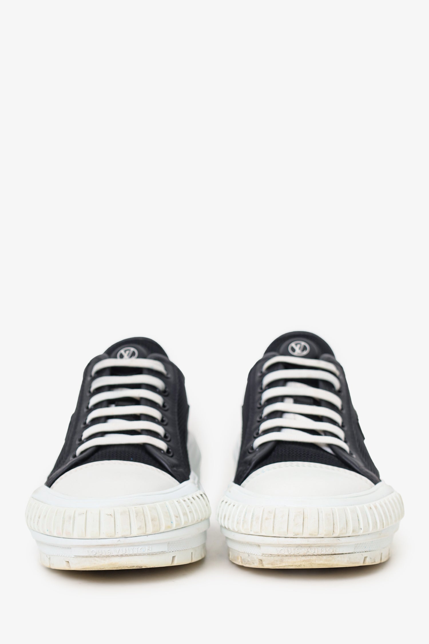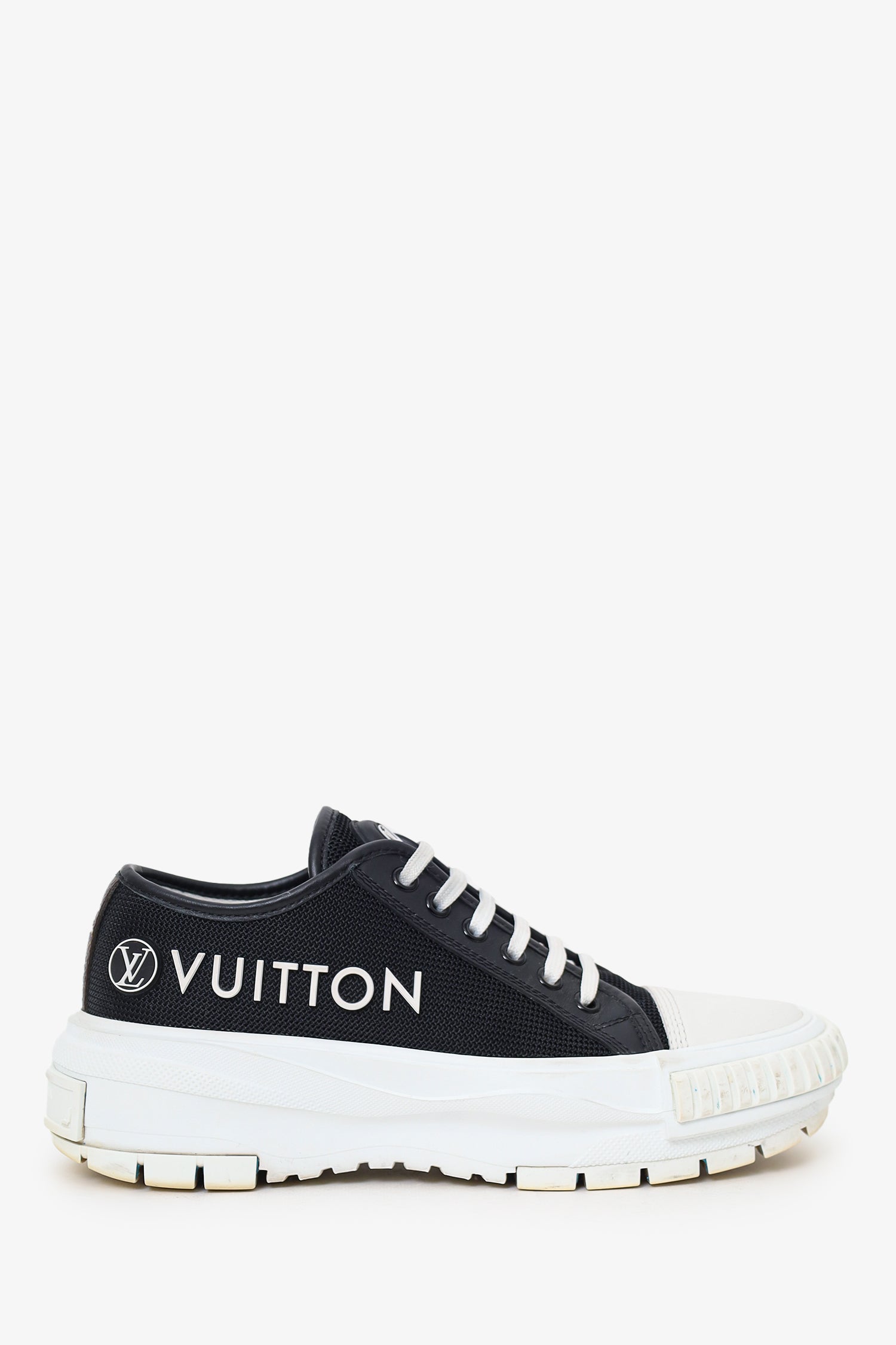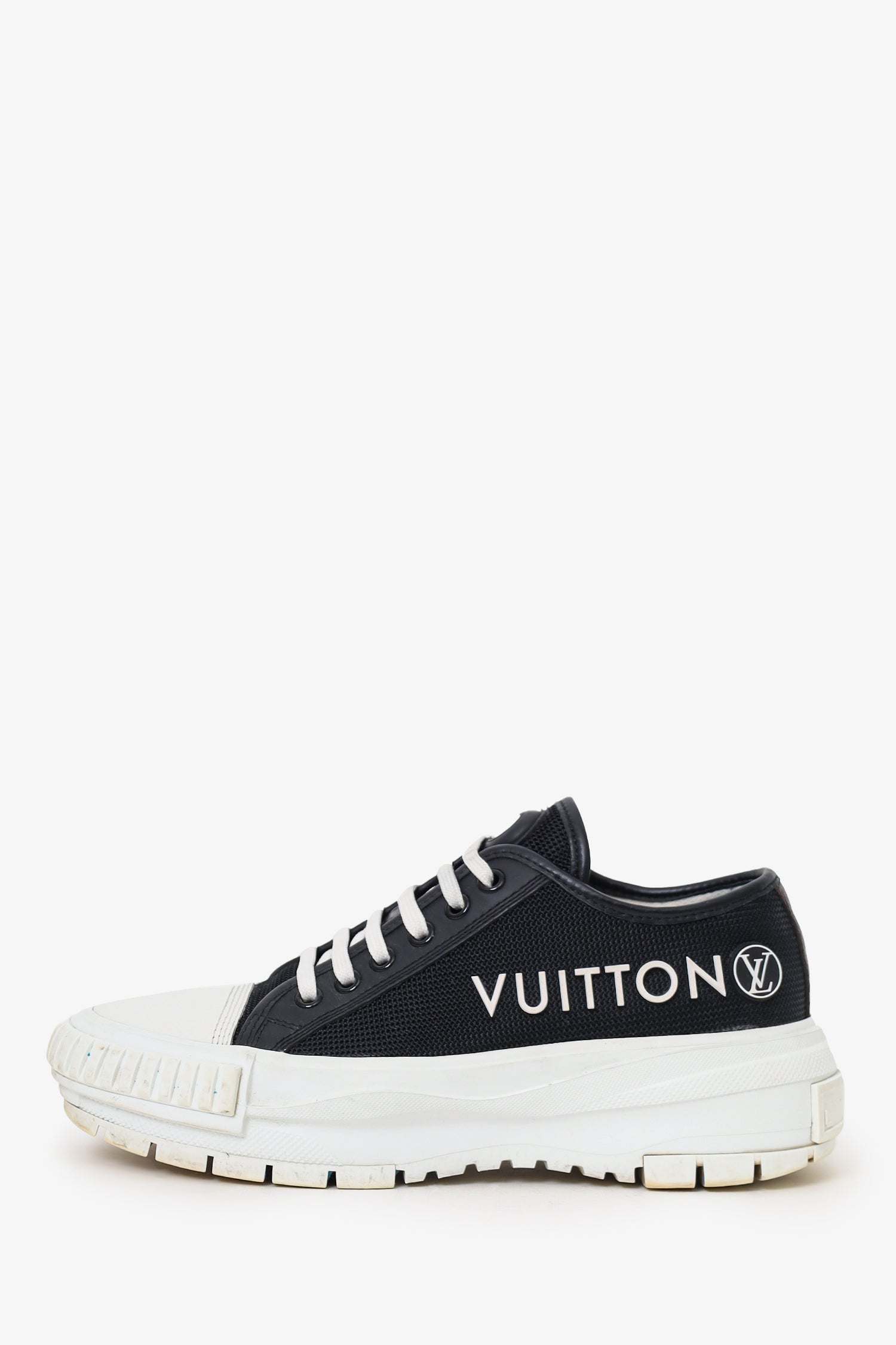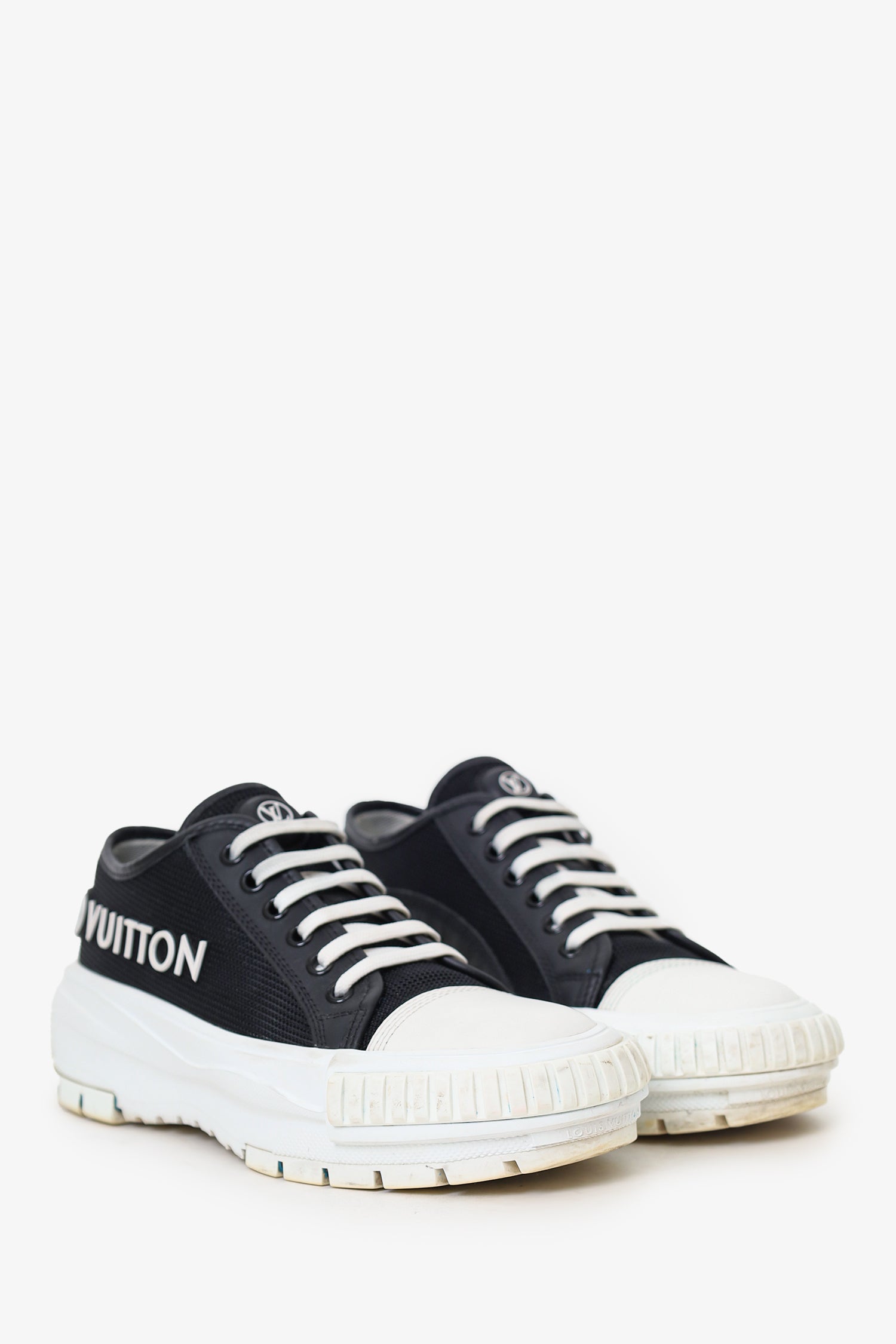 Refresh availabilityLouis Vuitton Black/White Mesh 'Vuitton' Low Top Sneakers. Slip-on. Round-toe. Top lace-up closure. Tonal stitching.