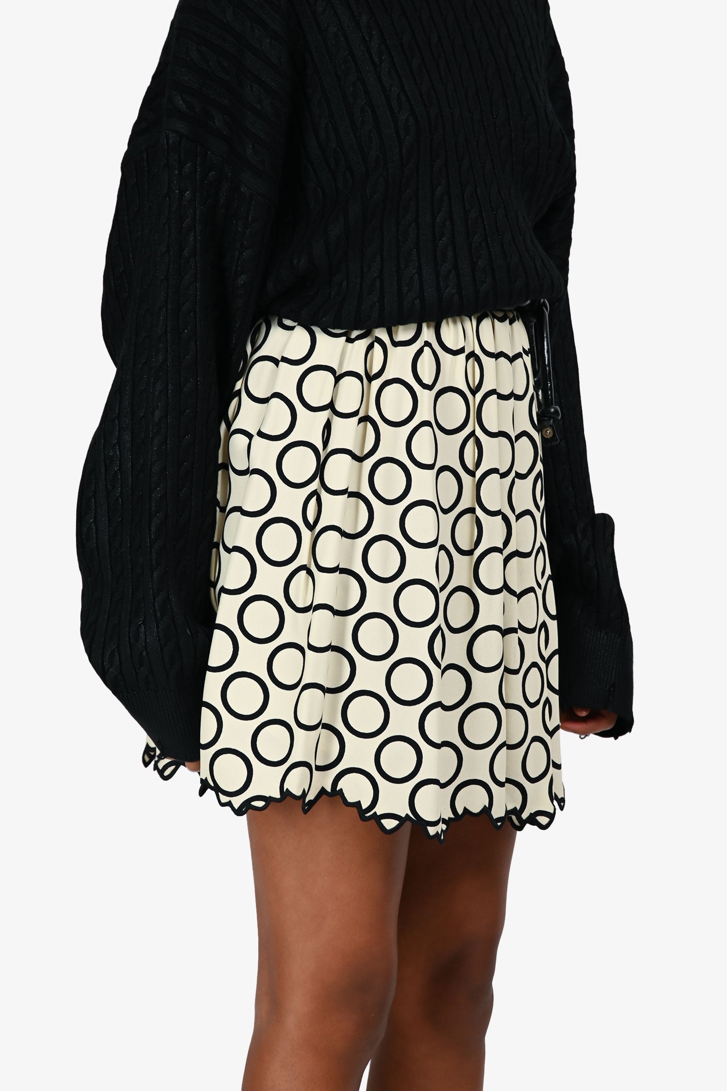 Louis Vuitton Black/White Patent Faux Leather Bow Detail Circle Print Pleated Skirt Size 34
