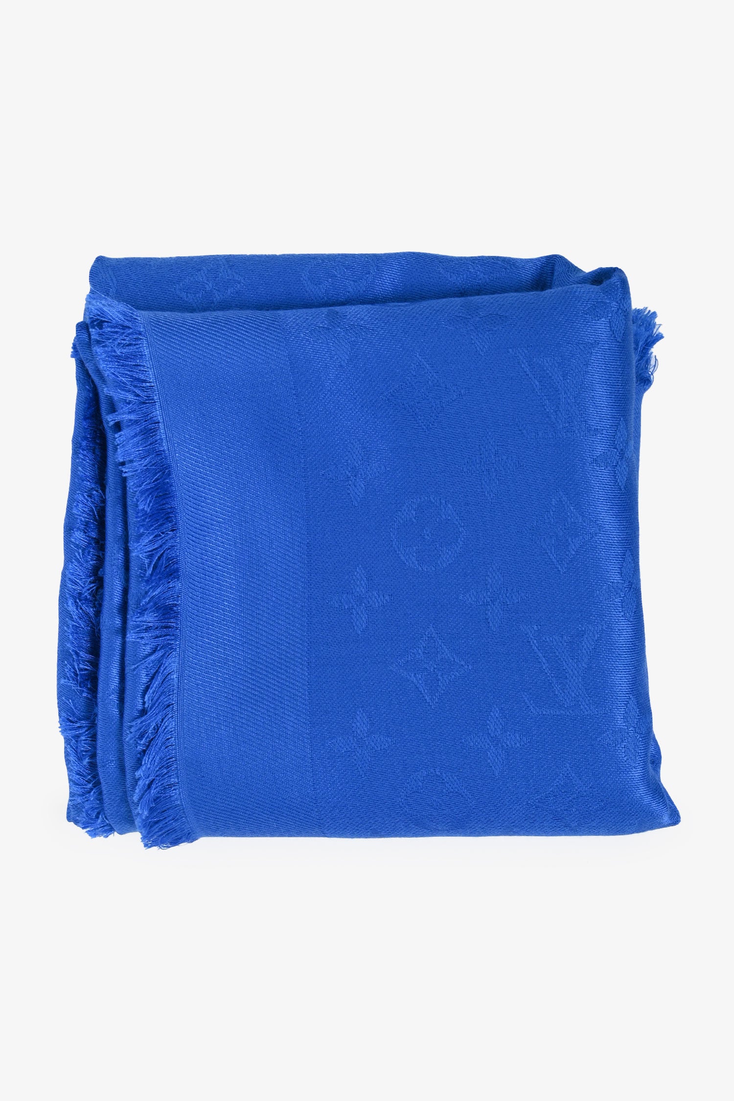 Louis Vuitton Blue Silk/Wool Scarf. Fringe ends.