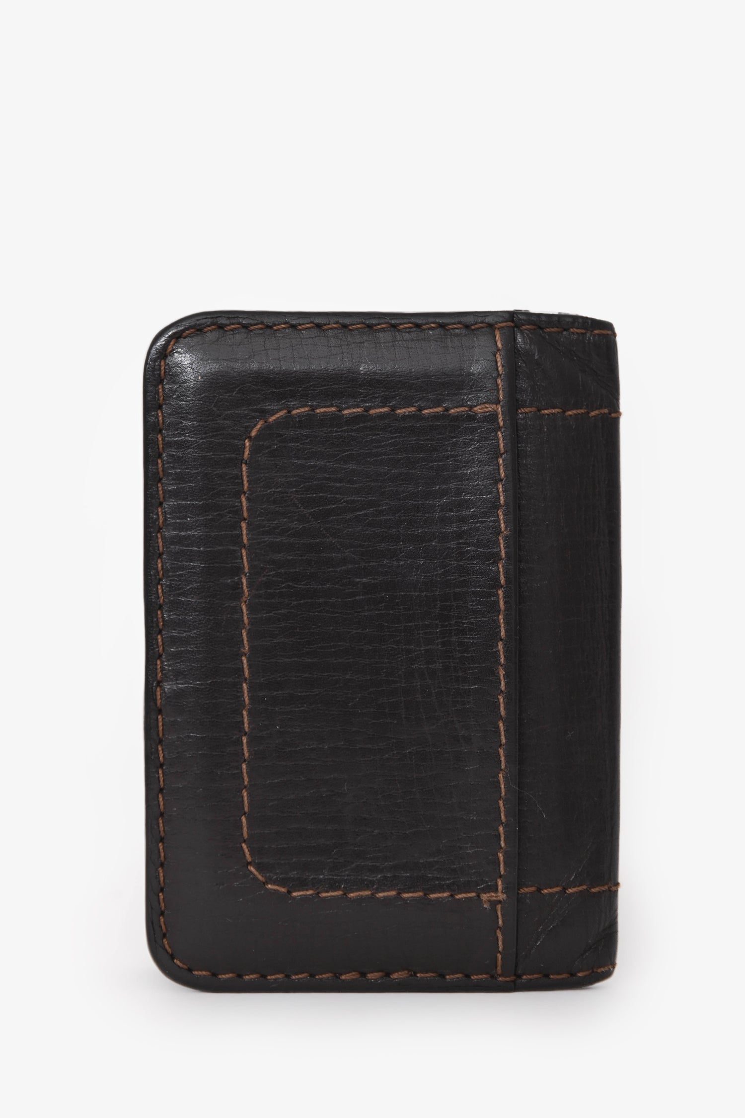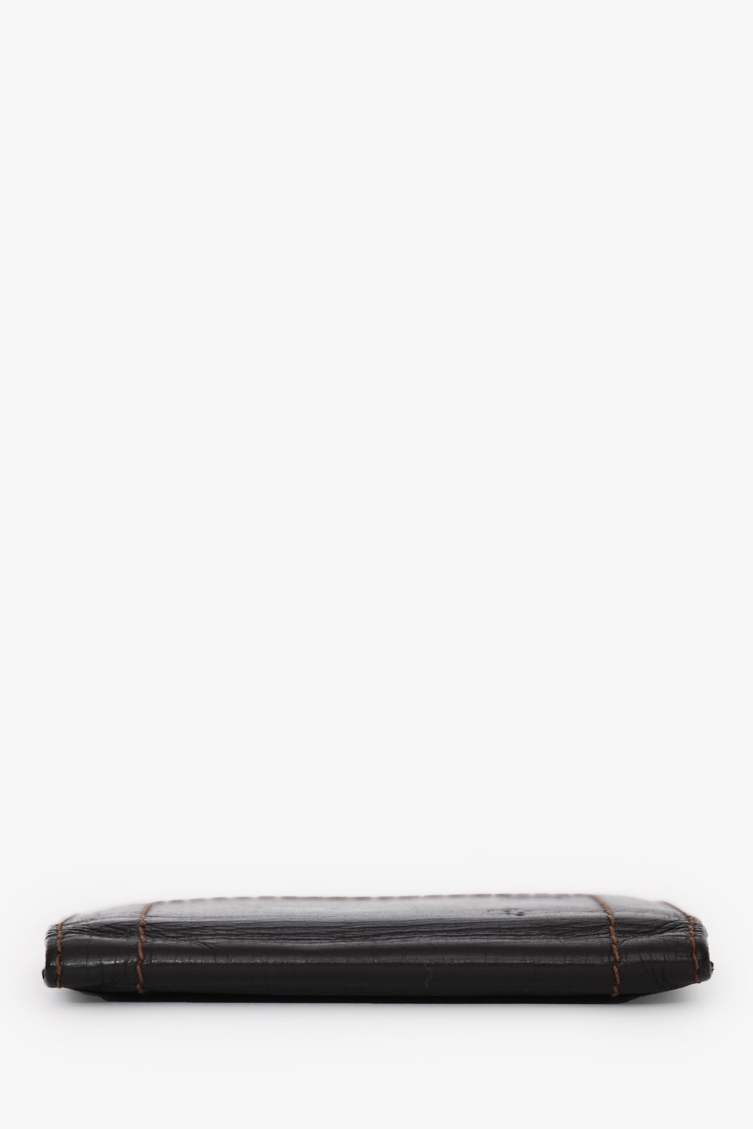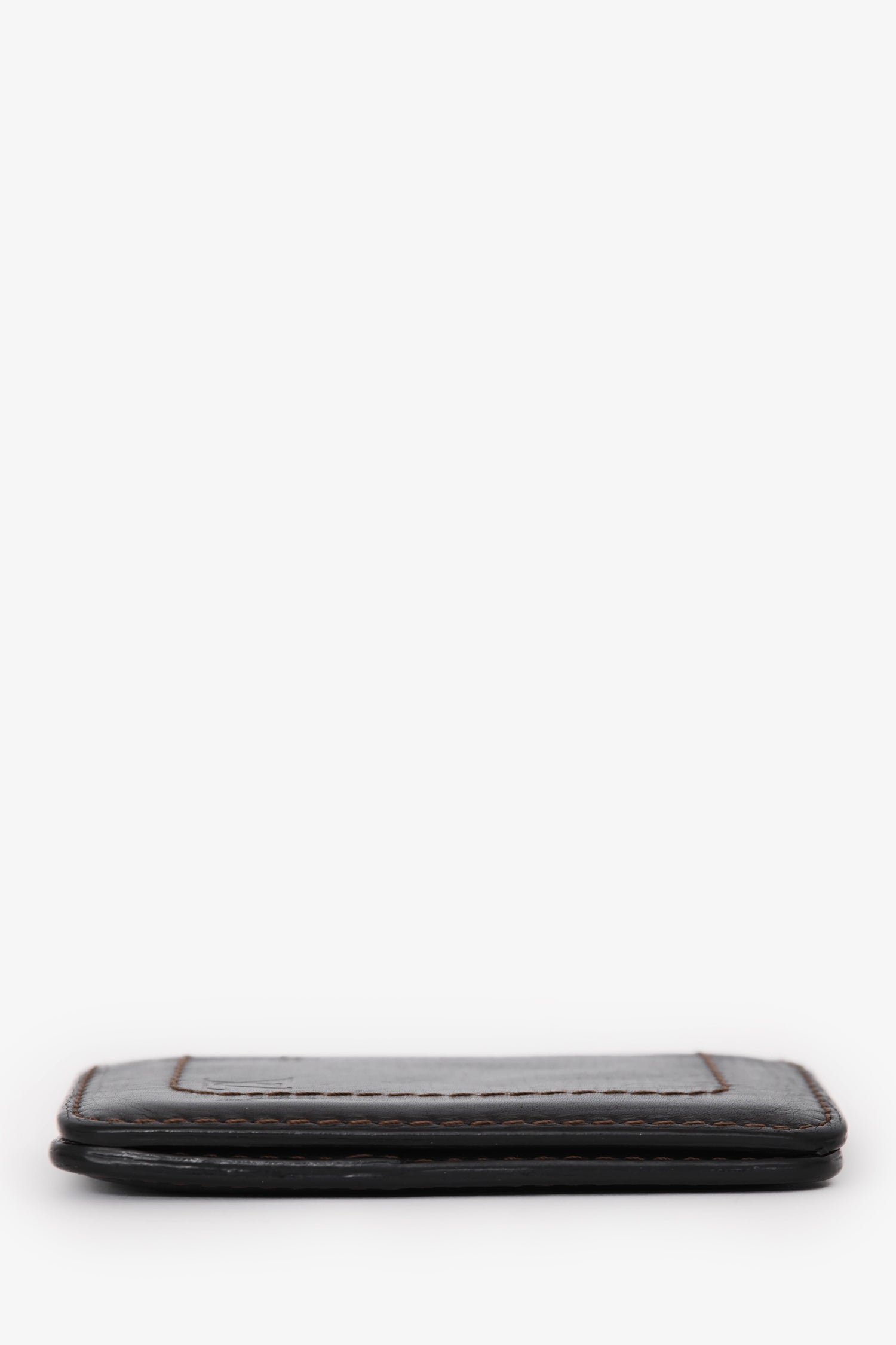 Refresh availabilityLouis Vuitton Brown Leather Bi-Fold Cardholder. Fold-open construction. 3 interior card slots; 4 slip pockets. Contrast stitching.