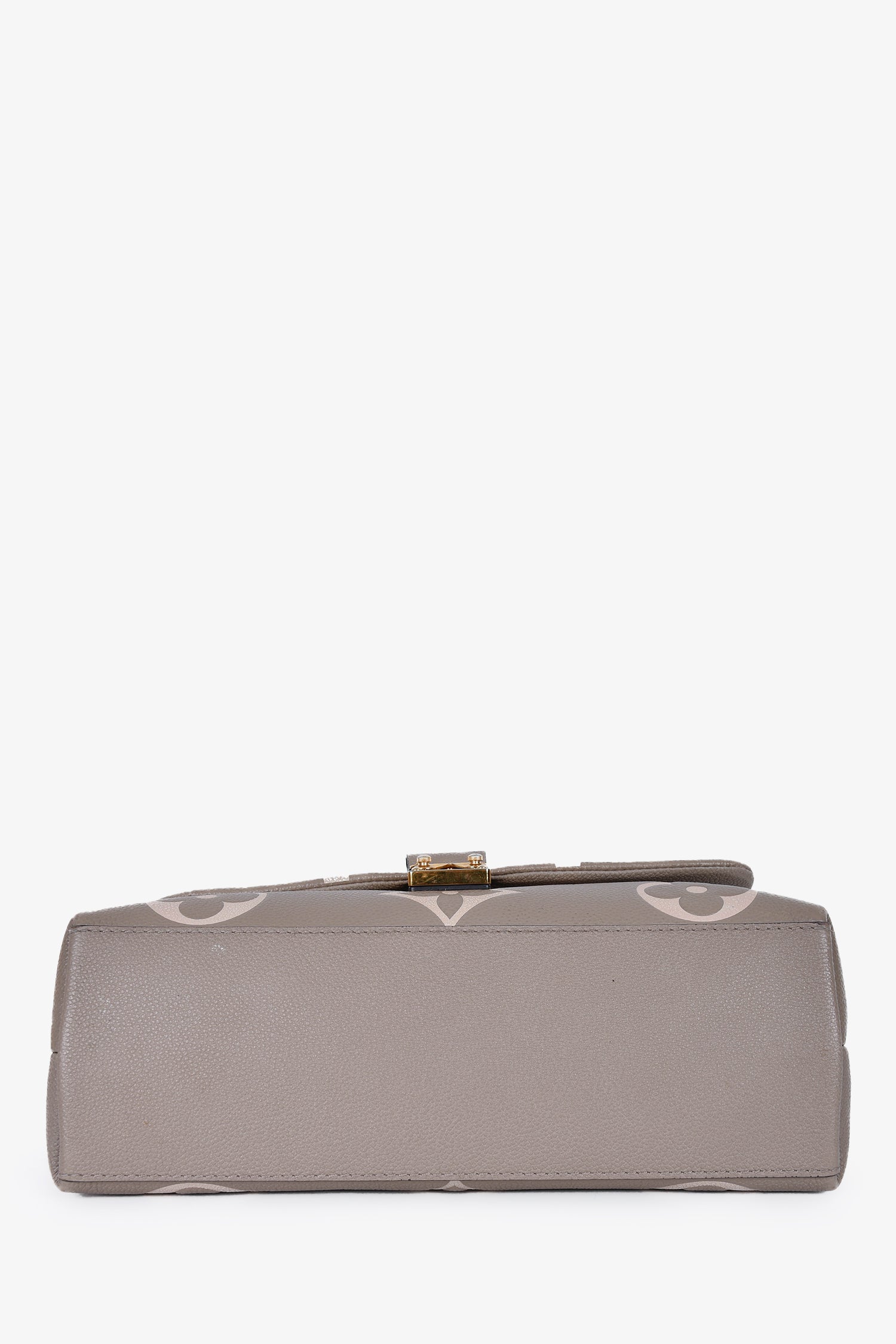 Louis Vuitton Brown Monogram Madeleine MM Crossbody. Front gold-tone metal clasp. Two compartments with zipper in the middle and small zipper on interior pocket. Top handle. Tonal stitching.