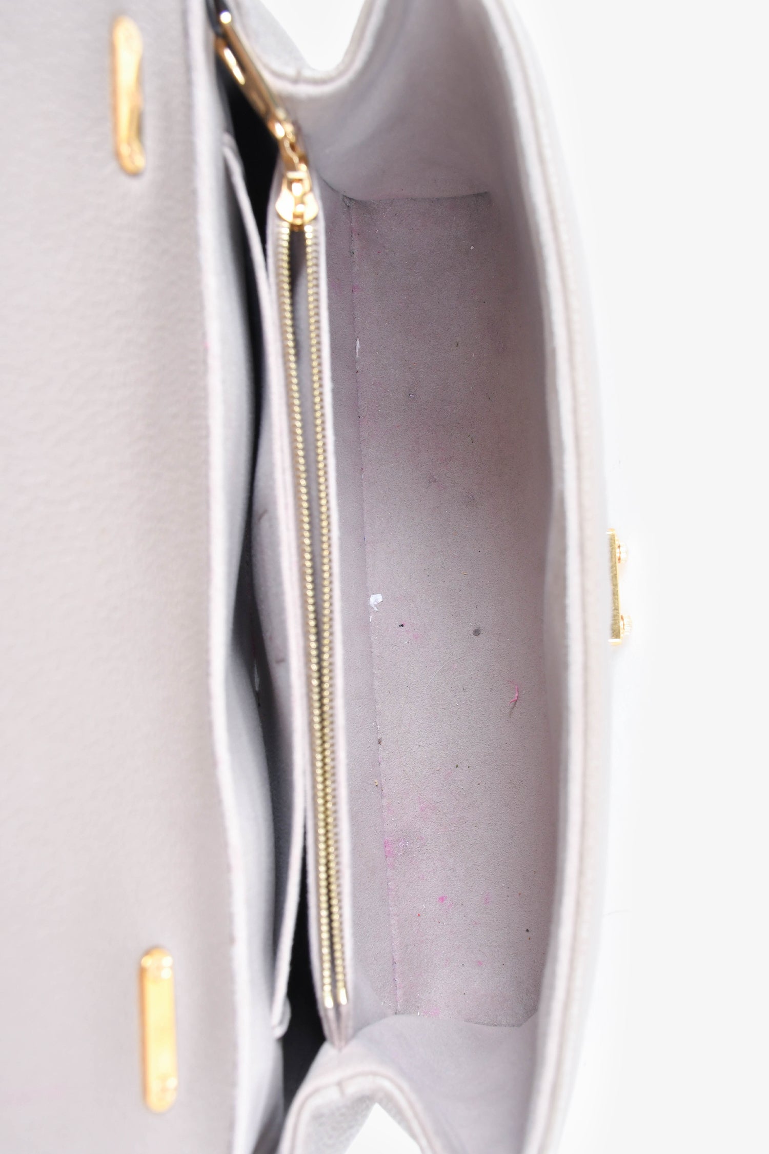 Condition: This item is in good pre-loved condition with visible signs of wear. Discolouration on the inside with makeup stains. Scuffing on the corners. Scratching and discolouration on the hardware.