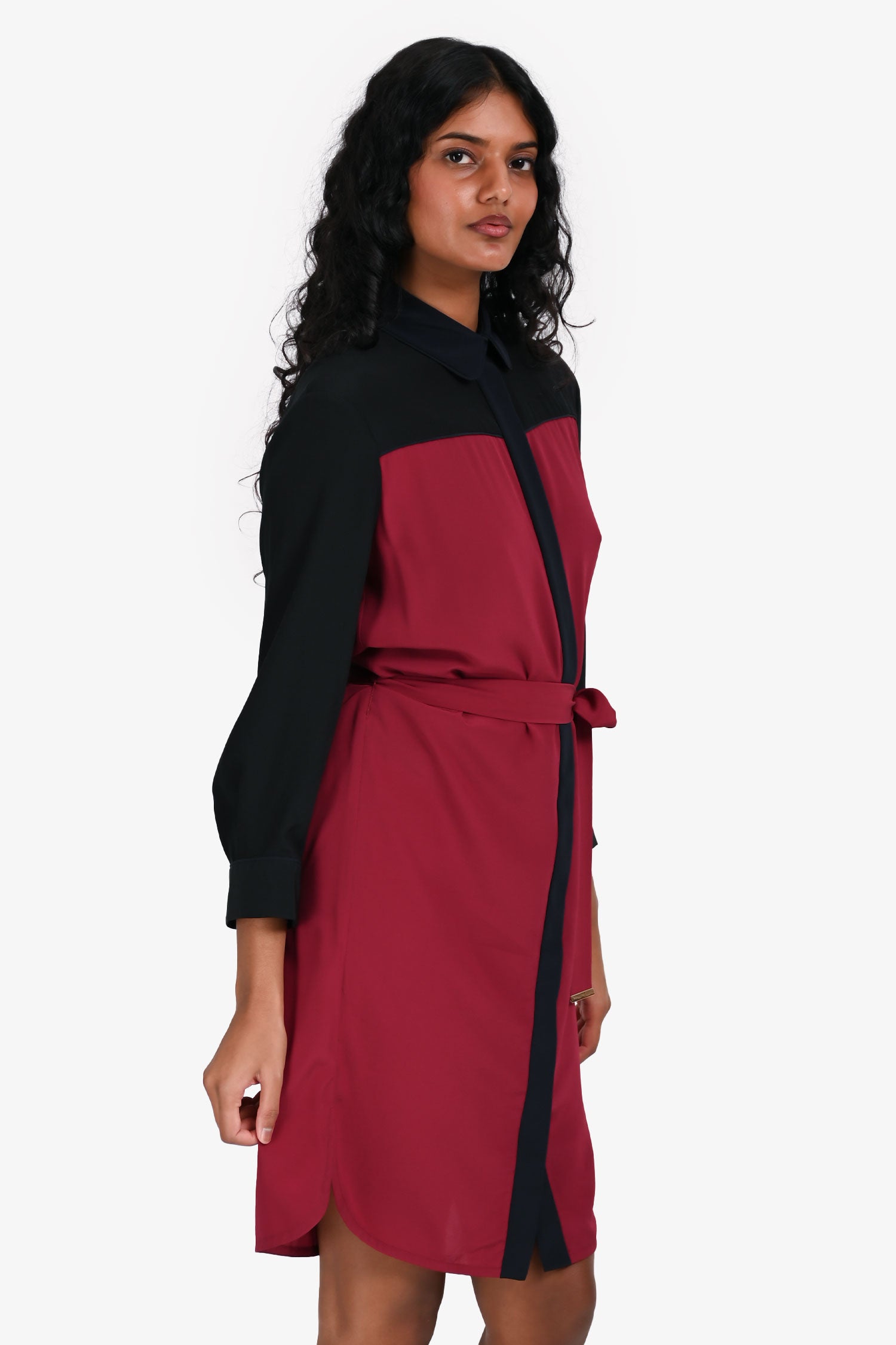 Refresh availabilityLouis Vuitton Burgundy/Black Silk Shirt Dress. Slip-on. Front button-up closure. Waist tie-up belt. Tonal stitching.