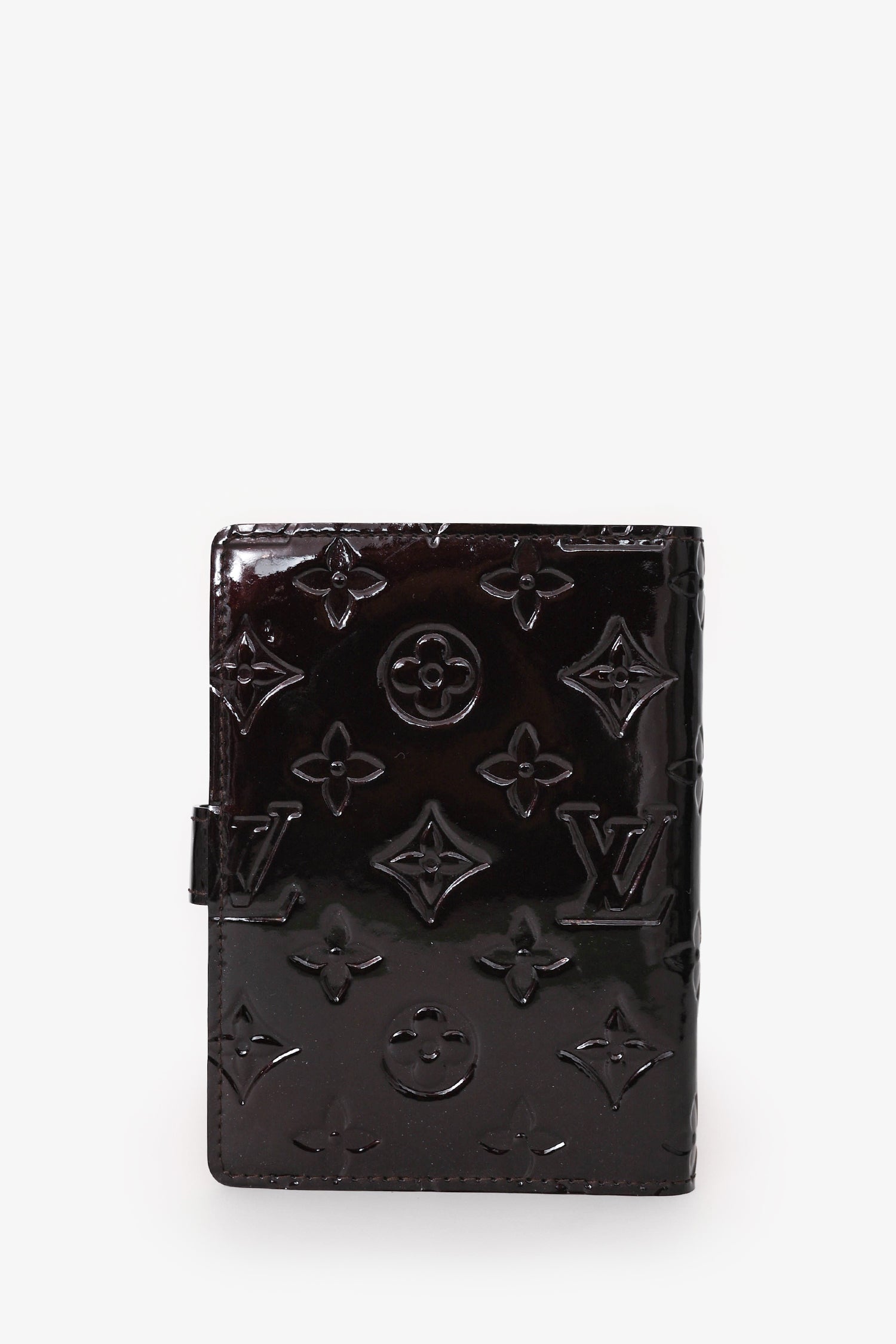 Refresh availabilityLouis Vuitton Burgundy Monogram Vernis Small Ring Agenda Cover. Snap tab closure. 3 interior card slots, 2 slip pockets, and a 6-ring binder with ruler. Gold-tone hardware. Tonal stitching.