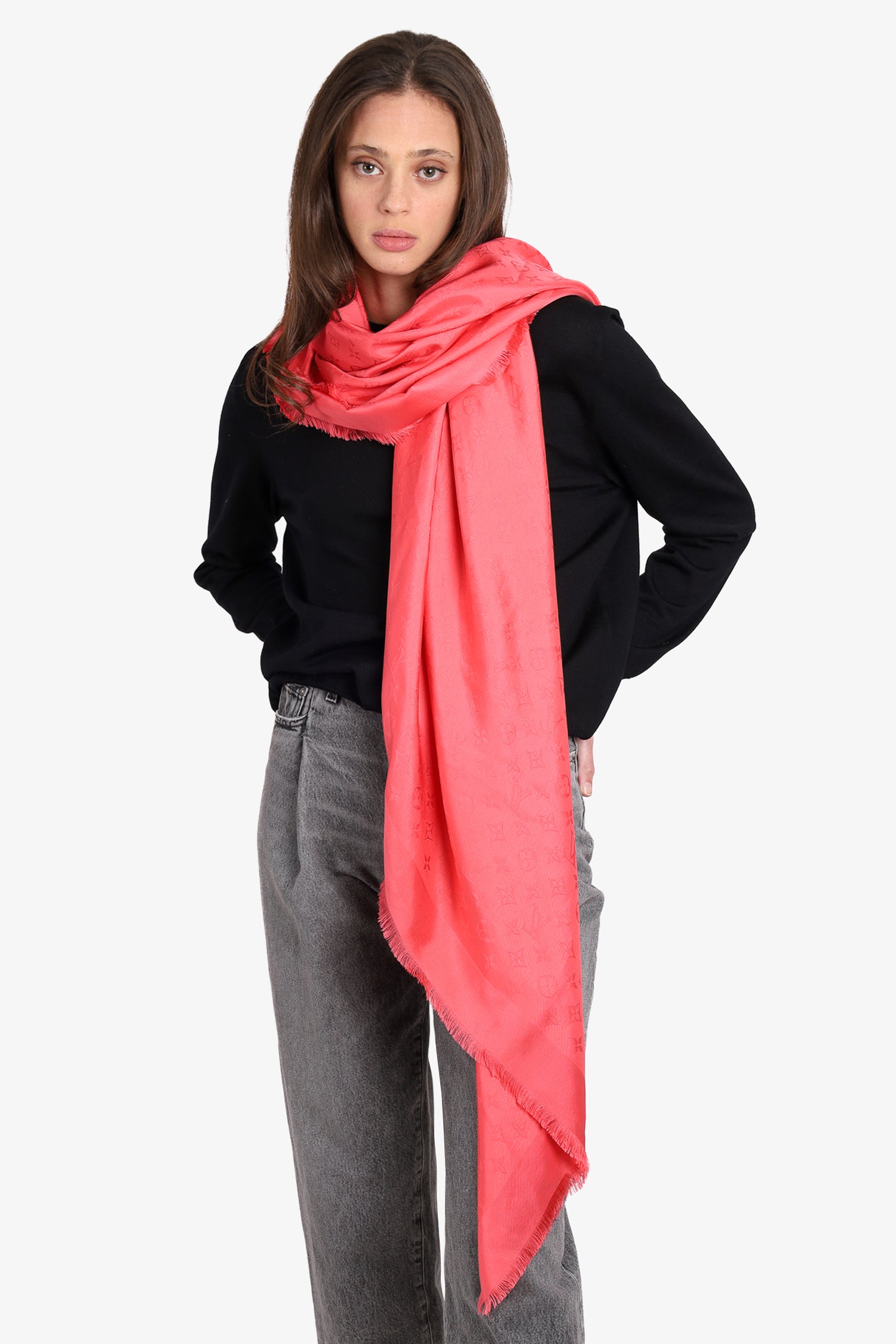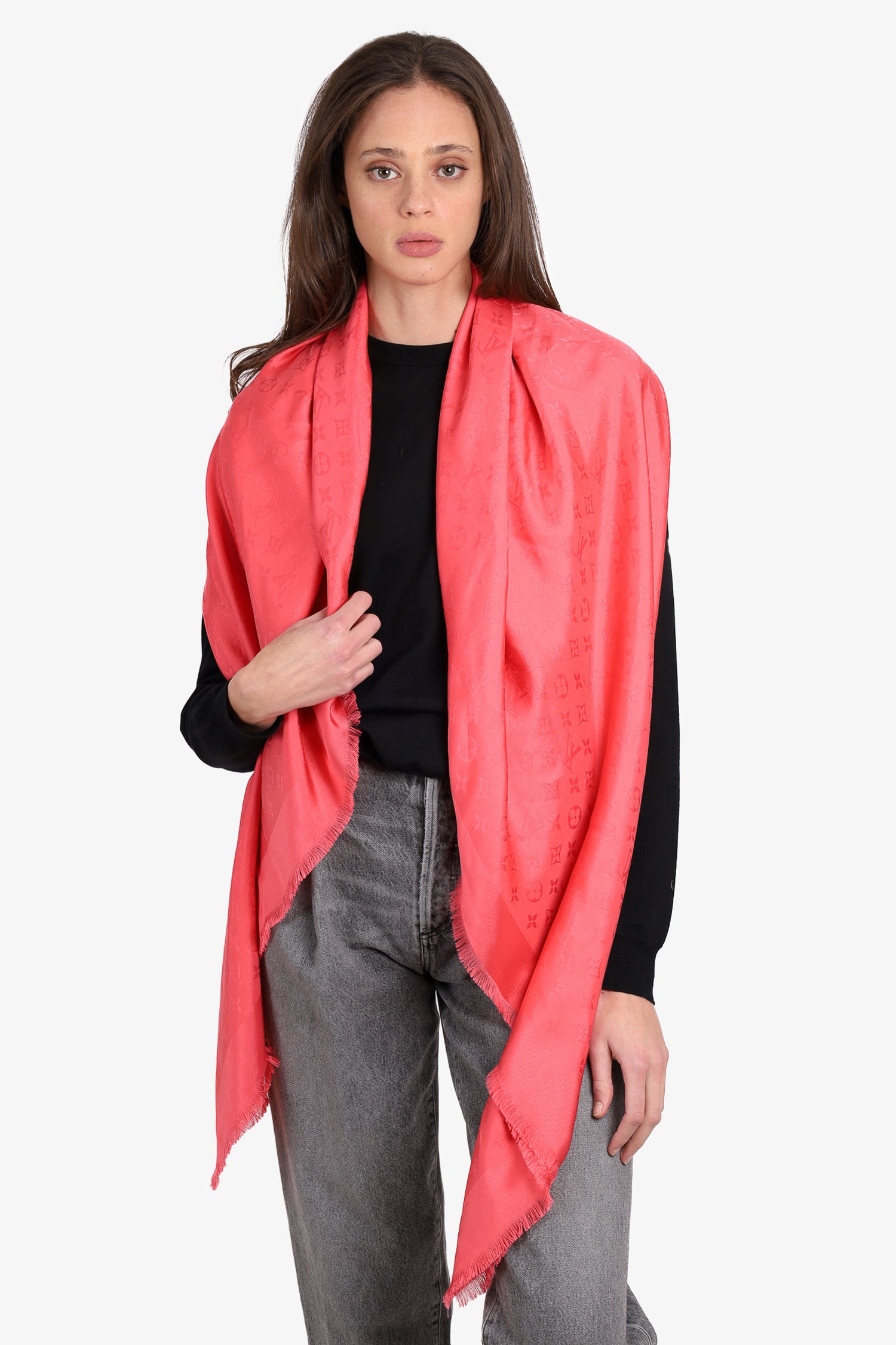 Refresh availabilityLouis Vuitton Coral Silk Square 120x120 Scarf. Tonal stitching. 100% Silk.
