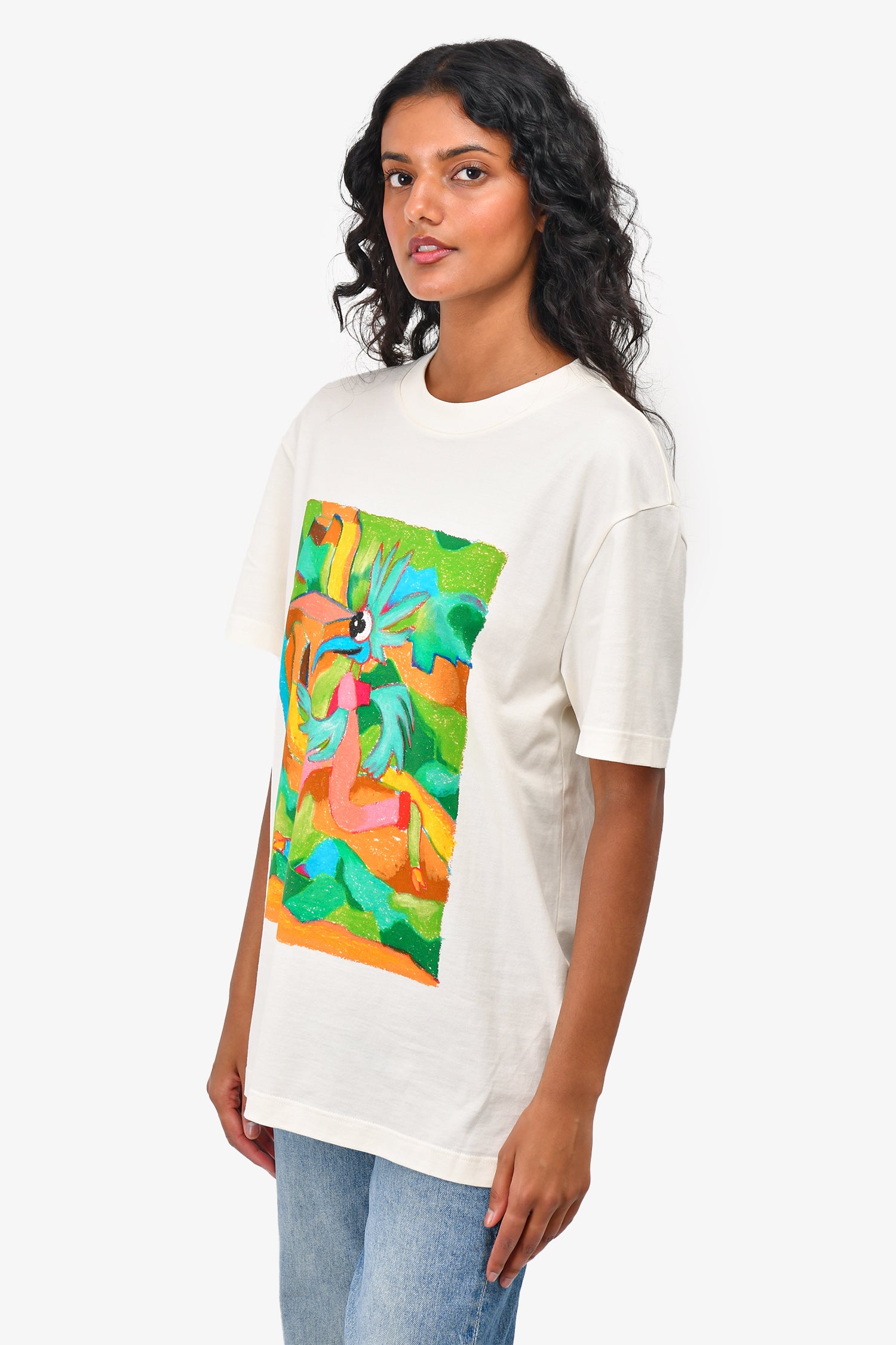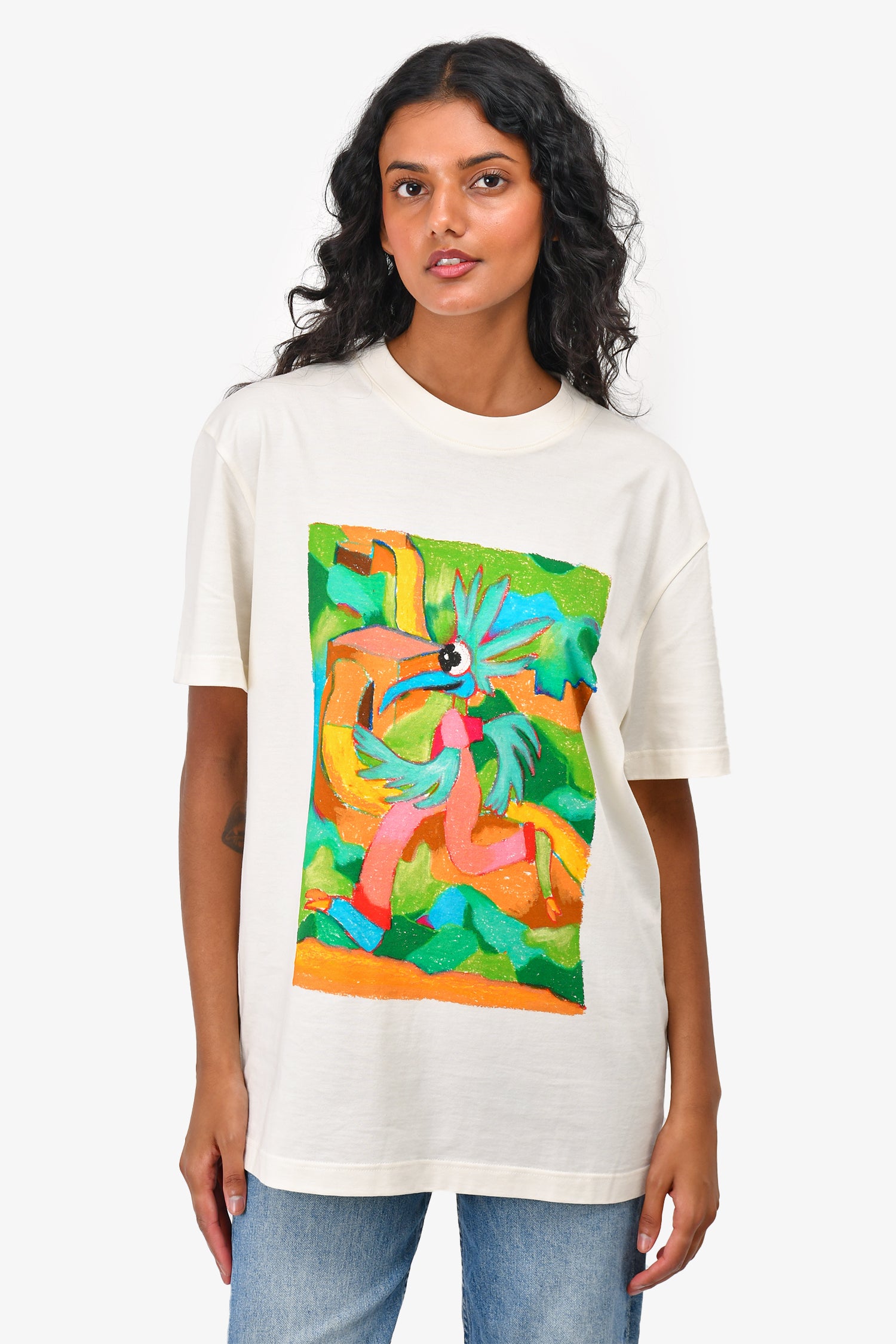 Louis Vuitton Cream/Multicolour Bird Printed T-Shirt Size S Mens