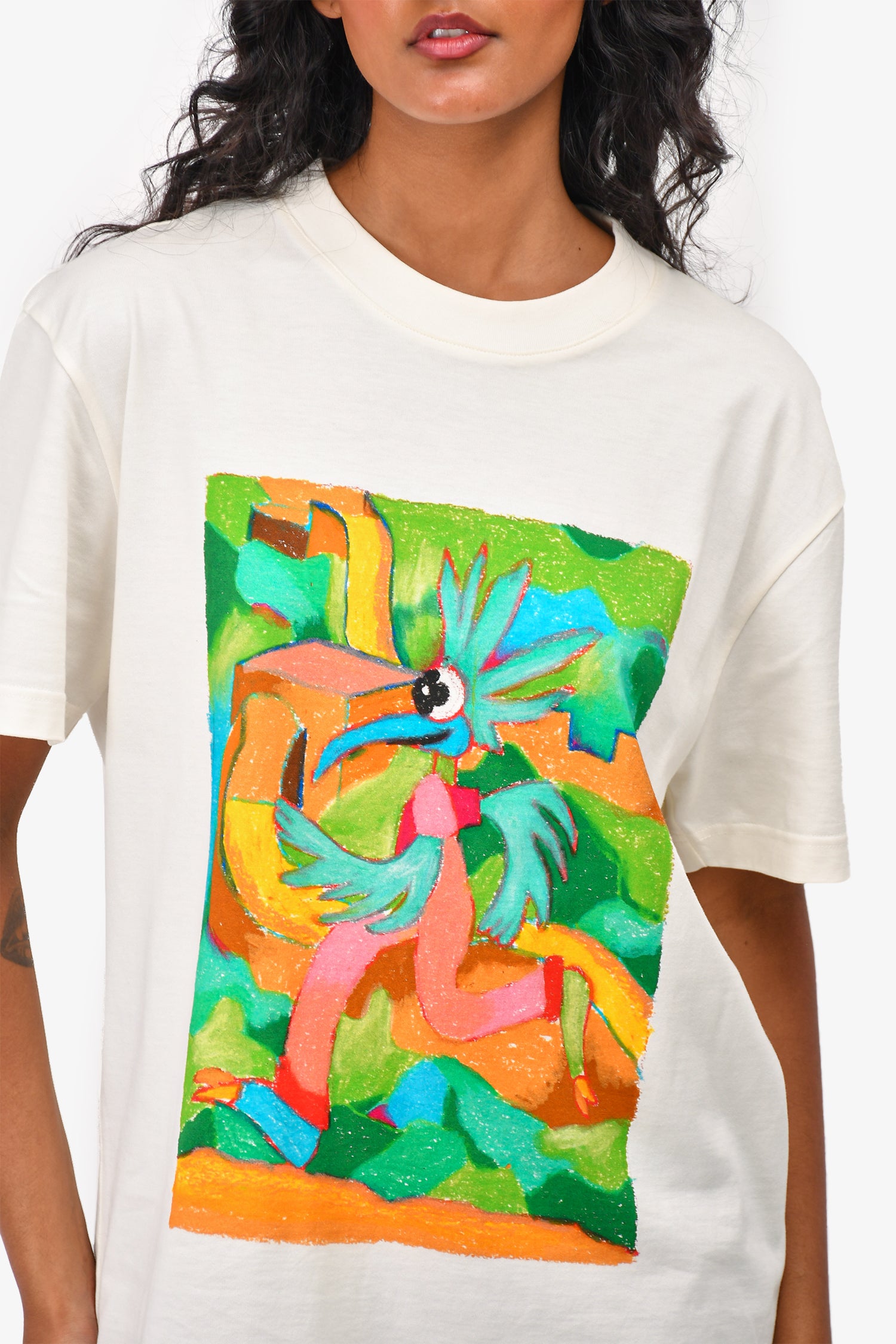 Refresh availabilityLouis Vuitton Cream/Multicolour Bird Printed T-Shirt. Short sleeves. Tonal stitching. Ribbed collar.