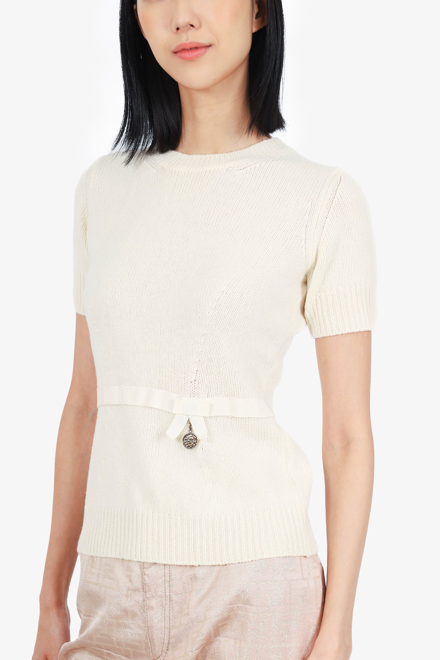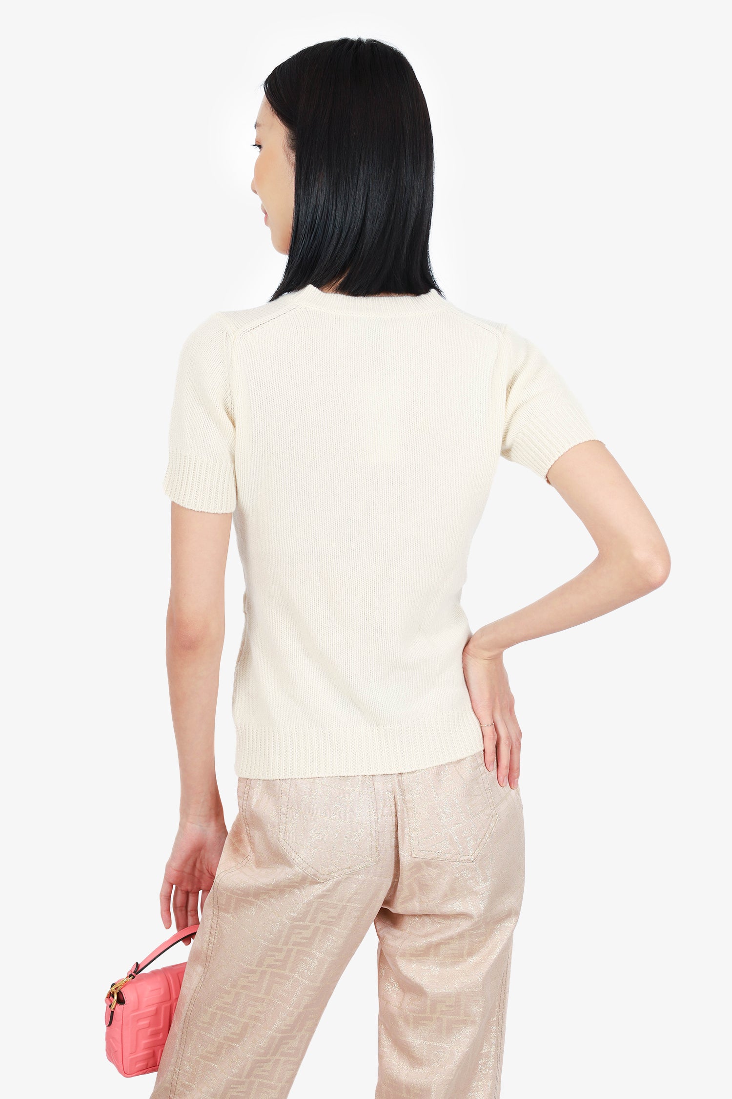 Louis Vuitton Cream Wool Knitted Short-Sleeve Sweater Size M