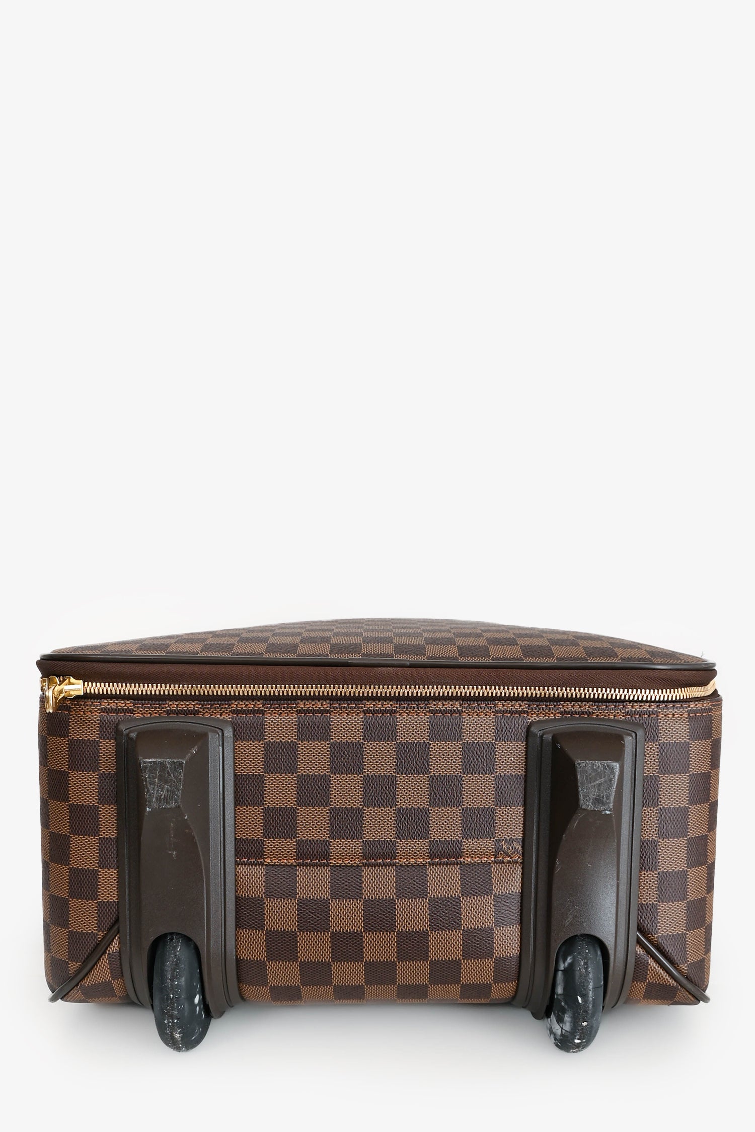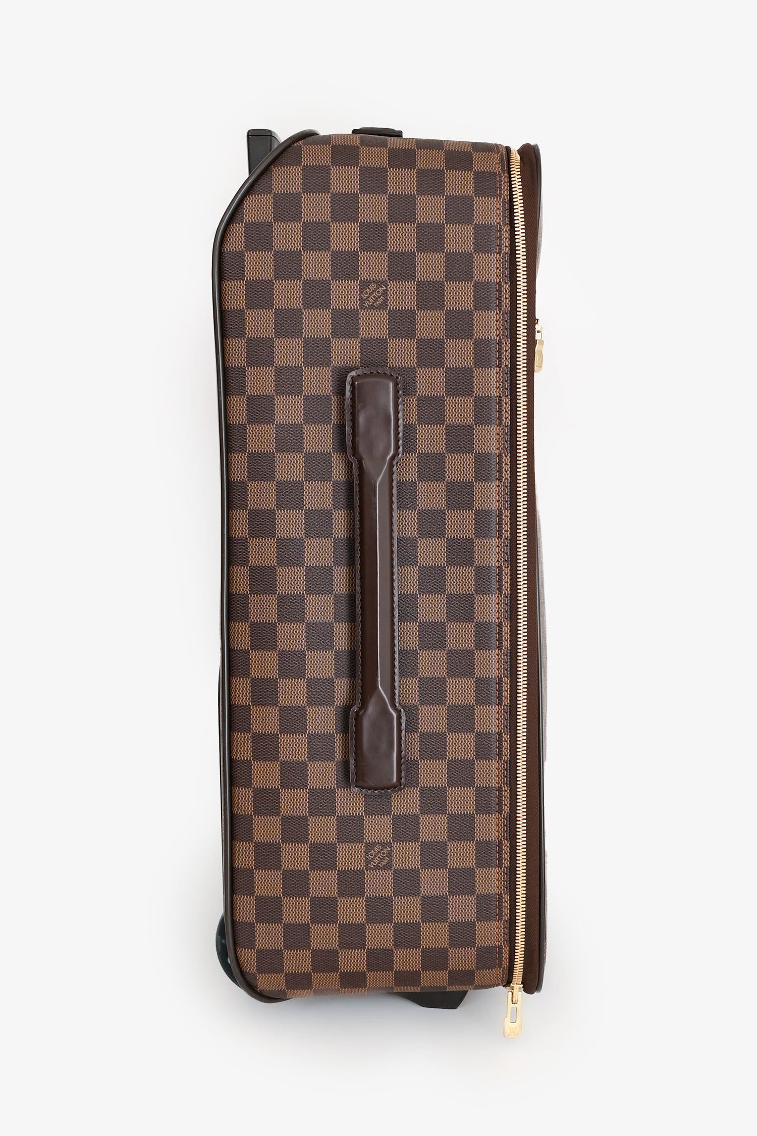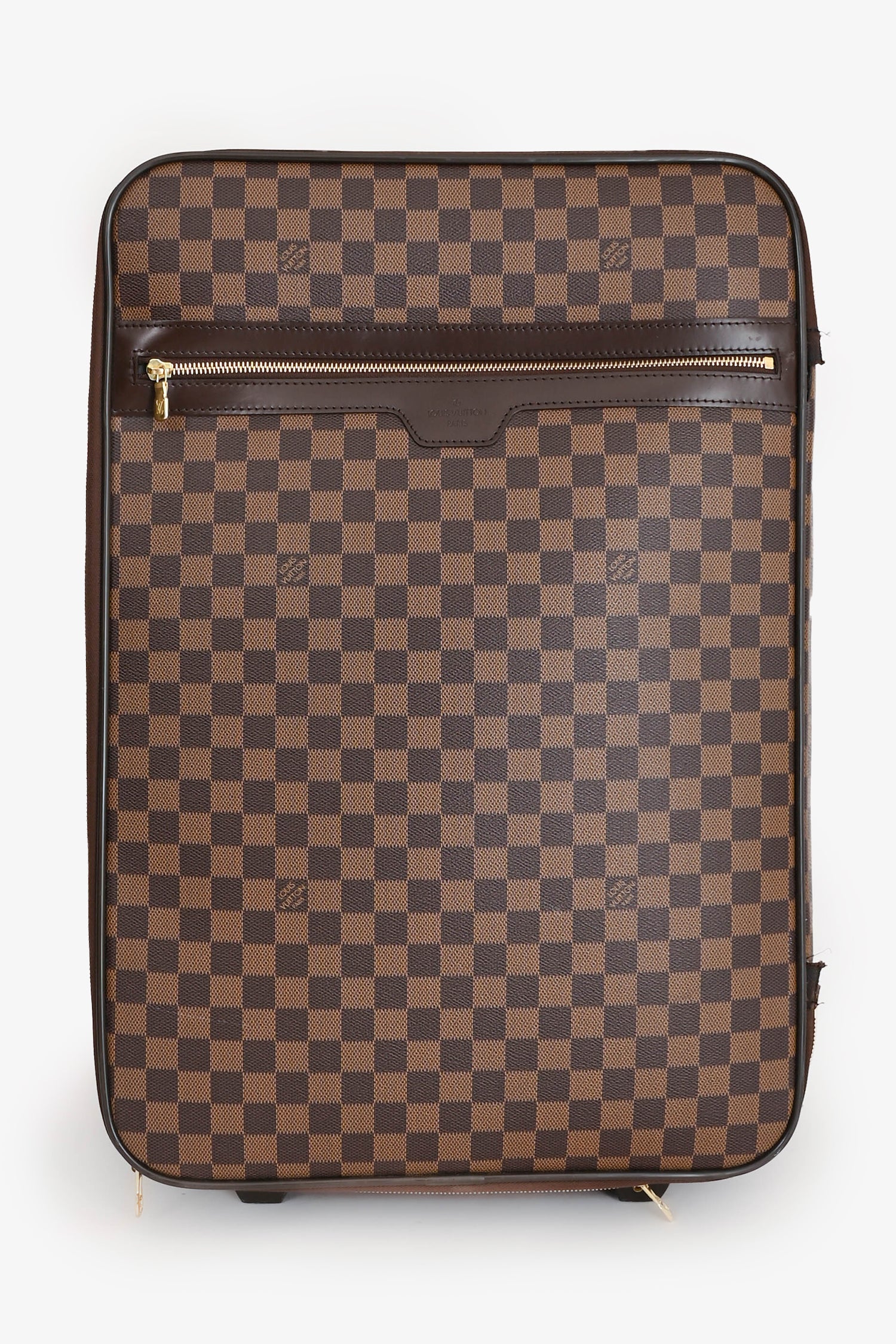 Refresh availabilityLouis Vuitton Damier Ebene Pegase 55 Rolling Suitcase. Top handle. Top two-way zip closure. Front zip pocket. Two wheels. Tonal textile interior lining.