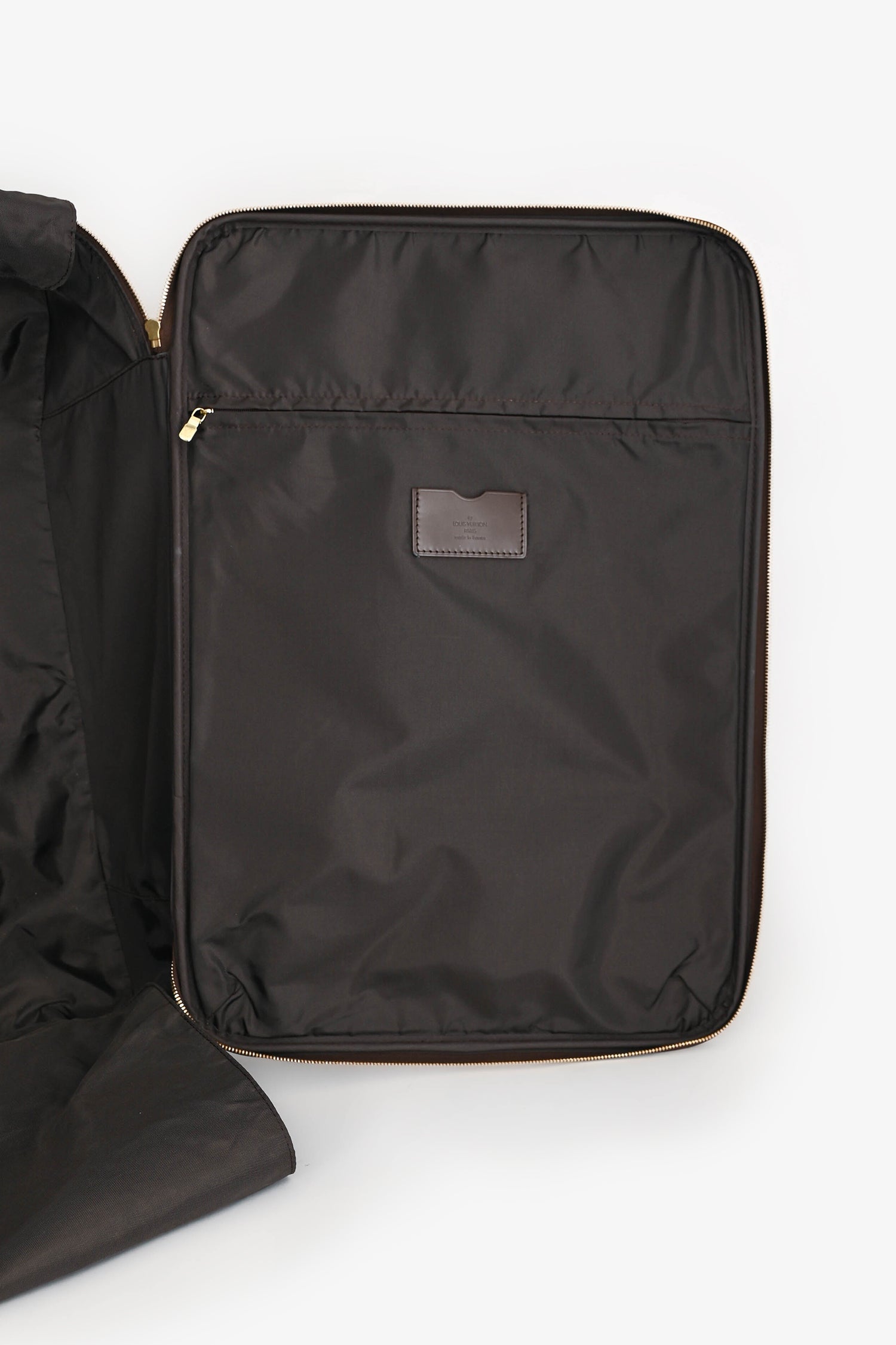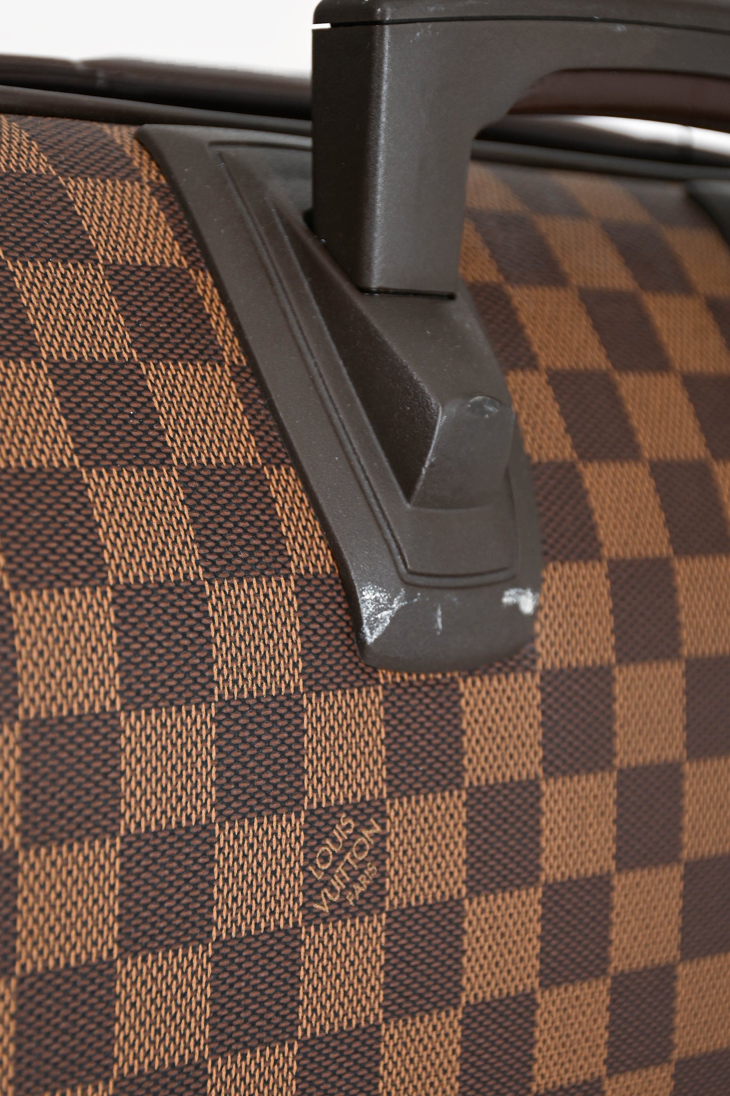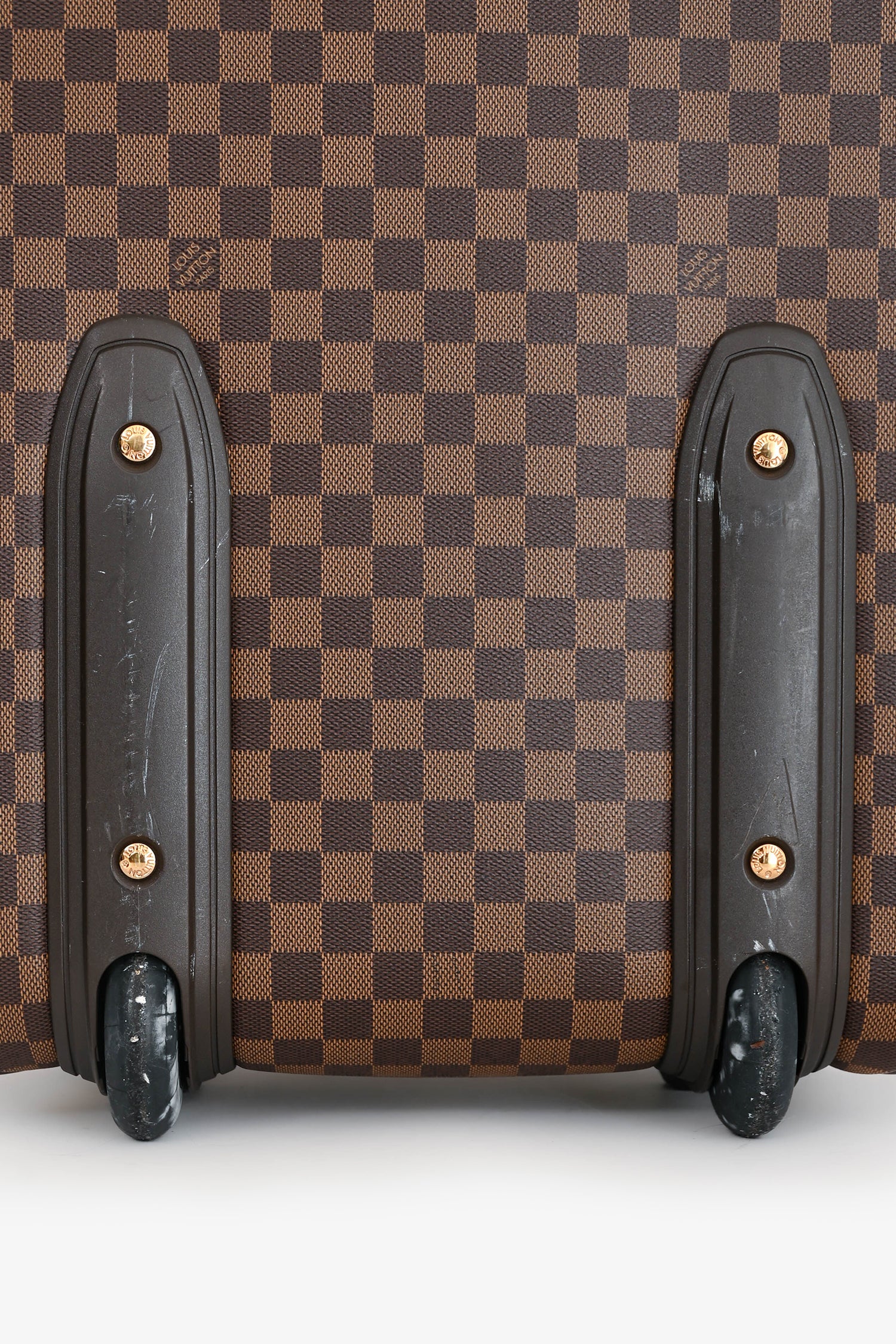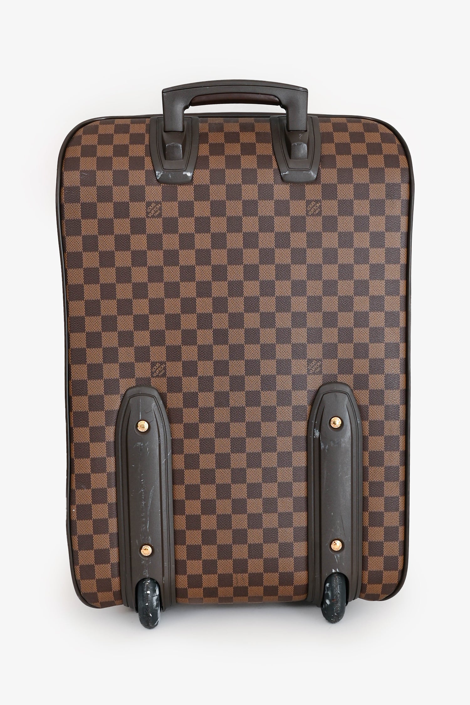 Refresh availabilityLouis Vuitton Damier Ebene Pegase 55 Rolling Suitcase. Top handle. Top two-way zip closure. Front zip pocket. Two wheels. Tonal textile interior lining.