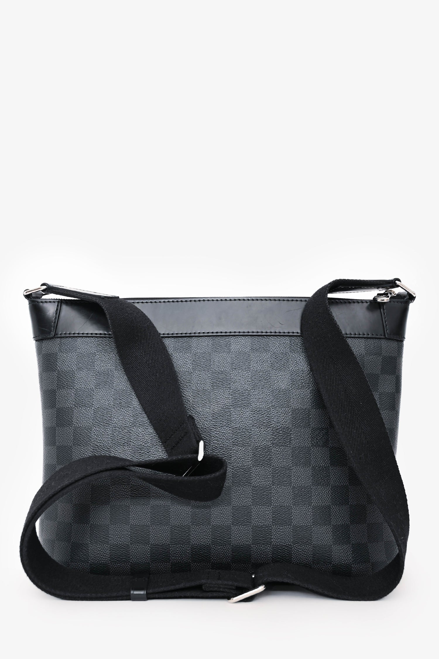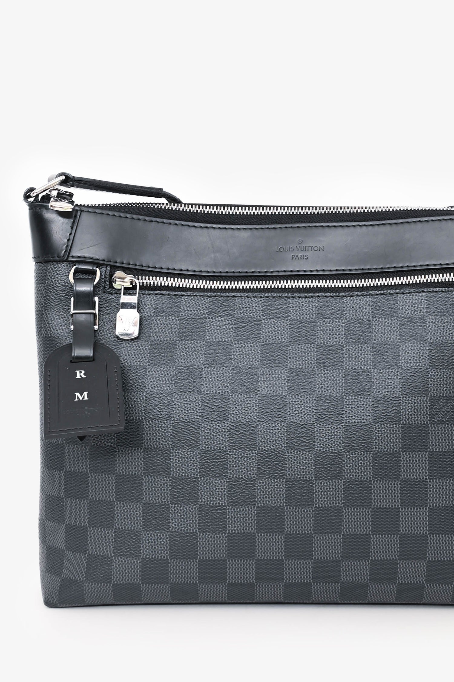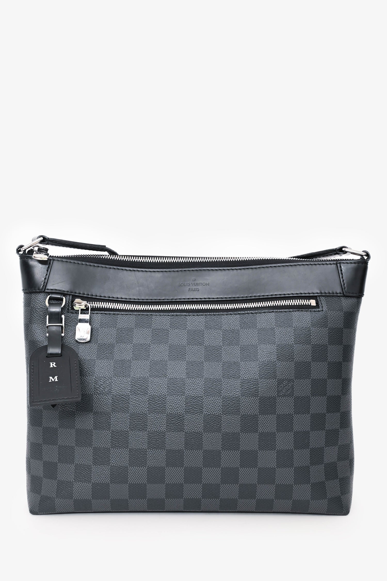 Refresh availabilityLouis Vuitton Damier Graphite Mick PM Messenger Bag. Top zip closure. Adjustable canvas shoulder strap. 1 exterior zip pocket. 3 interior slip pockets. 1 bag charm. Silver-tone hardware. Tonal stitching.