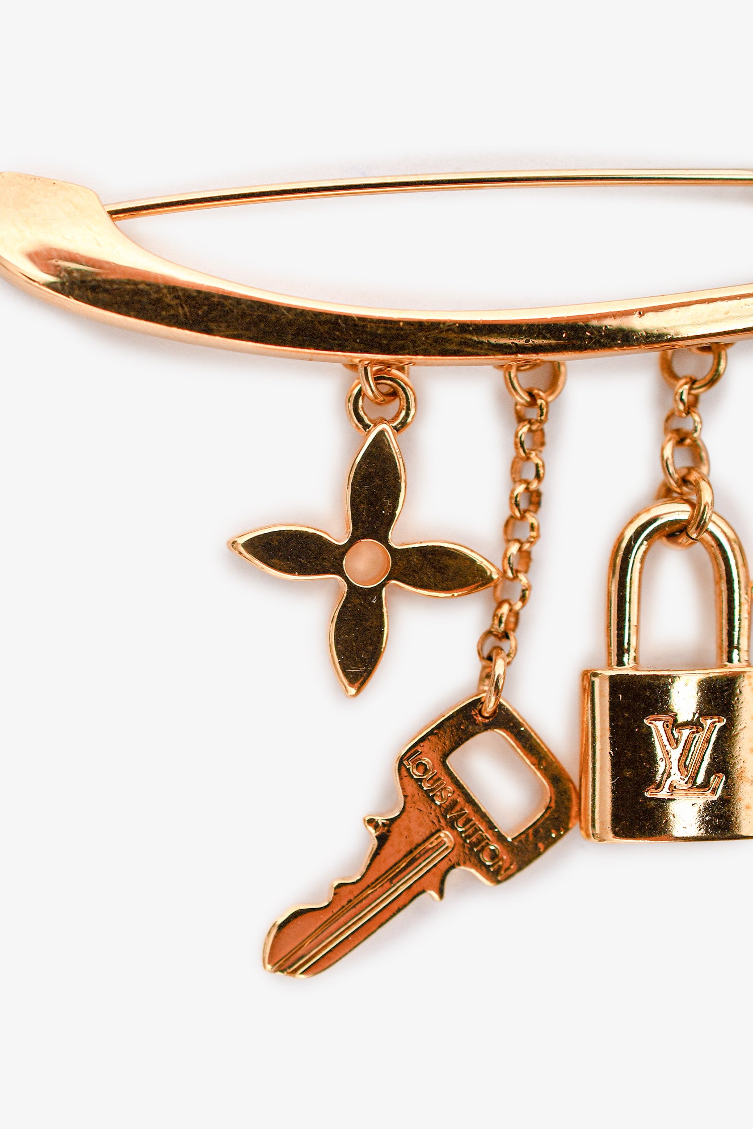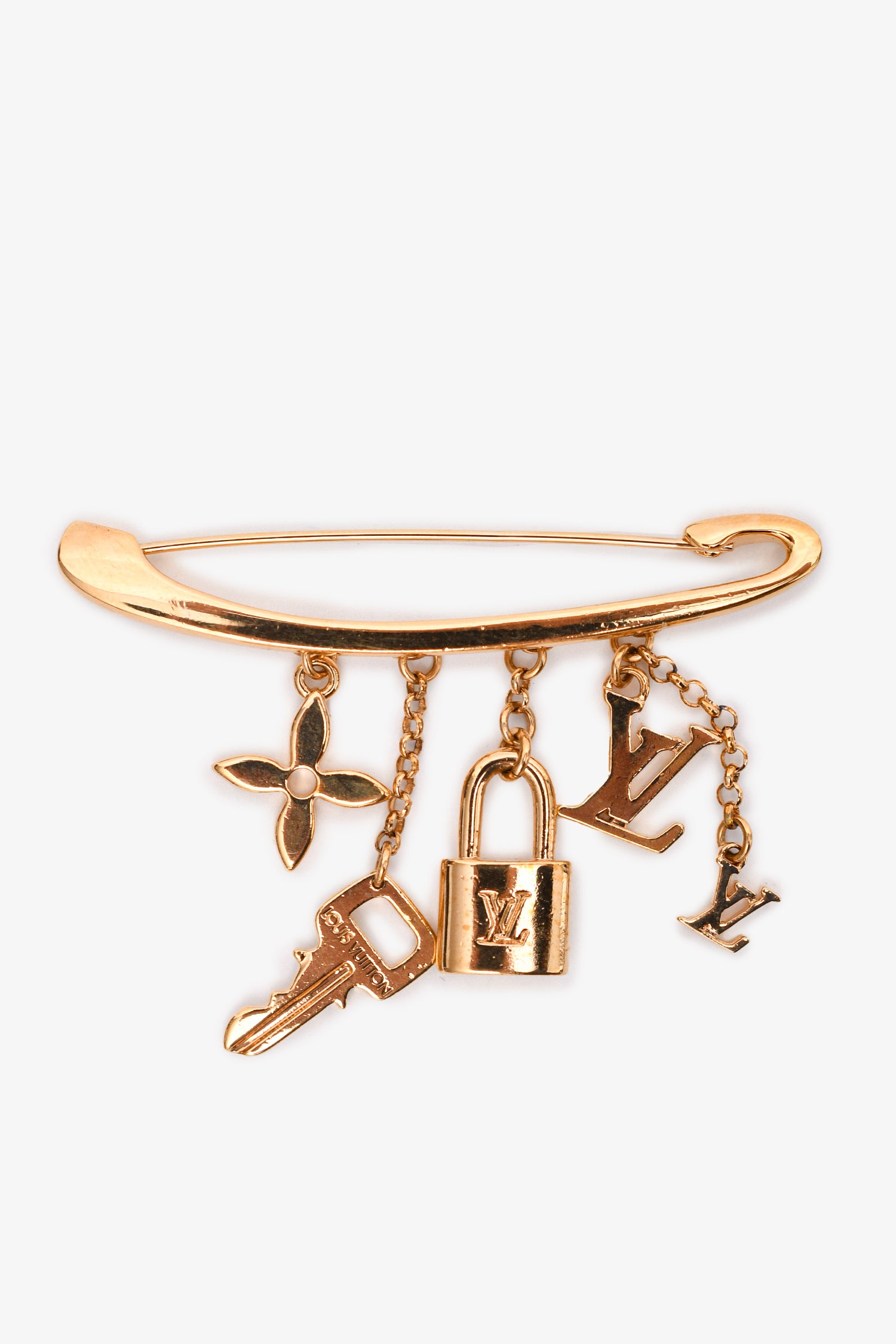 Refresh availabilityLouis Vuitton Gold Tone Safety Pin Charm Brooch. Push tab closure.
