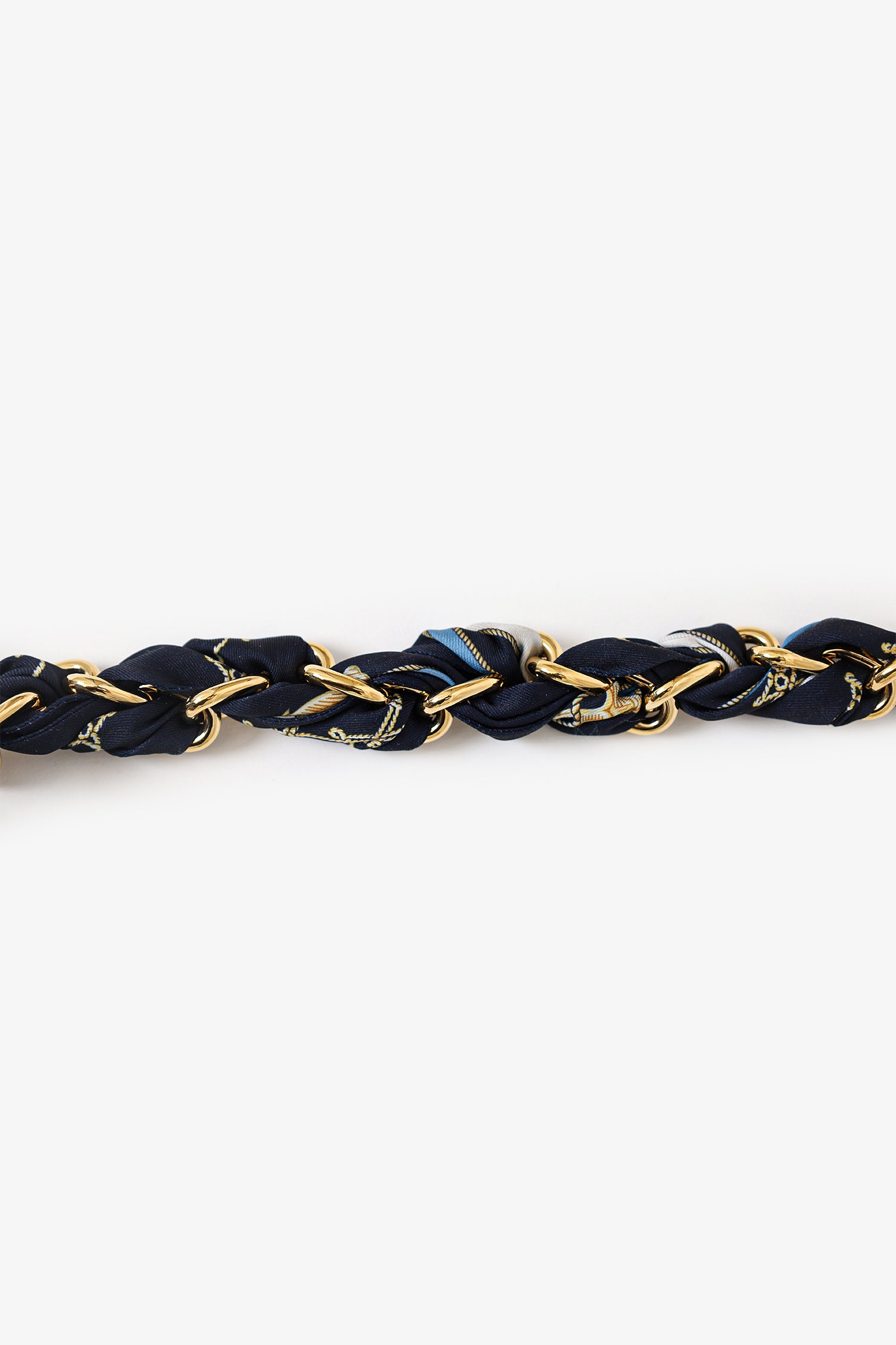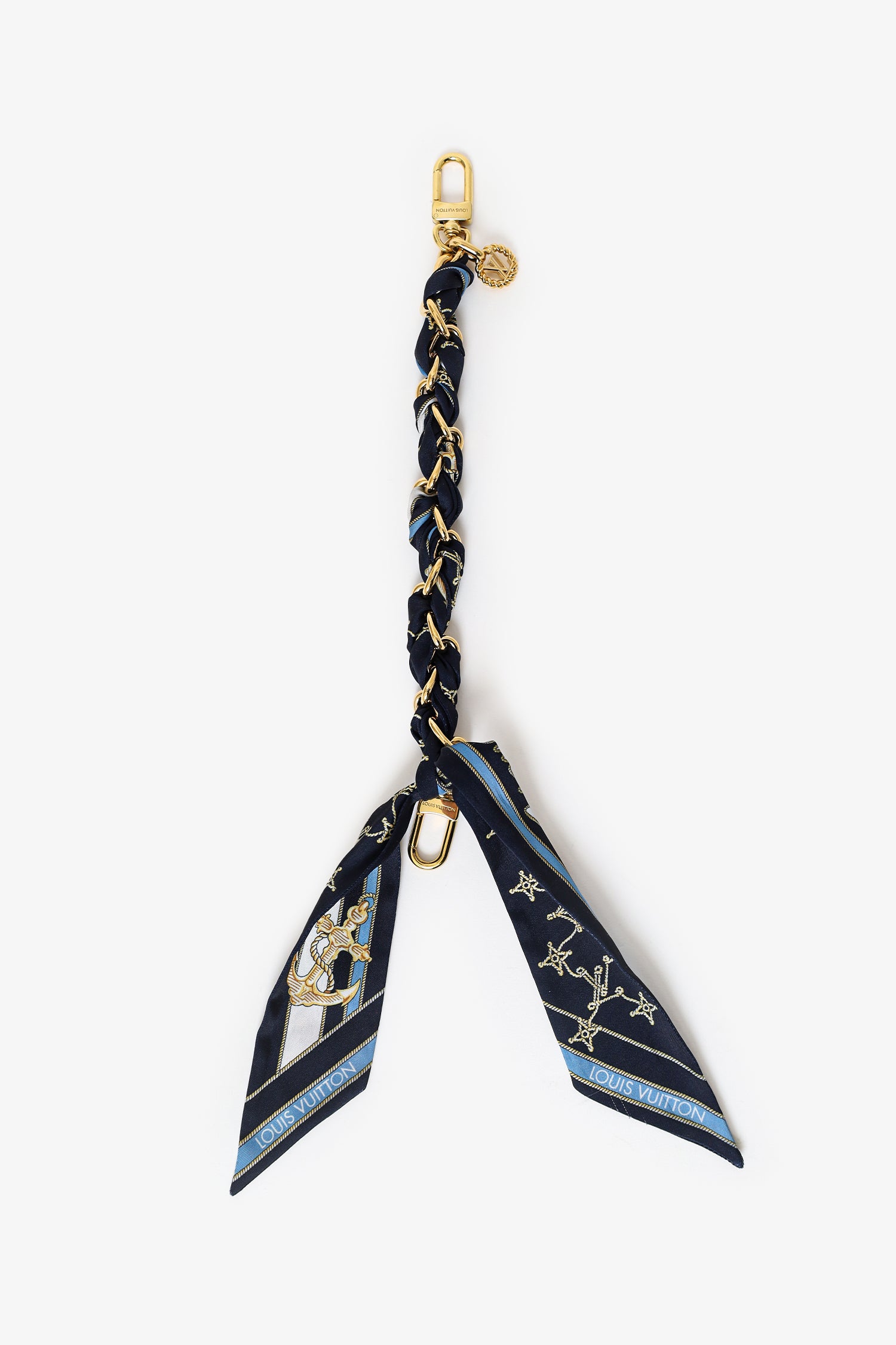 Refresh availabilityLouis Vuitton Gold Tone Silk Braided Nautical Bag Charm. Clasp closure on each side. Chainlink strap. Gold-tone hardware.