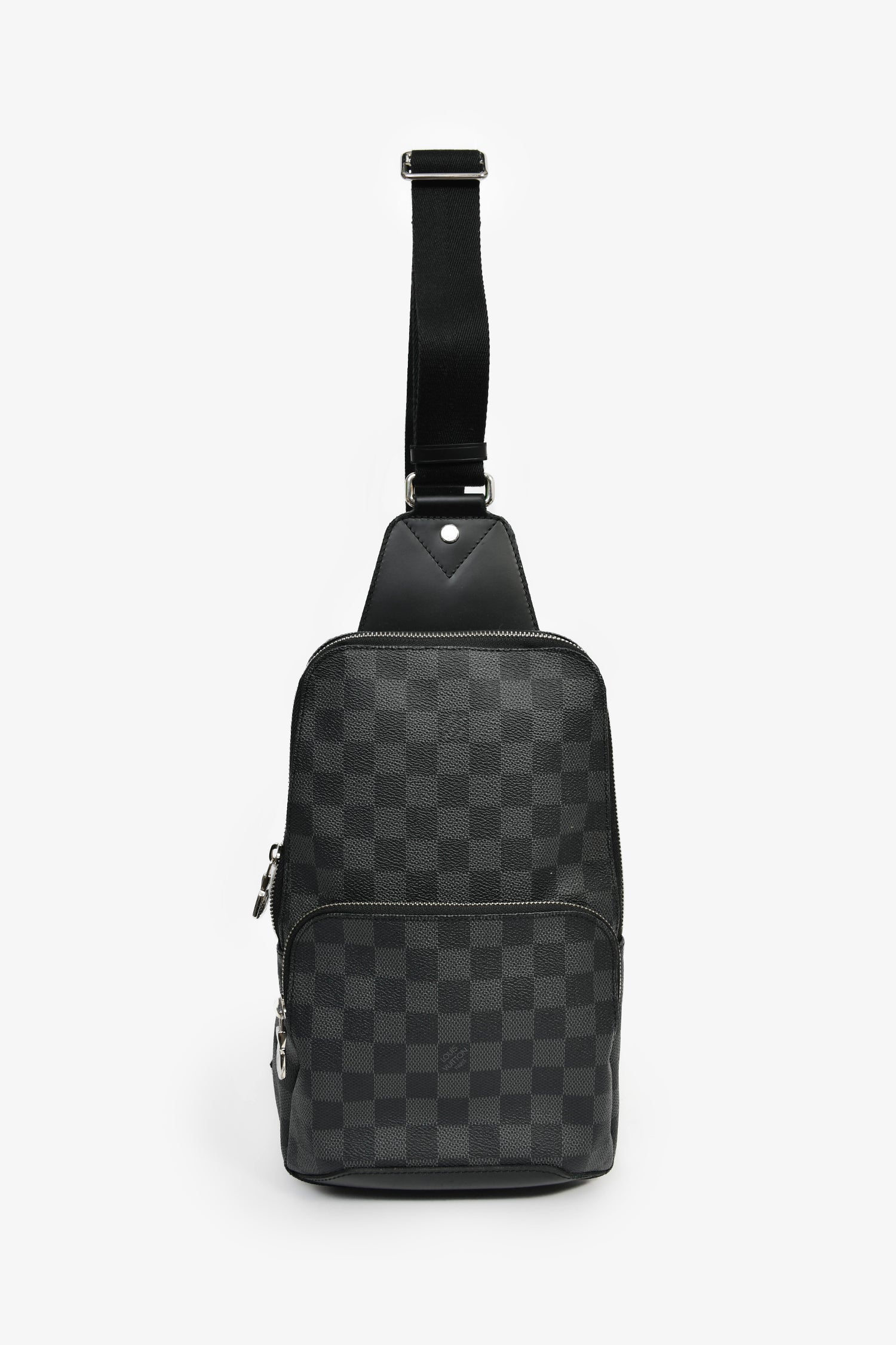 Refresh availabilityLouis Vuitton Grey Canvas Damier Graphite 'Avenue' Slingbag. Front zip pocket. Top zip closure. Tonal textile interior lining. Adjustable strap. Silver-tone hardware.