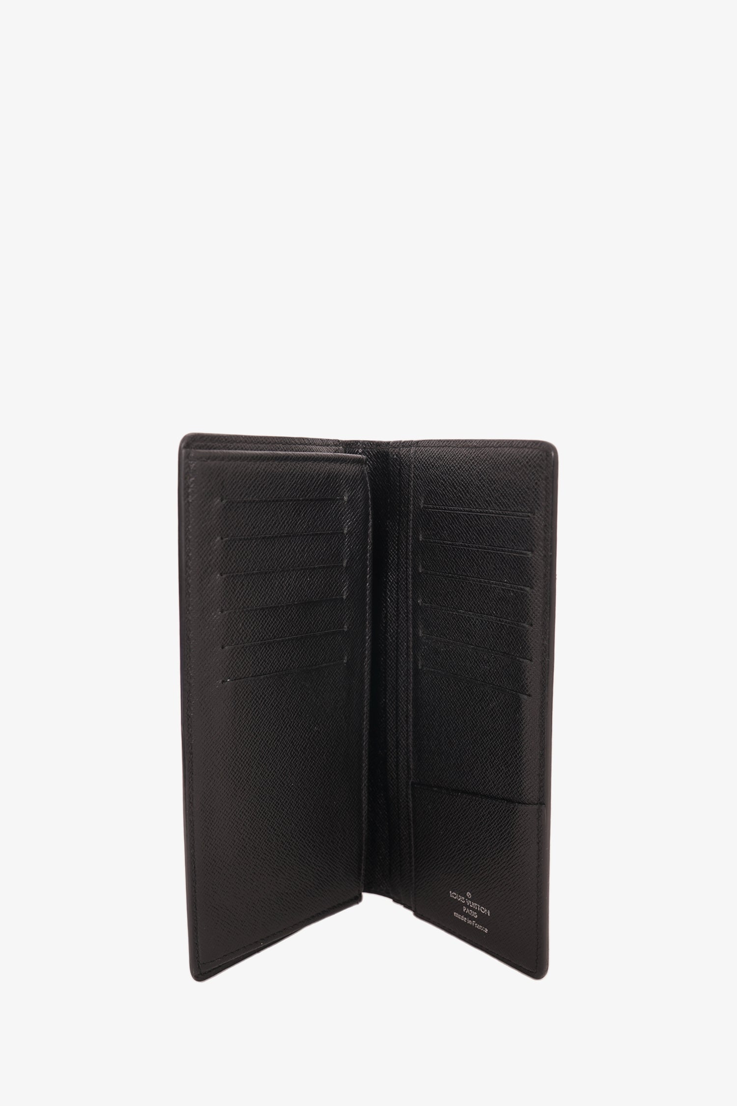 Refresh availabilityLouis Vuitton Grey Damier Graphite Leather 'Brazza' Wallet. Bifold. 13 card slots. 5 bill compartments. 1 zip interior compartment. Silver-toned hardware. Tonal stitching.