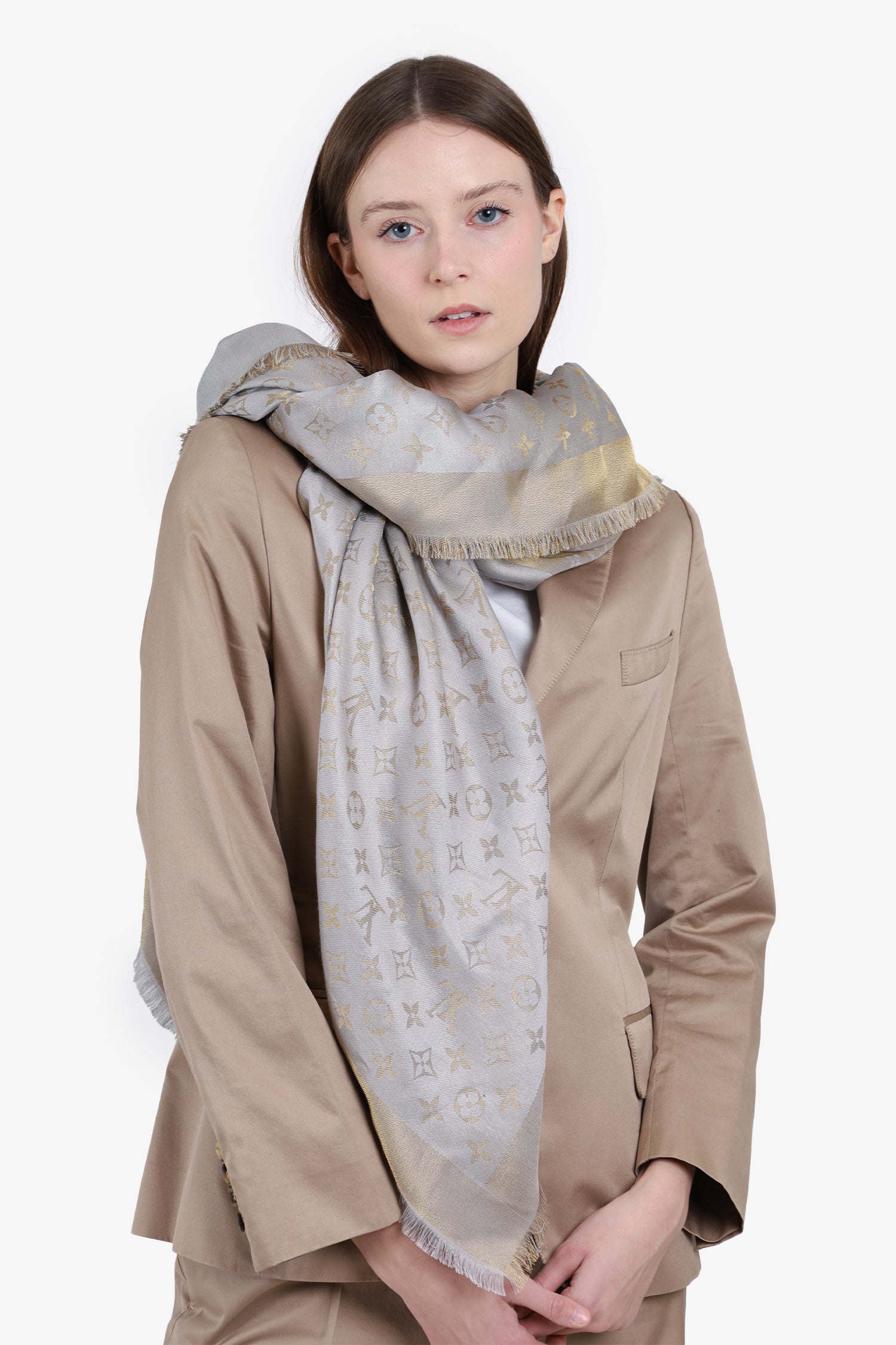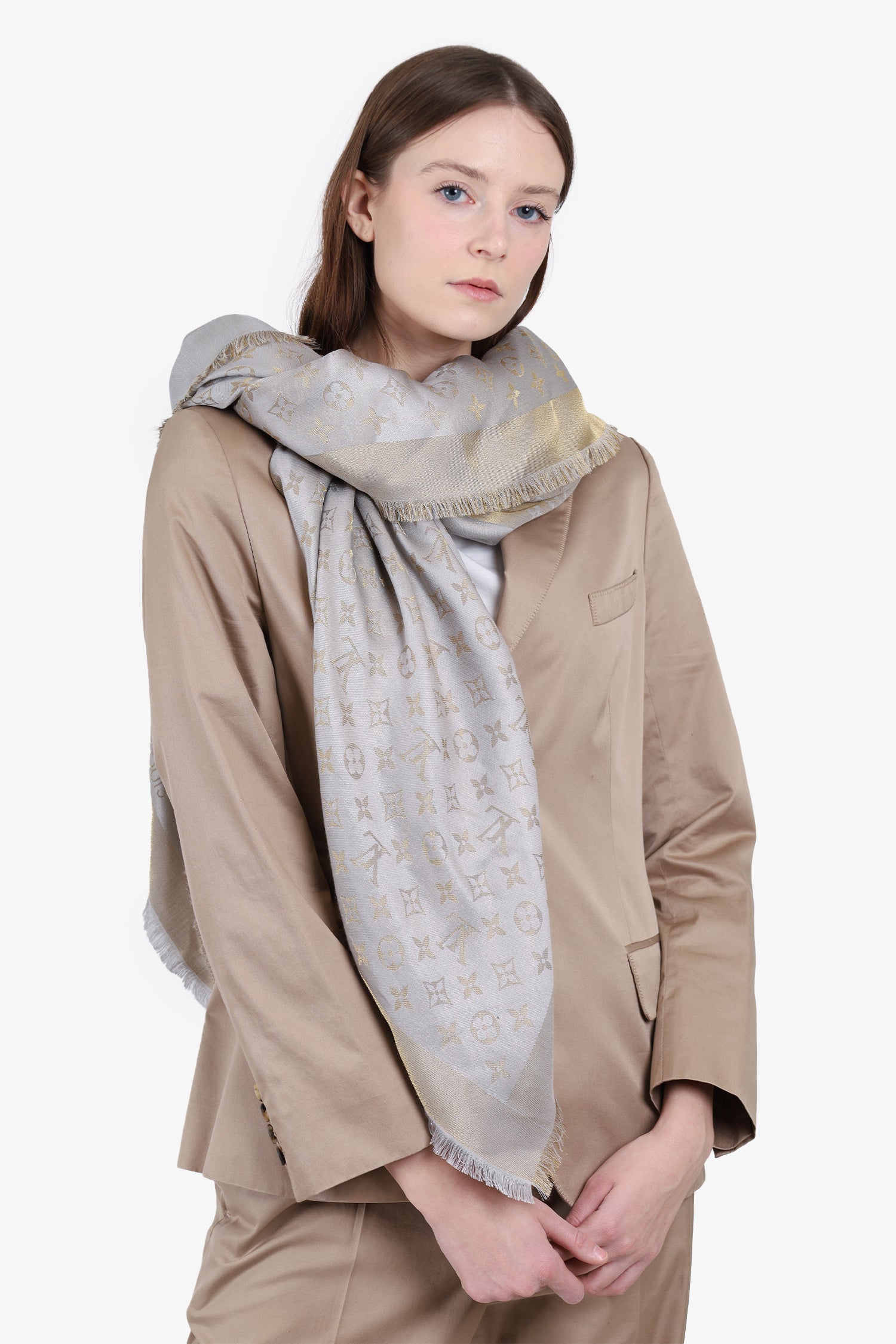 Louis Vuitton Grey/Gold Monogram Silk/Wool Scarf