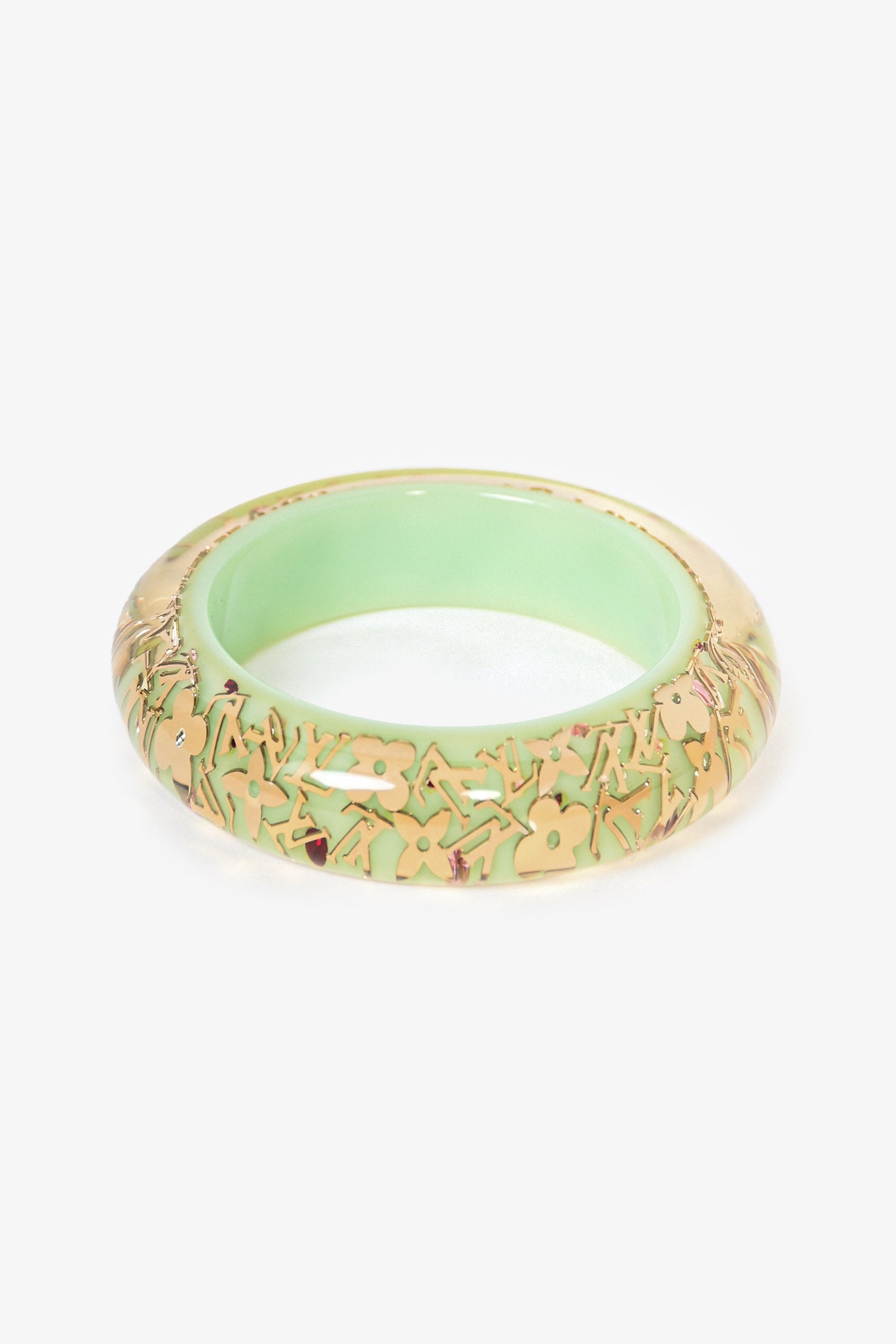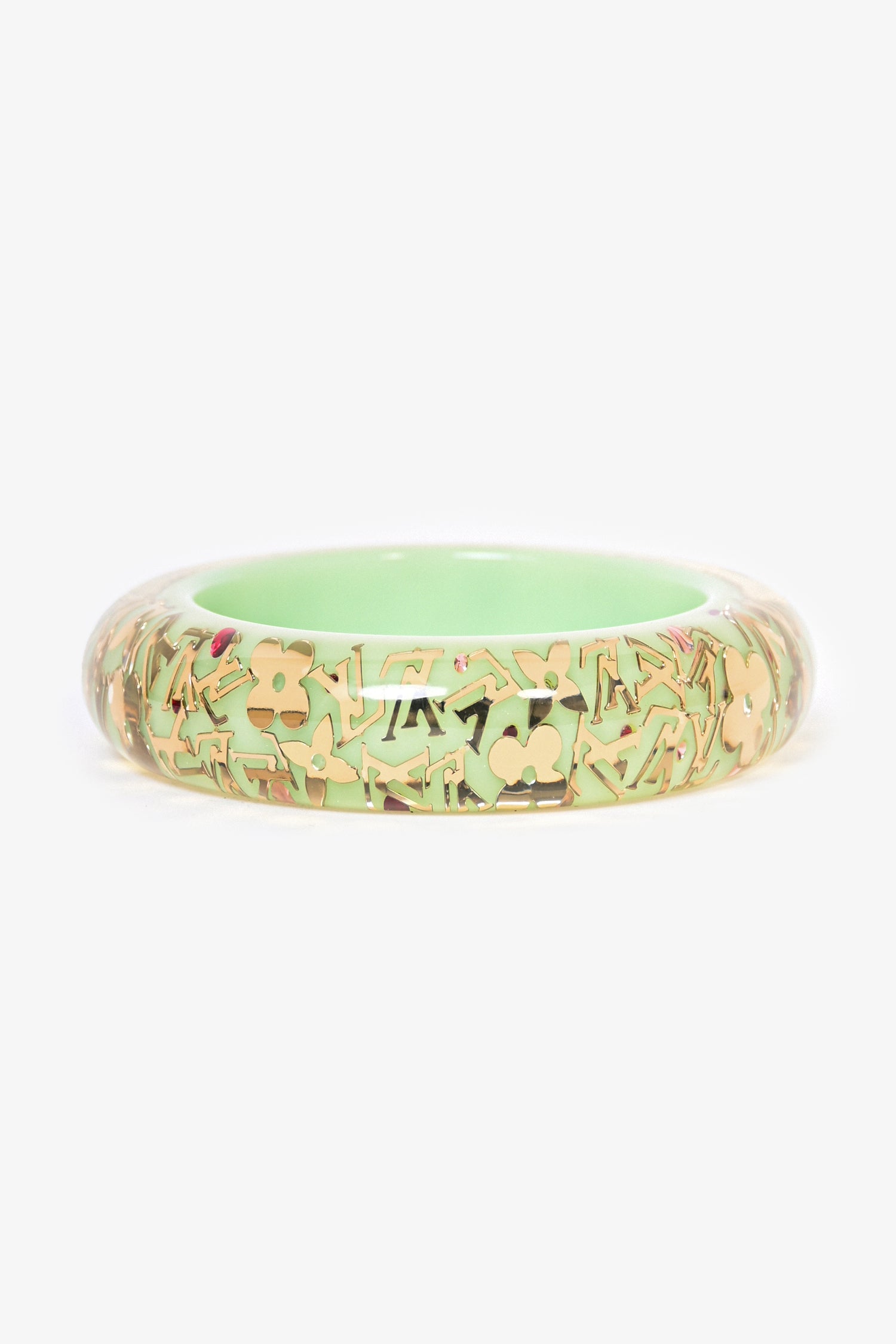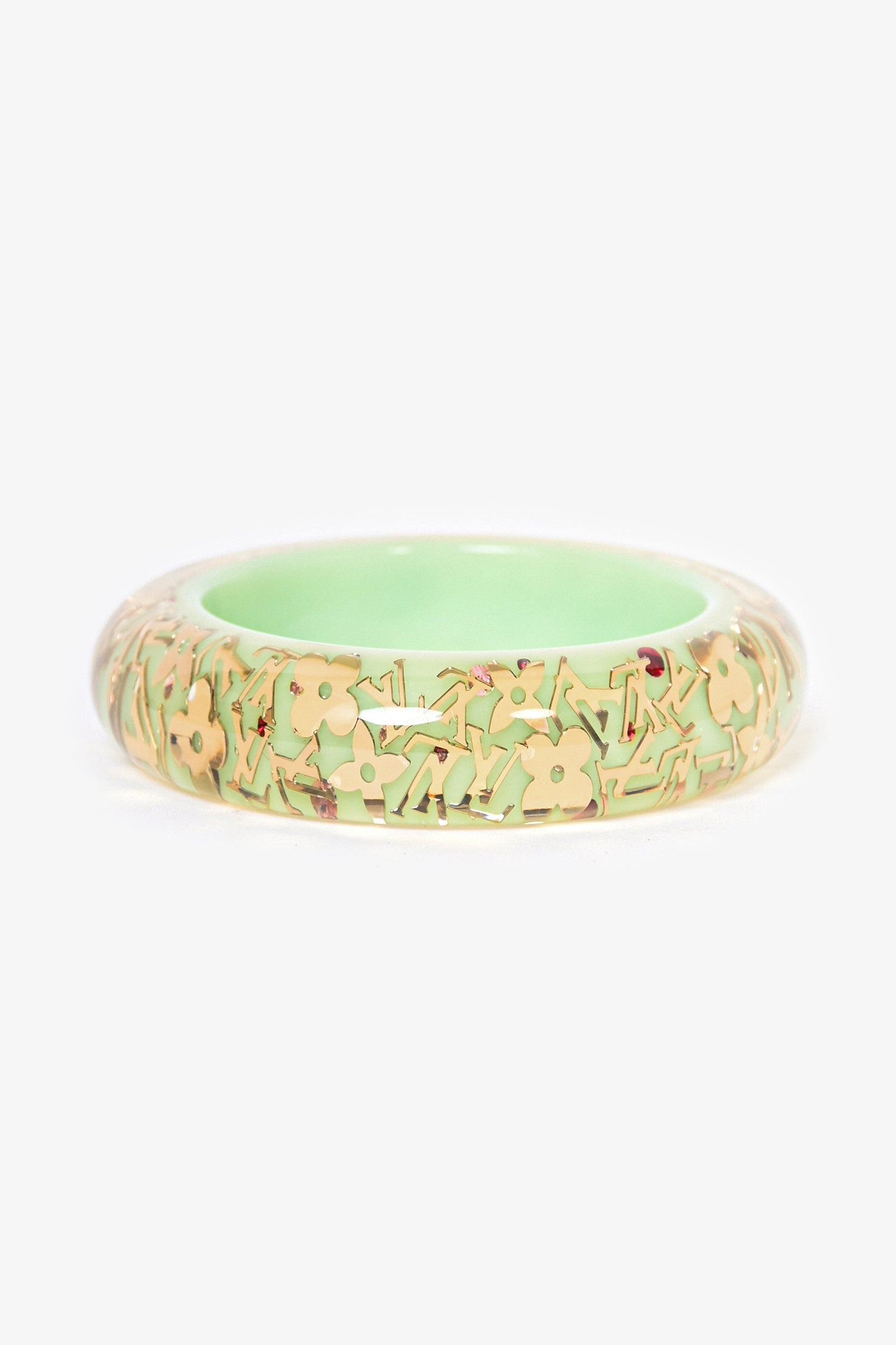 Refresh availabilityLouis Vuitton Light Blue Resin Inclusion Bangle Bracelet. Gold-tone monogrammed flakes.