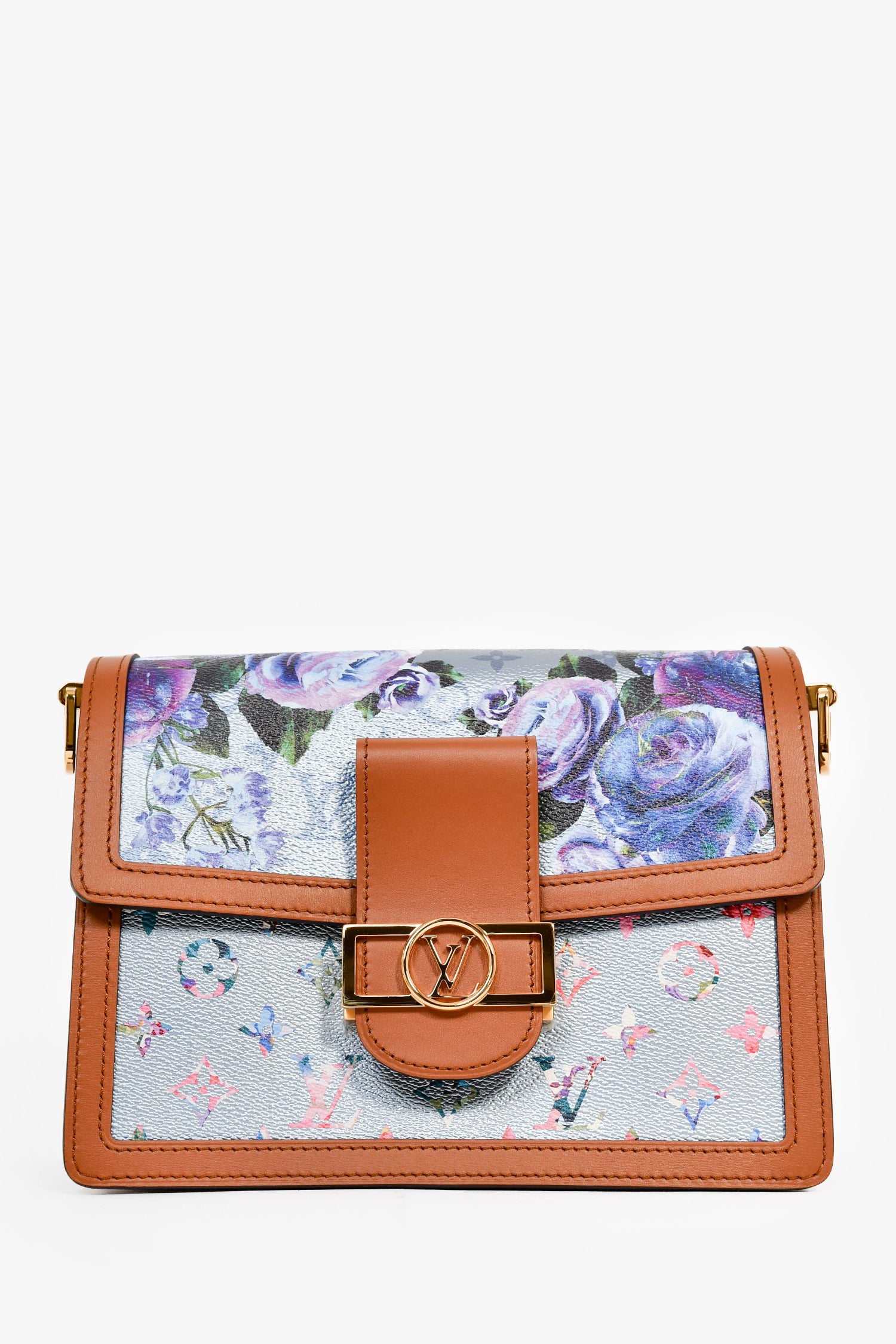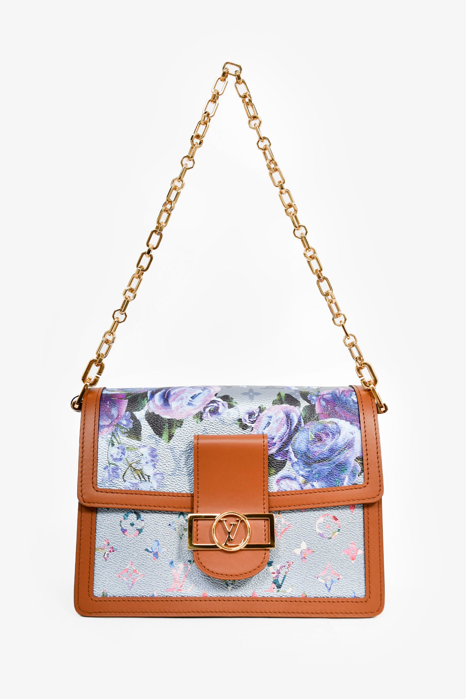 Refresh availabilityLouis Vuitton Metallic Blue Monogram 'Garden Dauphine' MM Bag. Fold-over flap with a magnetic closure. Gold-tone hardware. Leather trim. Chain-link shoulder strap. Suede lined interior. Tonal stitching.