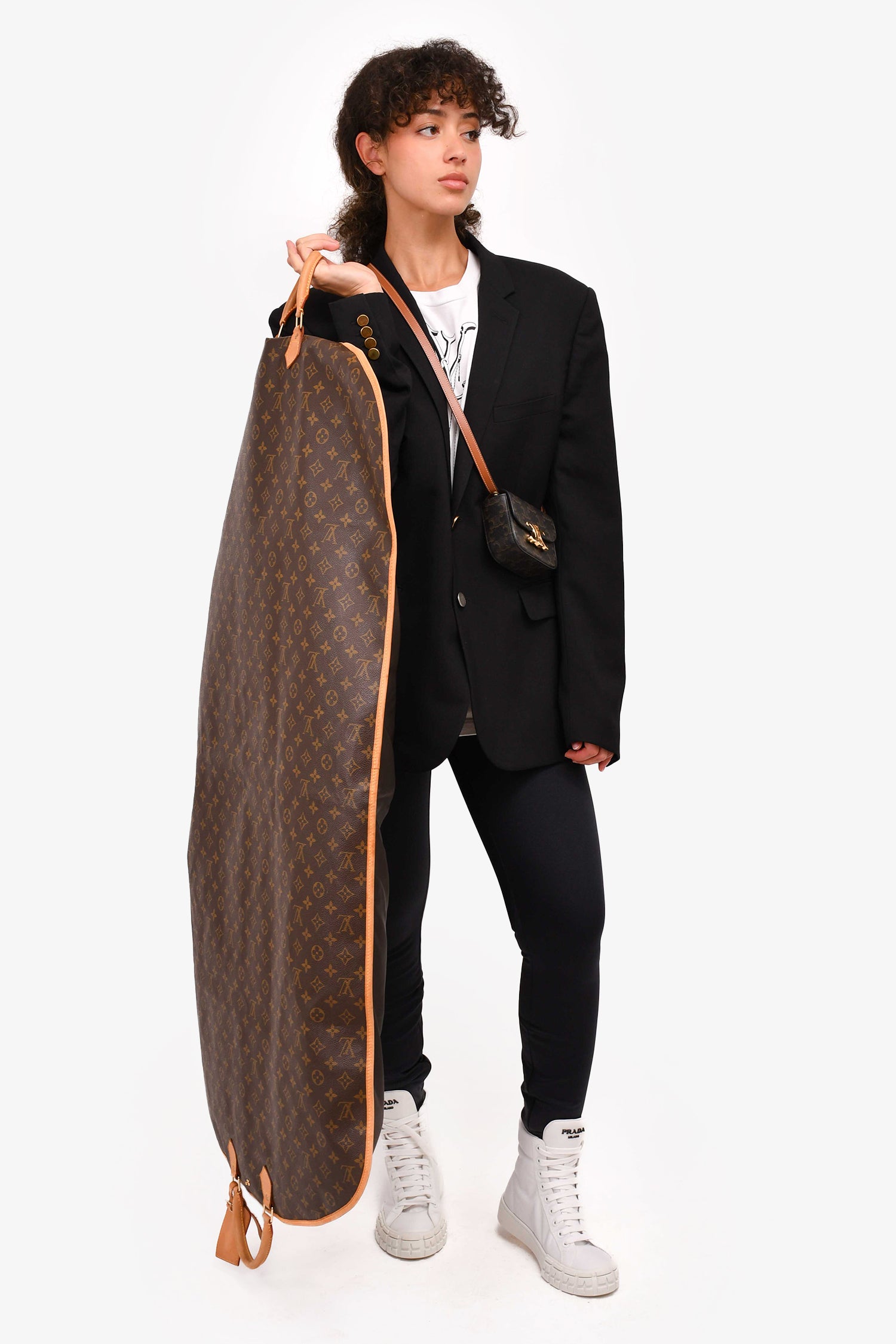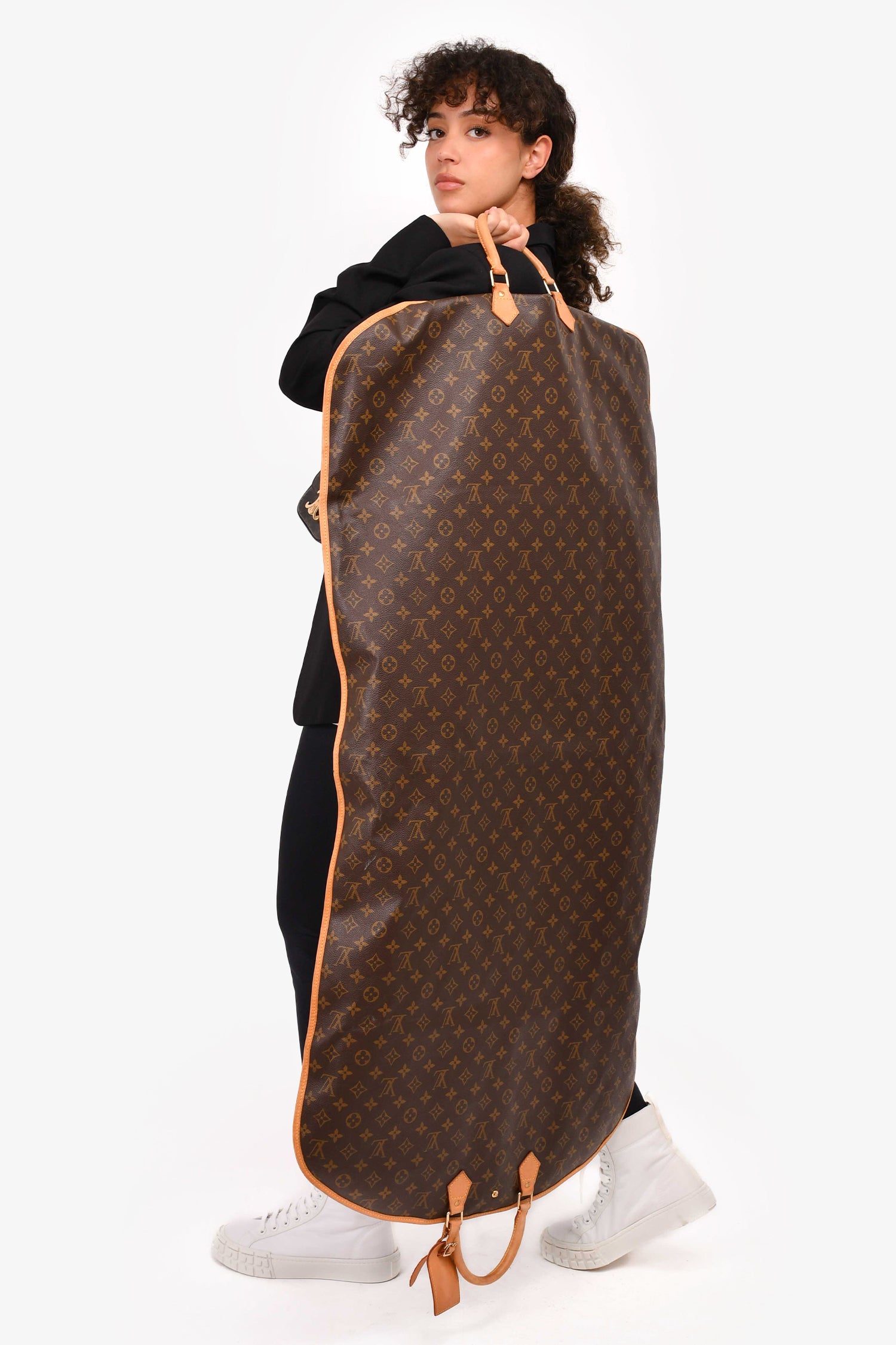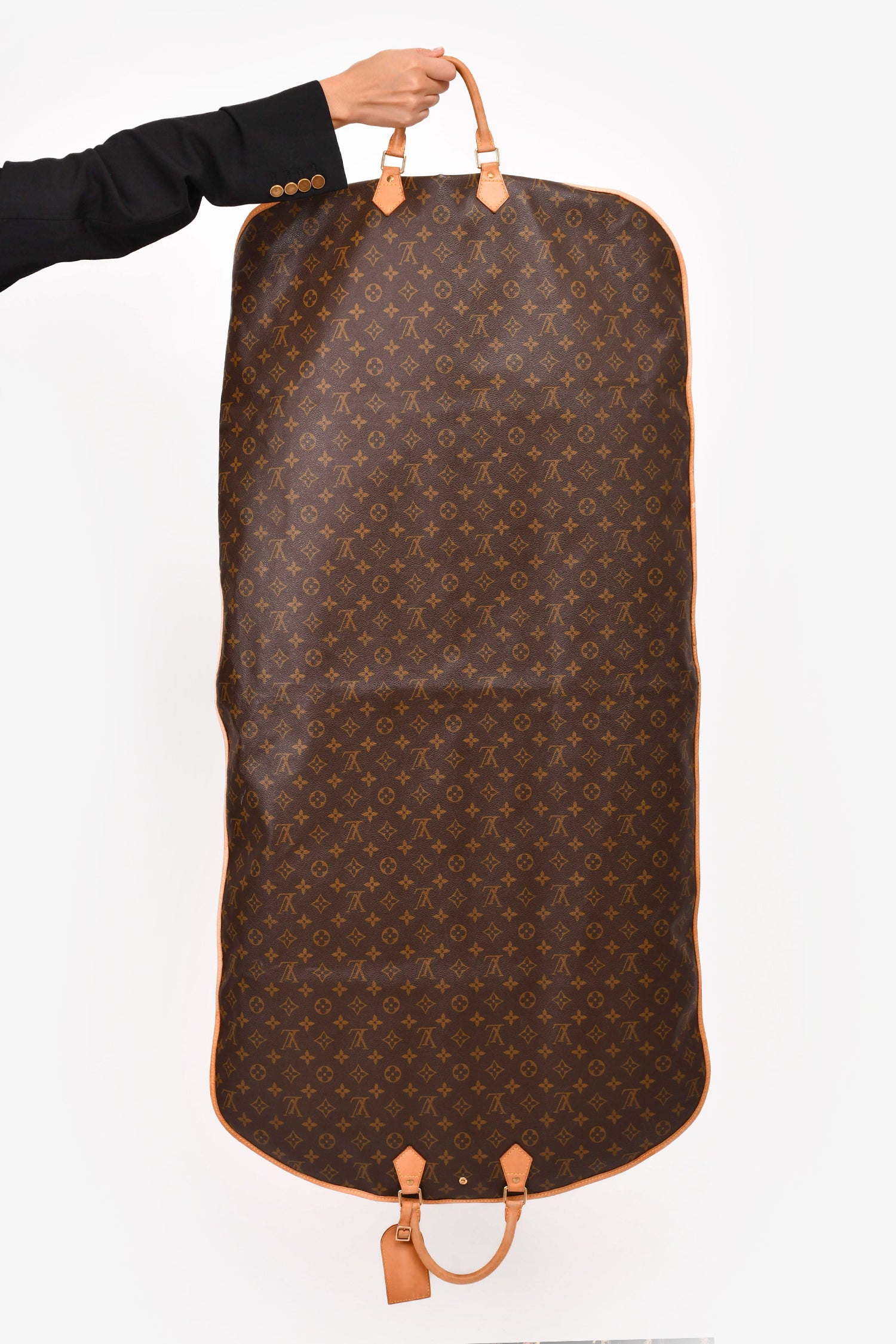 Refresh availabilityLouis Vuitton Monogram Garment Bag with Hangers. Gold-tone hardware. Includes 3 hangers. Full zip closure. Handles on both ends. Luggage tag. Metal hanger component. Yellow stitching.
