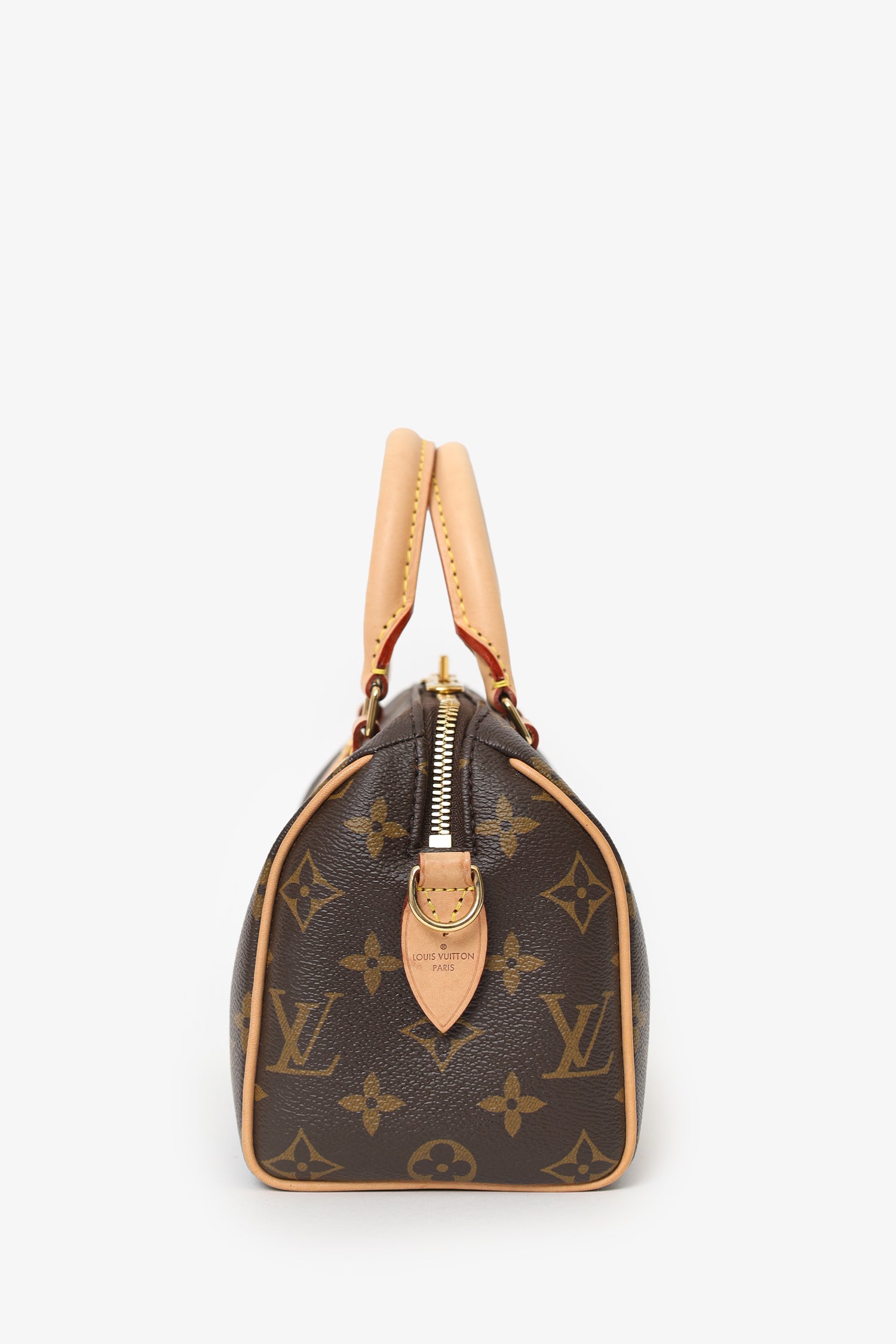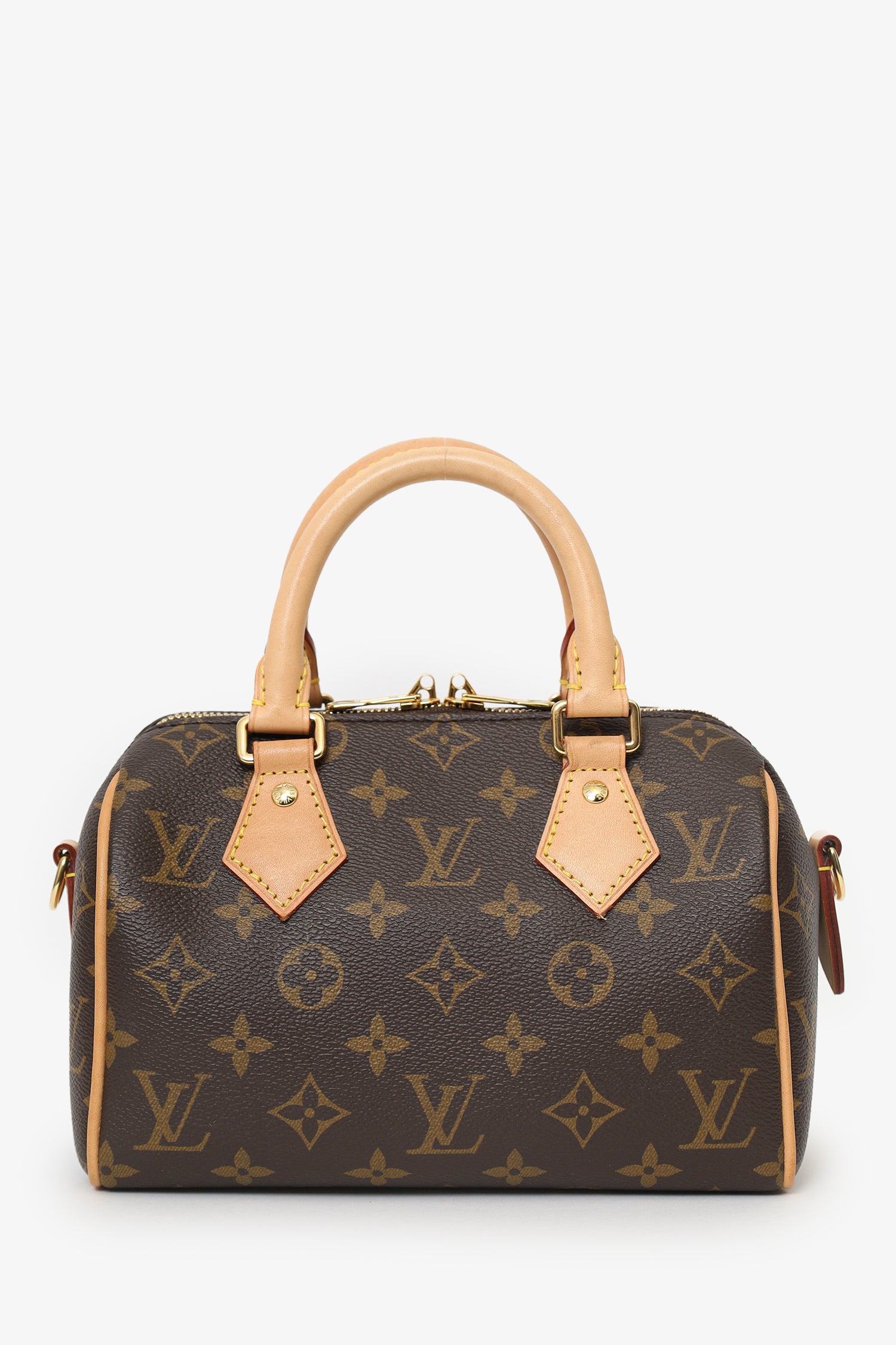 Refresh availabilityLouis Vuitton Monogram Speedy Bandouliere 20B. Top 2-way zip closure. Twin top-handles. Lined interior. Single interior slip pocket. Includes unbranded felt insert. Lined interior. Gold-tone hardware. Tonal stitching.