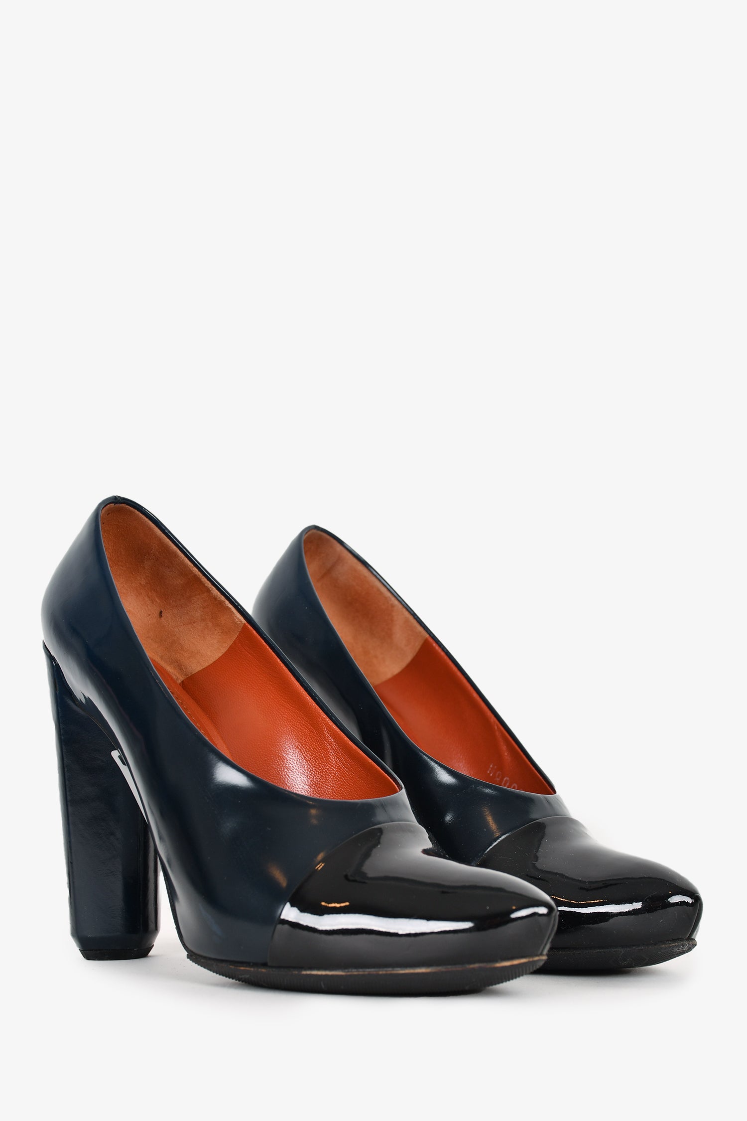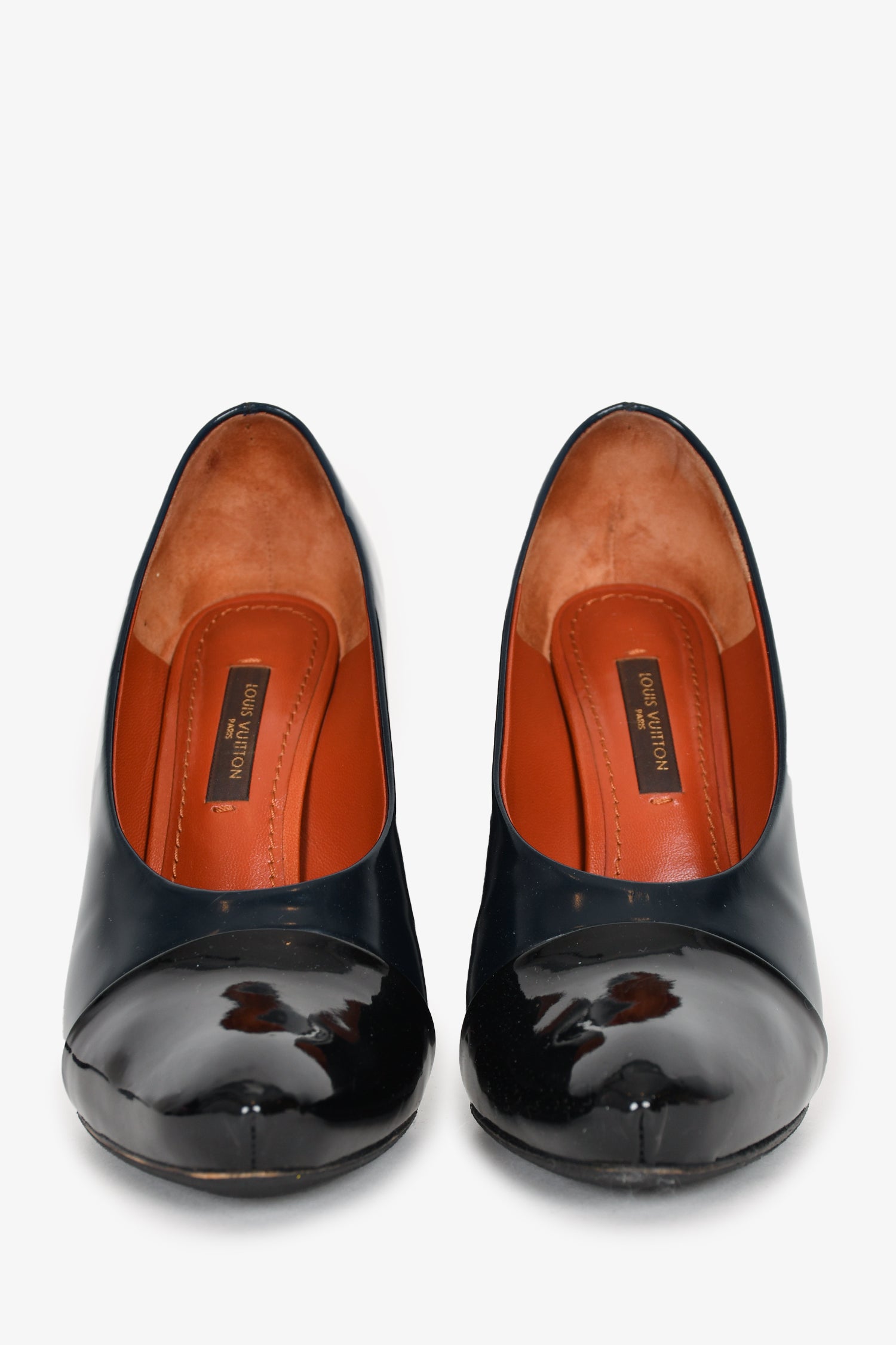 Refresh availabilityLouis Vuitton Navy/Black Patent Leather Heels. Slip-on. Pointed toe. Glossy finish. Topy soles.
