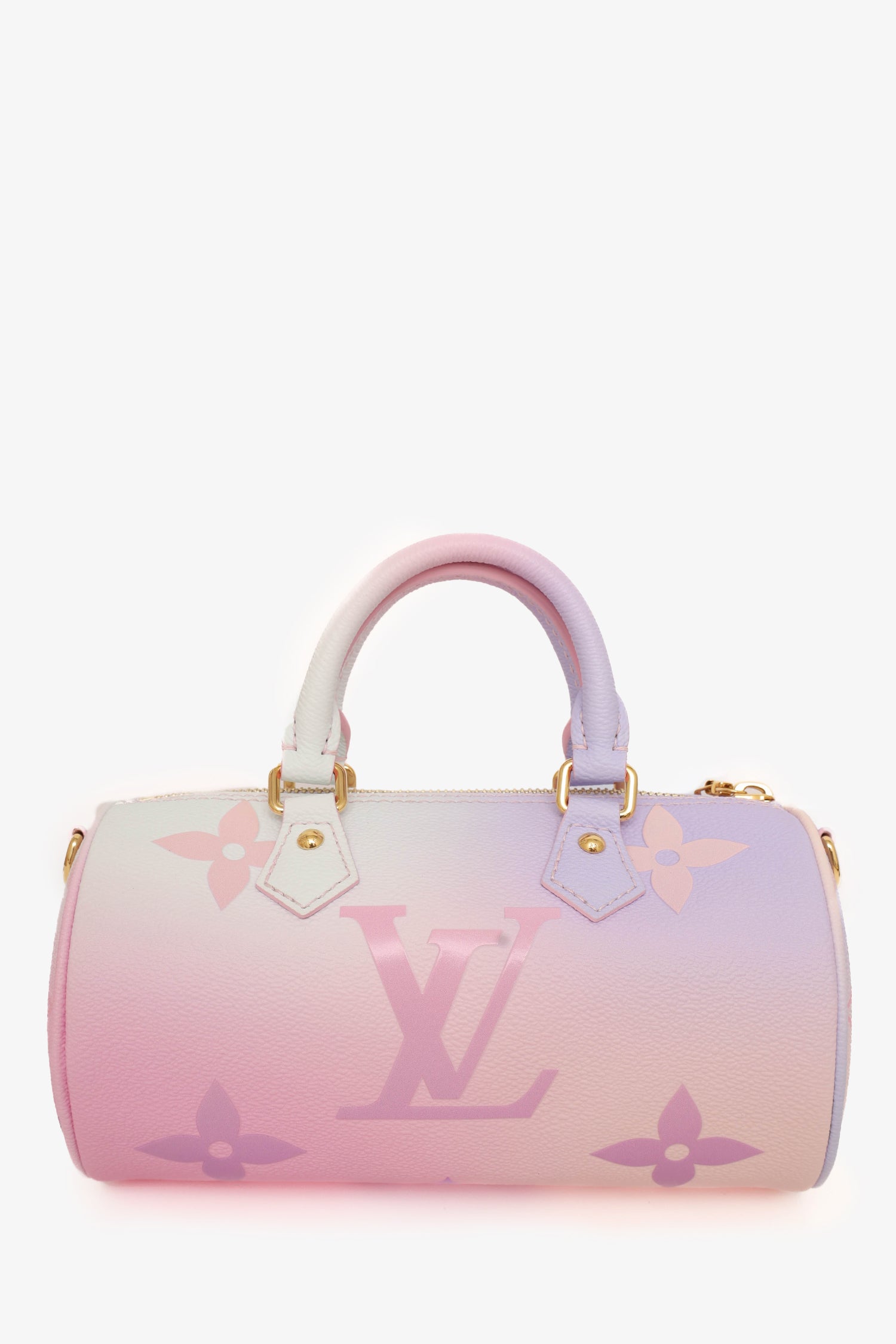 Refresh availabilityLouis Vuitton Pink/Multicolour Spring In The City Monogram Sunrise Papillon BB. Top zip closure. Single wall slip pocket. Gold-tone hardware. Top handles. Adjustable and detachable cross body strap, with detachable coin pouch. Tonal and contrast stitching.