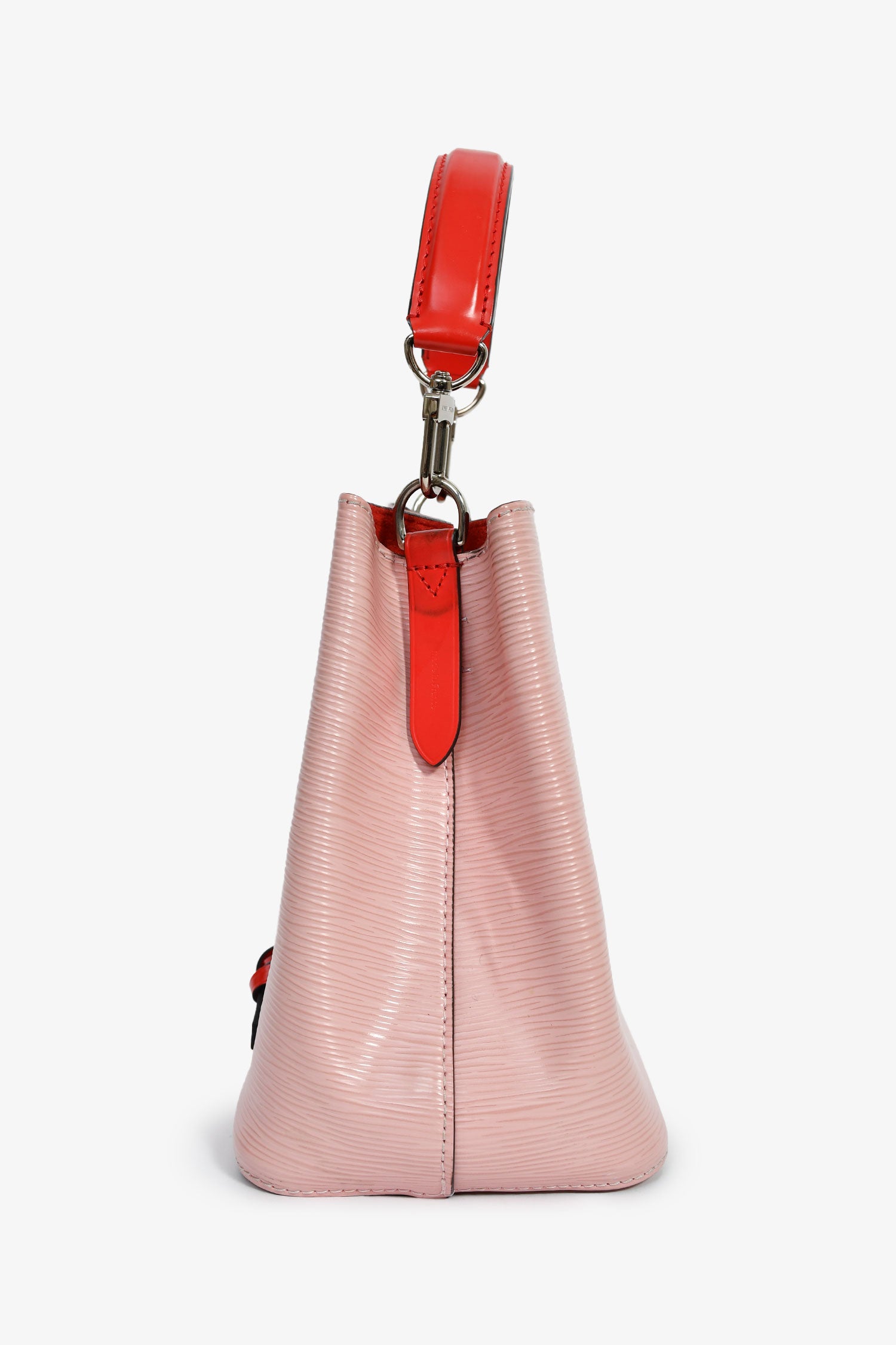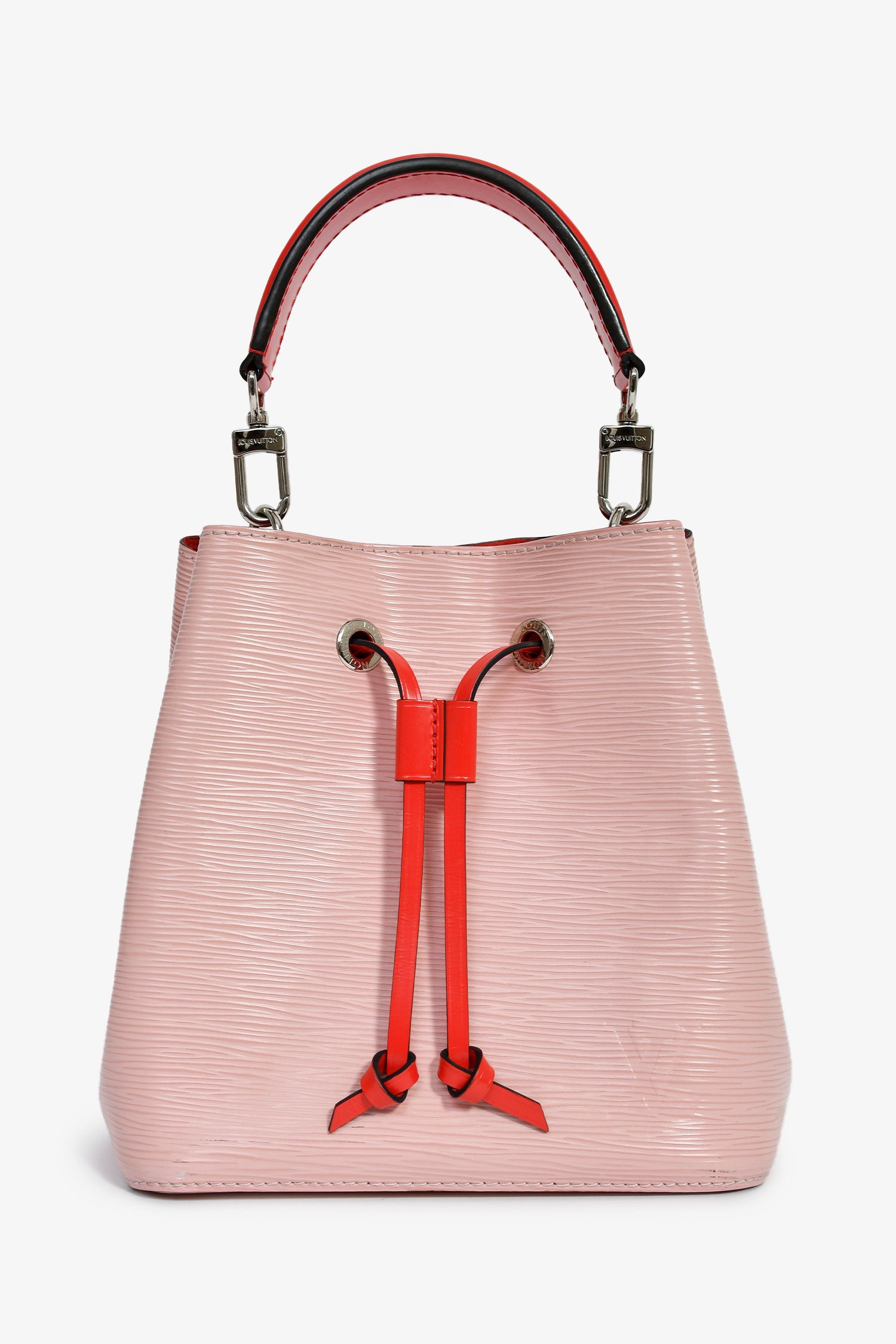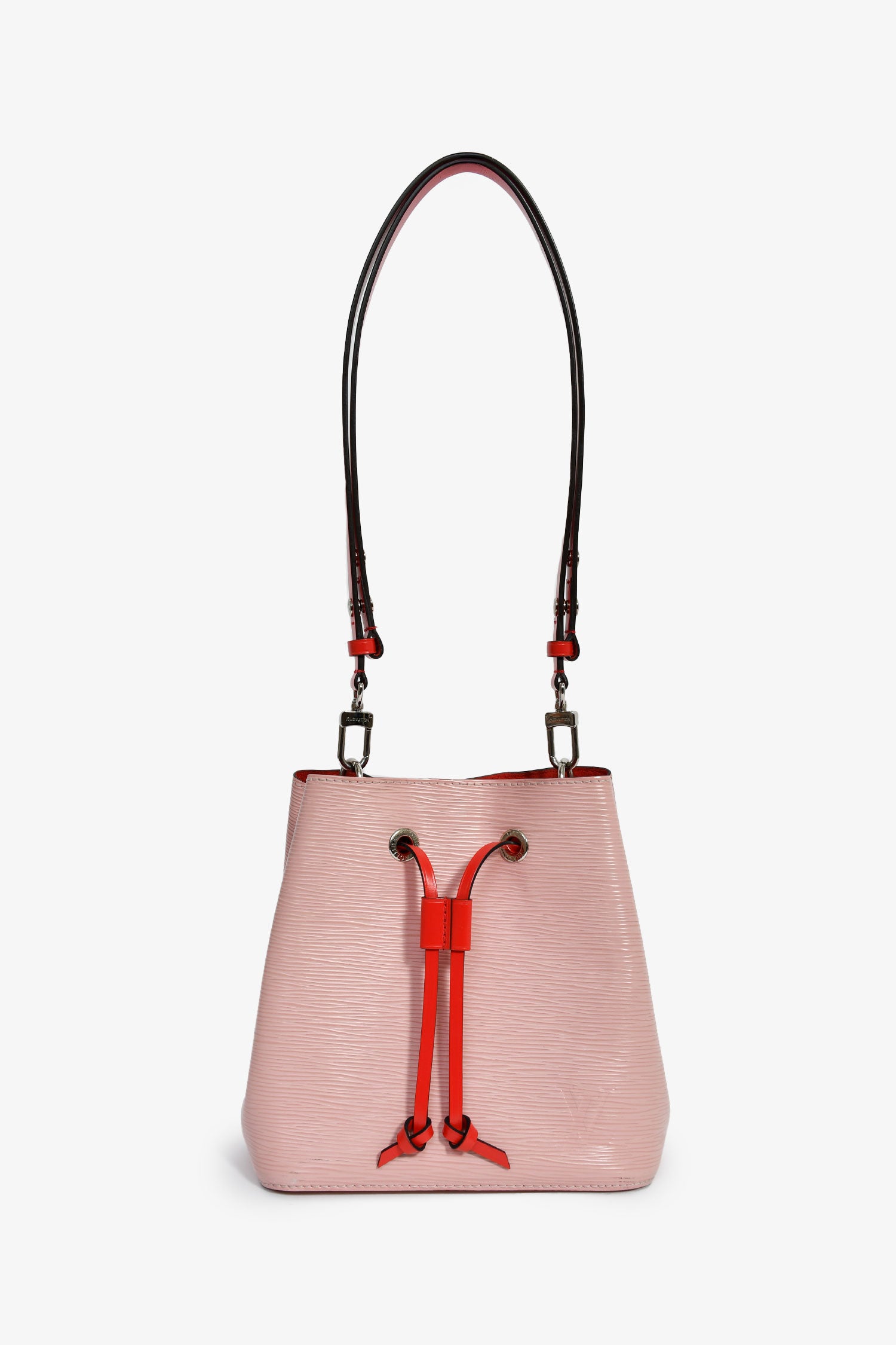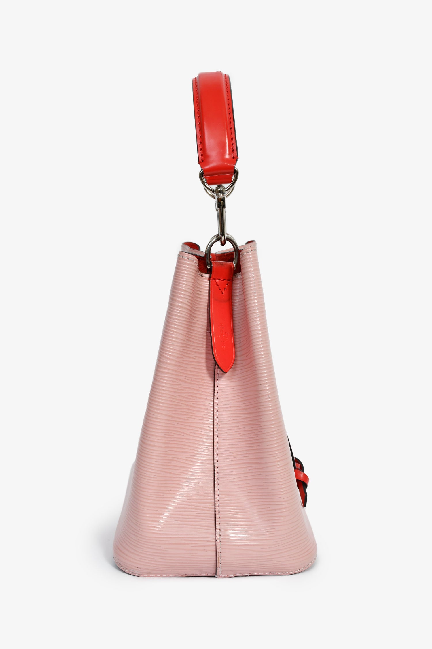 Refresh availabilityLouis Vuitton Pink/Red Epi Leather NeoNoe BB Top Handle. Open top with front cinch cord closure. Single top handle and attachable shoulder strap. Lined suede interior with 3 compartments. Silver-tone hardware. Tonal stitching.