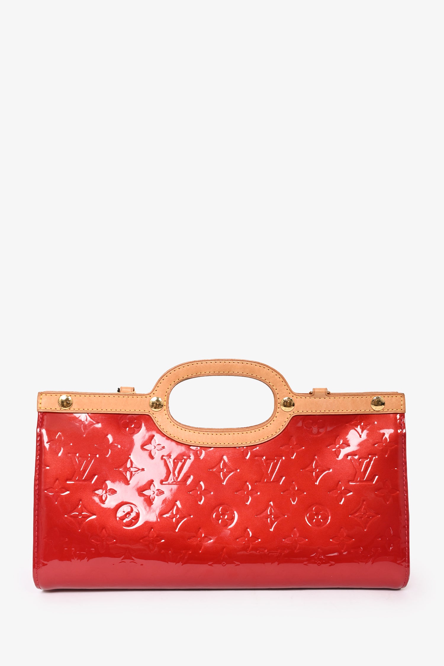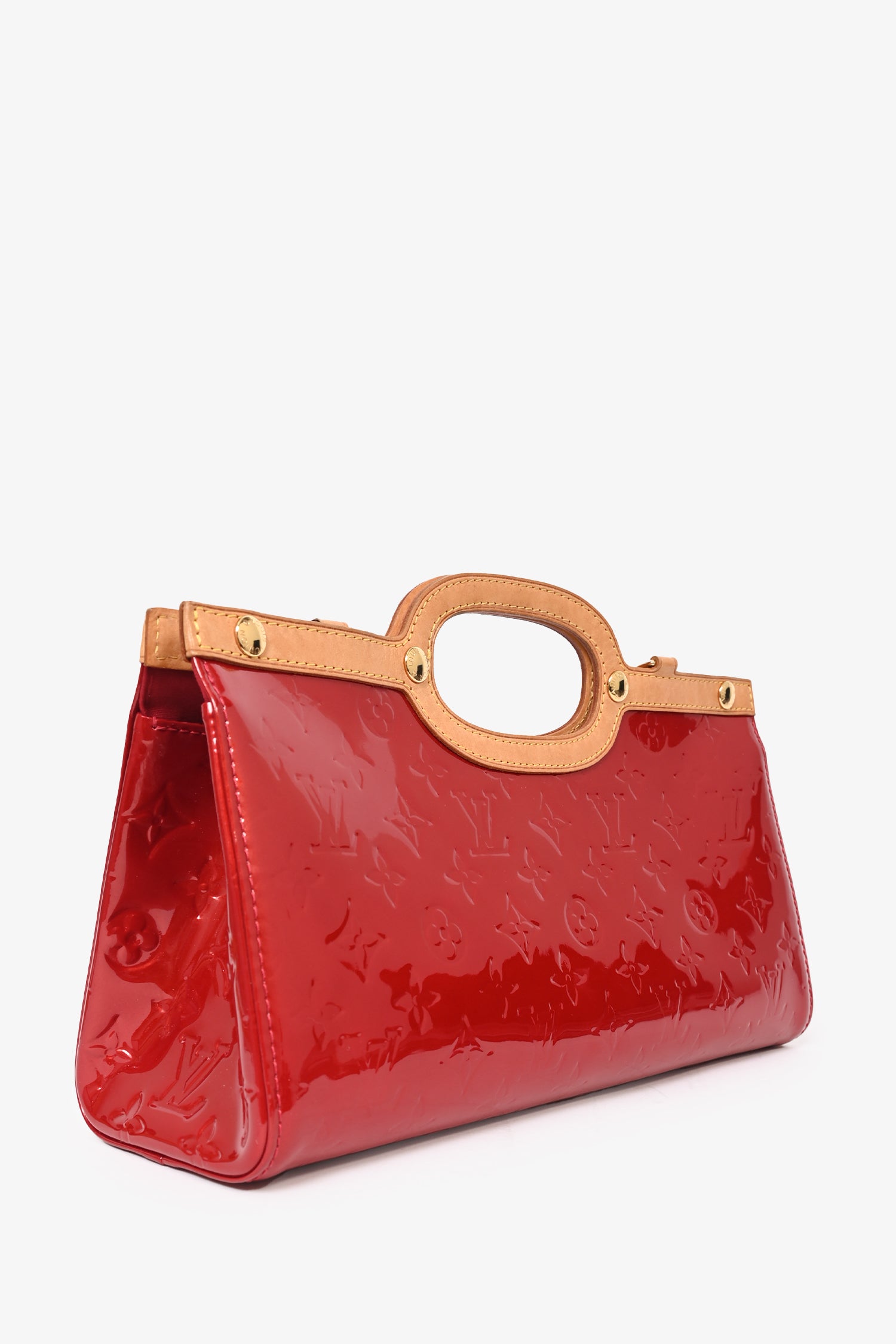 Refresh availabilityLouis Vuitton Red Monogram Vernis Roxbury Drive. Button closure. Removable shoulder strap. Tonal and contrast stitching.