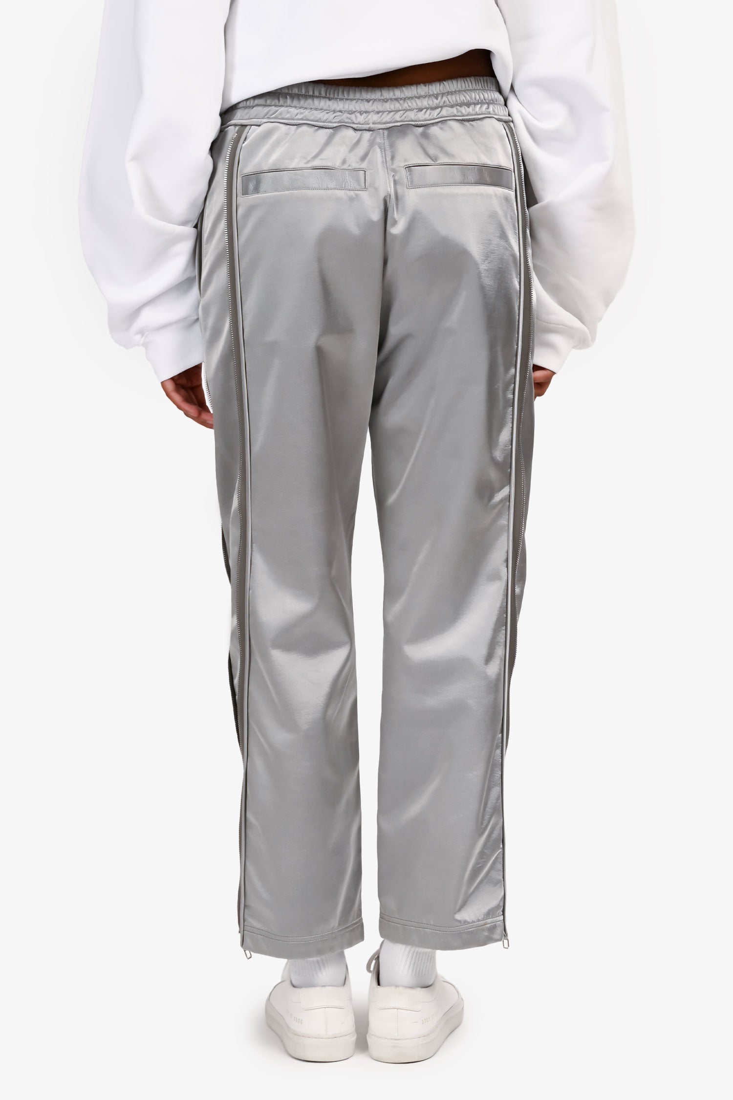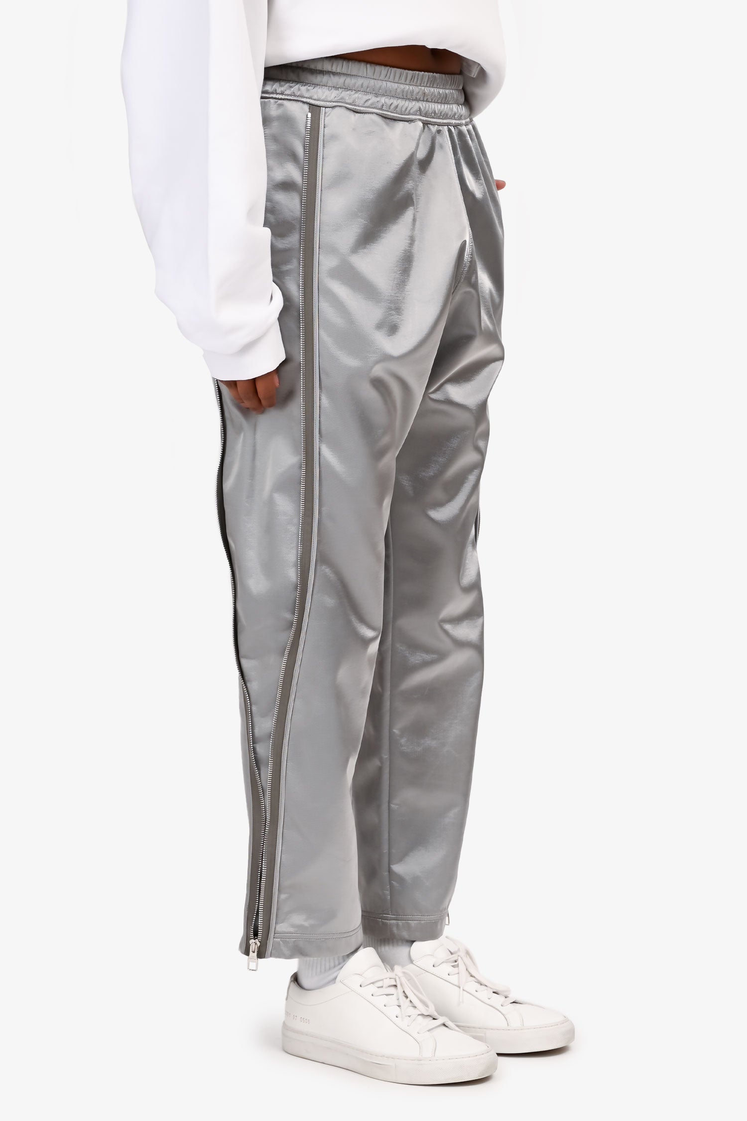Refresh availabilityLouis Vuitton Silver Metallic Zip Detailed Pants. Exposed zipper details at sides. Elastic waistband. Side slit pockets. Tonal stitching.