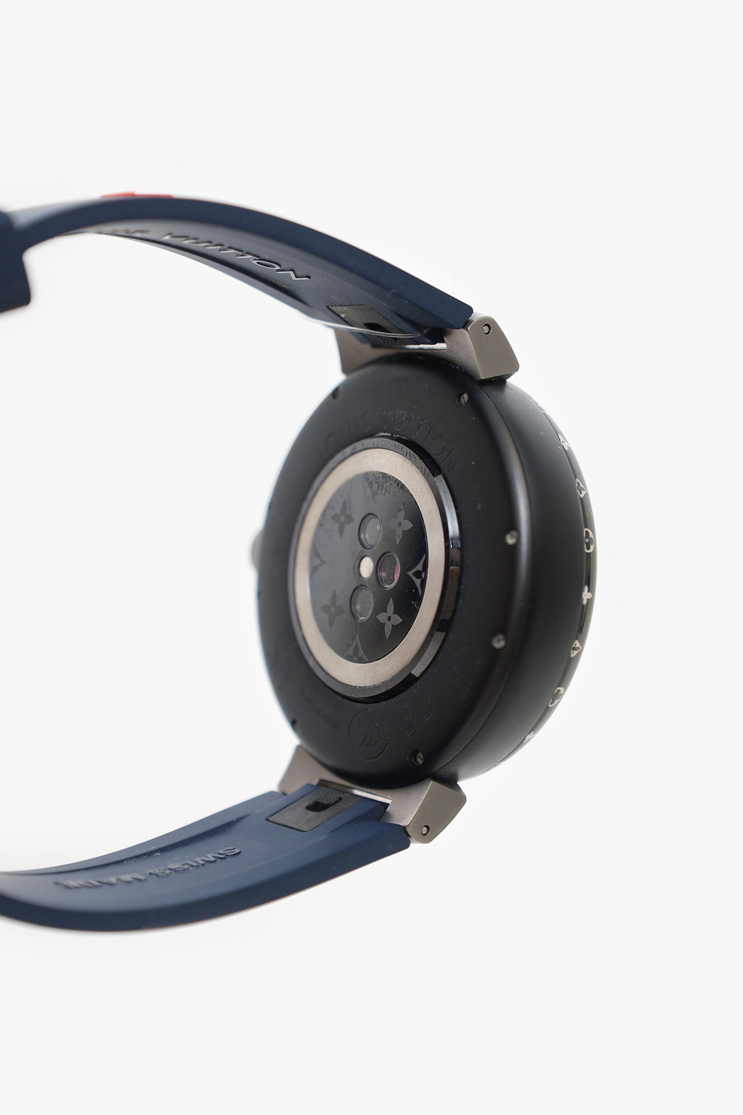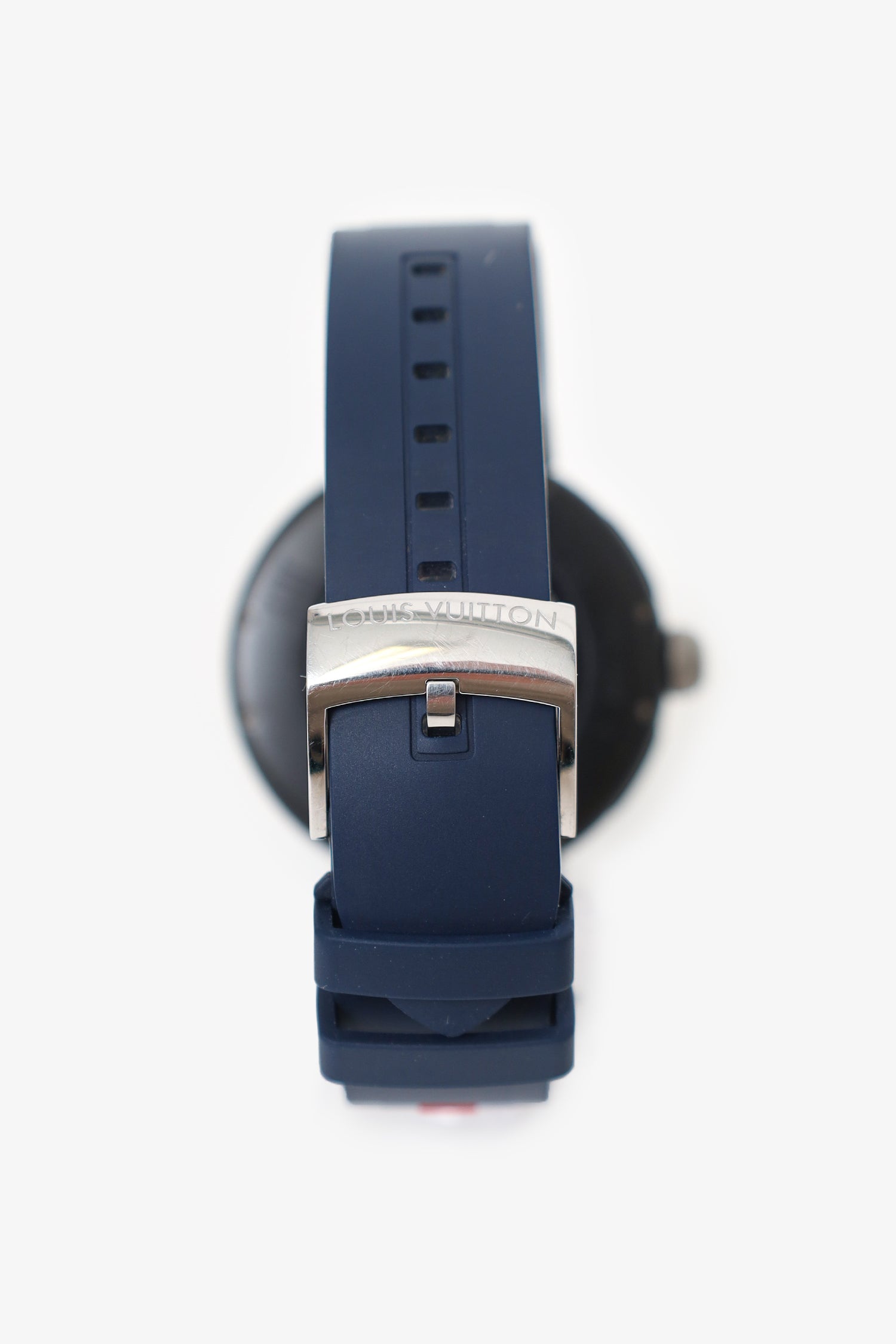 Refresh availabilityLouis Vuitton Tambour Horizon Light Up Connected Watch. Detachable silicon watchband with adjustable buckle closure. Side dial and buttons. Side crown to navigate menu. Smart touch screen. Water resistant case. App available to connect. Palladium-tone hardware. Inclusions: wireless charger, cord, block and 6 universal adapter.