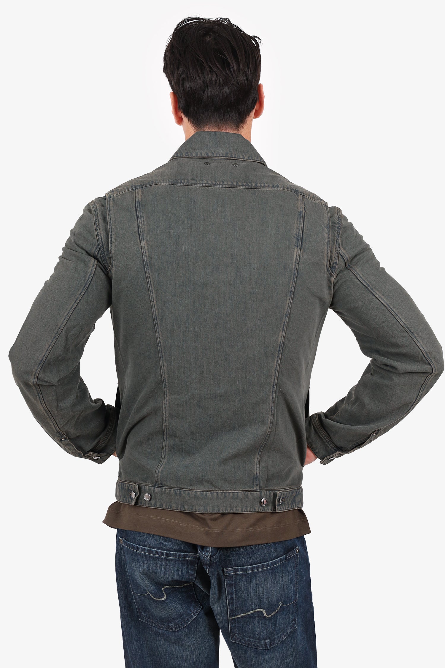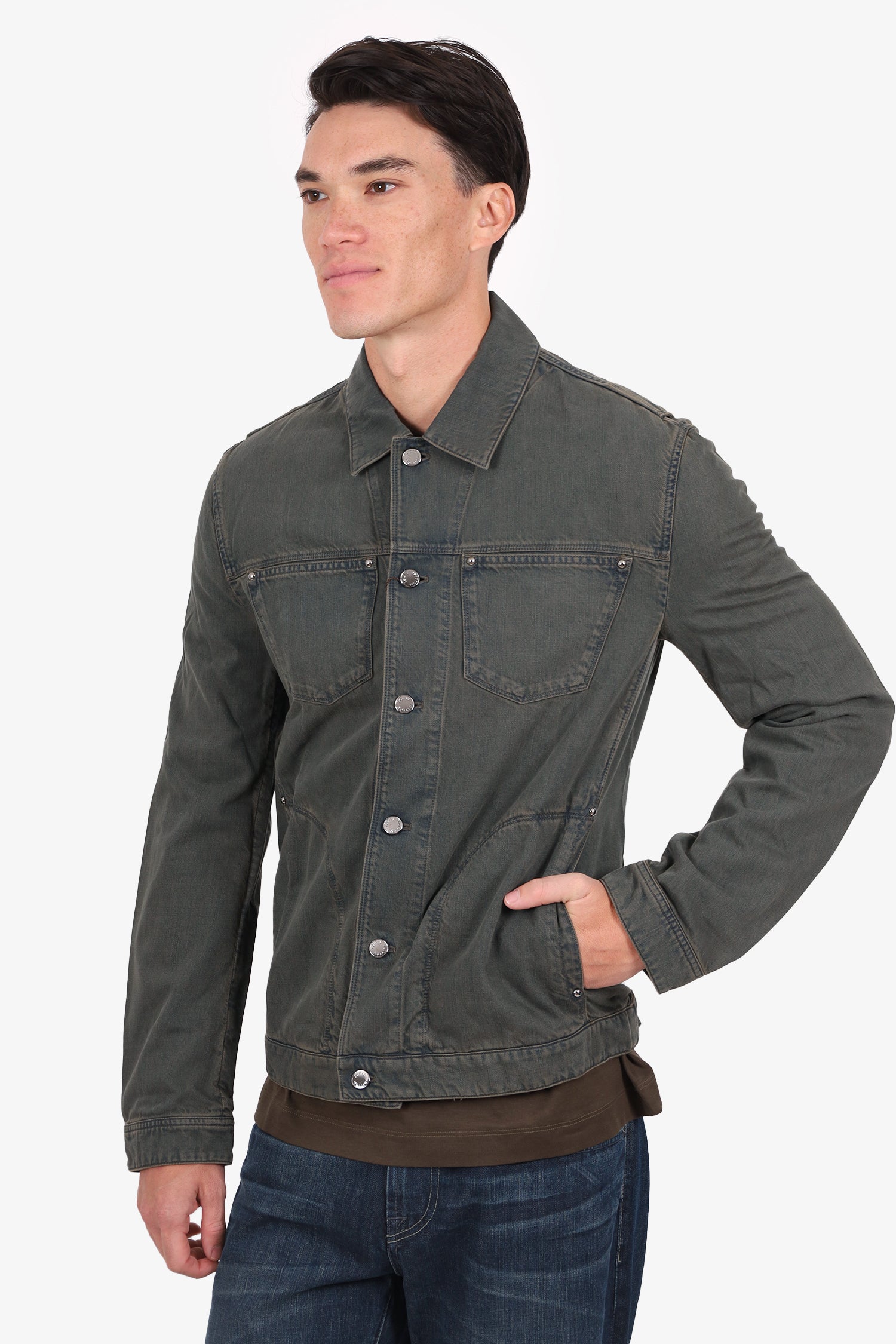 Refresh availabilityLouis Vuitton Washed Blue Button Down Denim Jacket. Pull-on. Collared neckline. Front button-up closure. Sleeve cuffs with button-up closure. 4 exterior pockets; 2 side slip and 2 chest slip. Palladium-tone hardware. Tonal stitching.