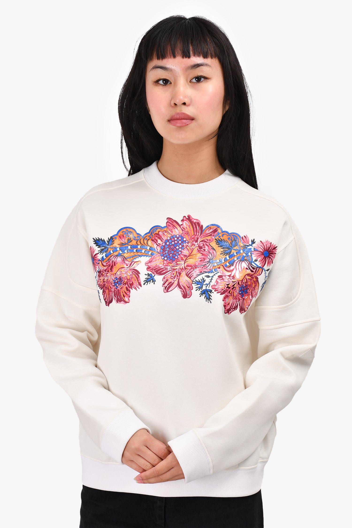 Refresh availabilityLouis Vuitton White/Pink Floral Crewneck Sweater. Round neck. Pull-on. Ribbed neck, cuffs and hem.