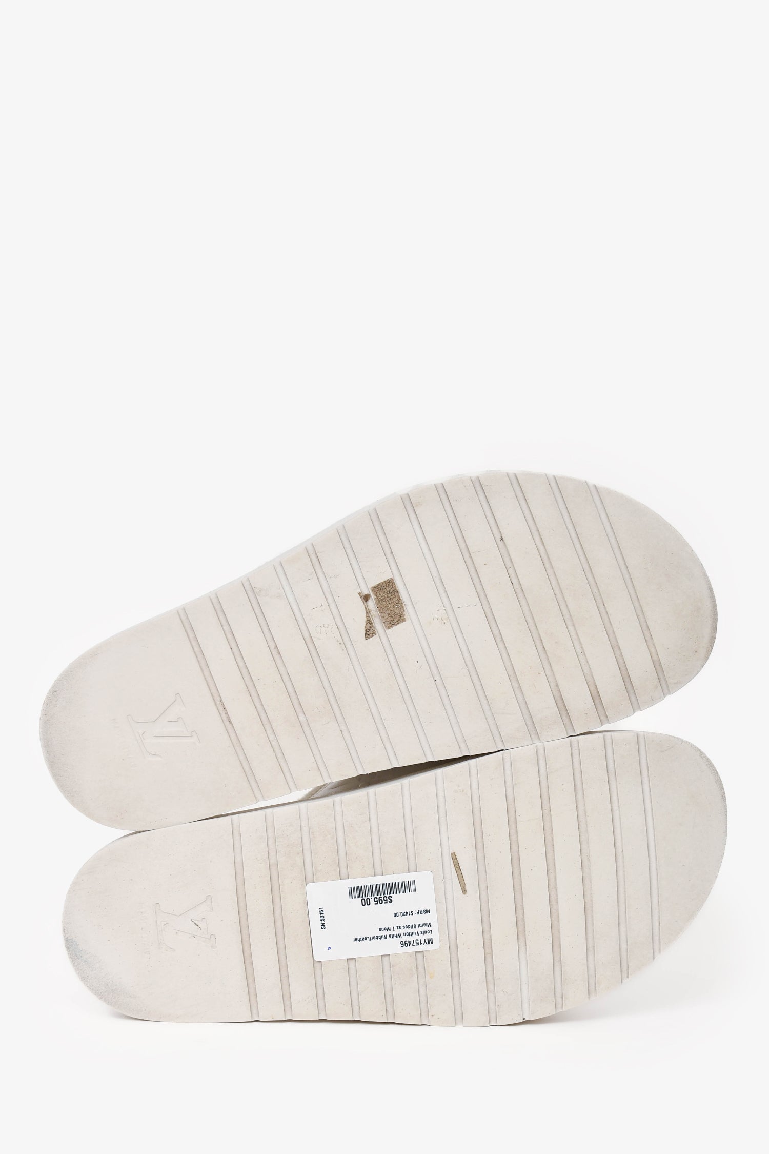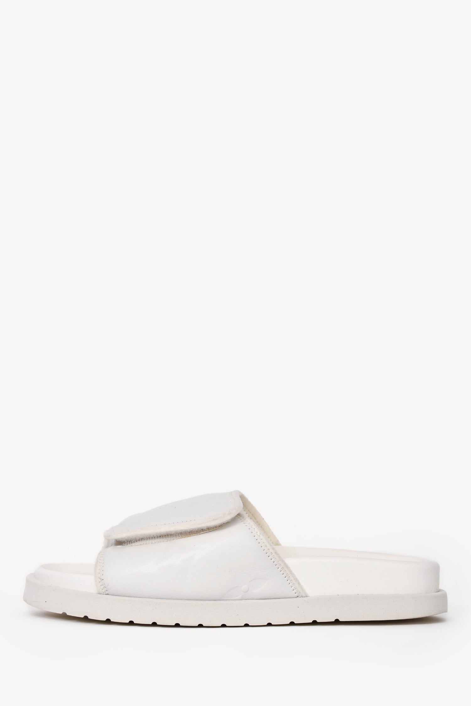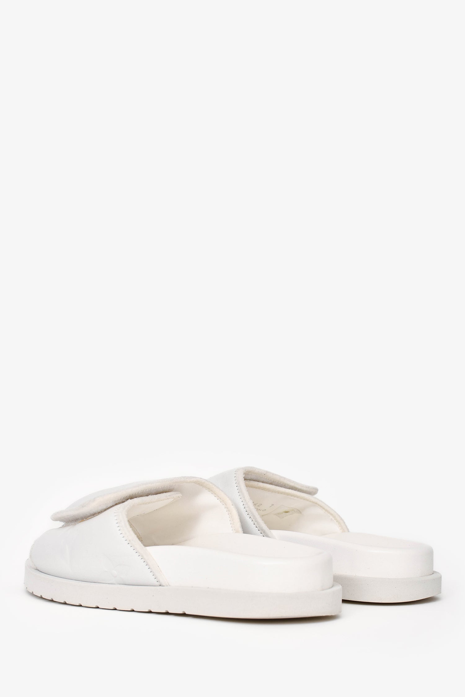 Refresh availabilityLouis Vuitton White Rubber/Leather Miami Slides. Adjustable velcro on the top. Tonal stitching.