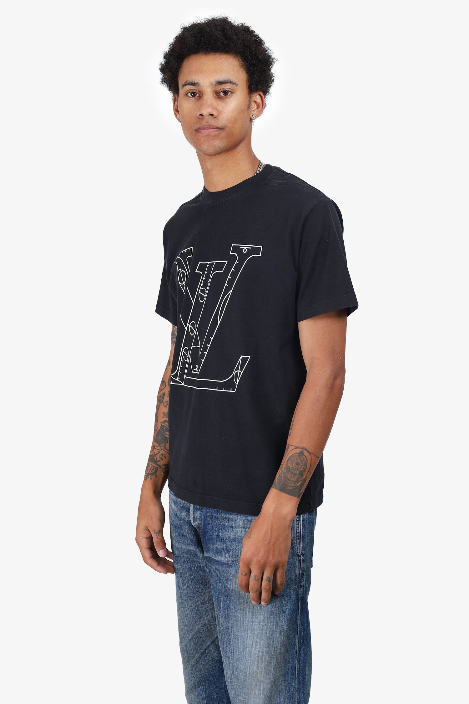 Refresh availabilityLouis Vuitton x NBA Black Logo T-Shirt. Round neckline. Pull-on. Unlined. Tonal stitching.
