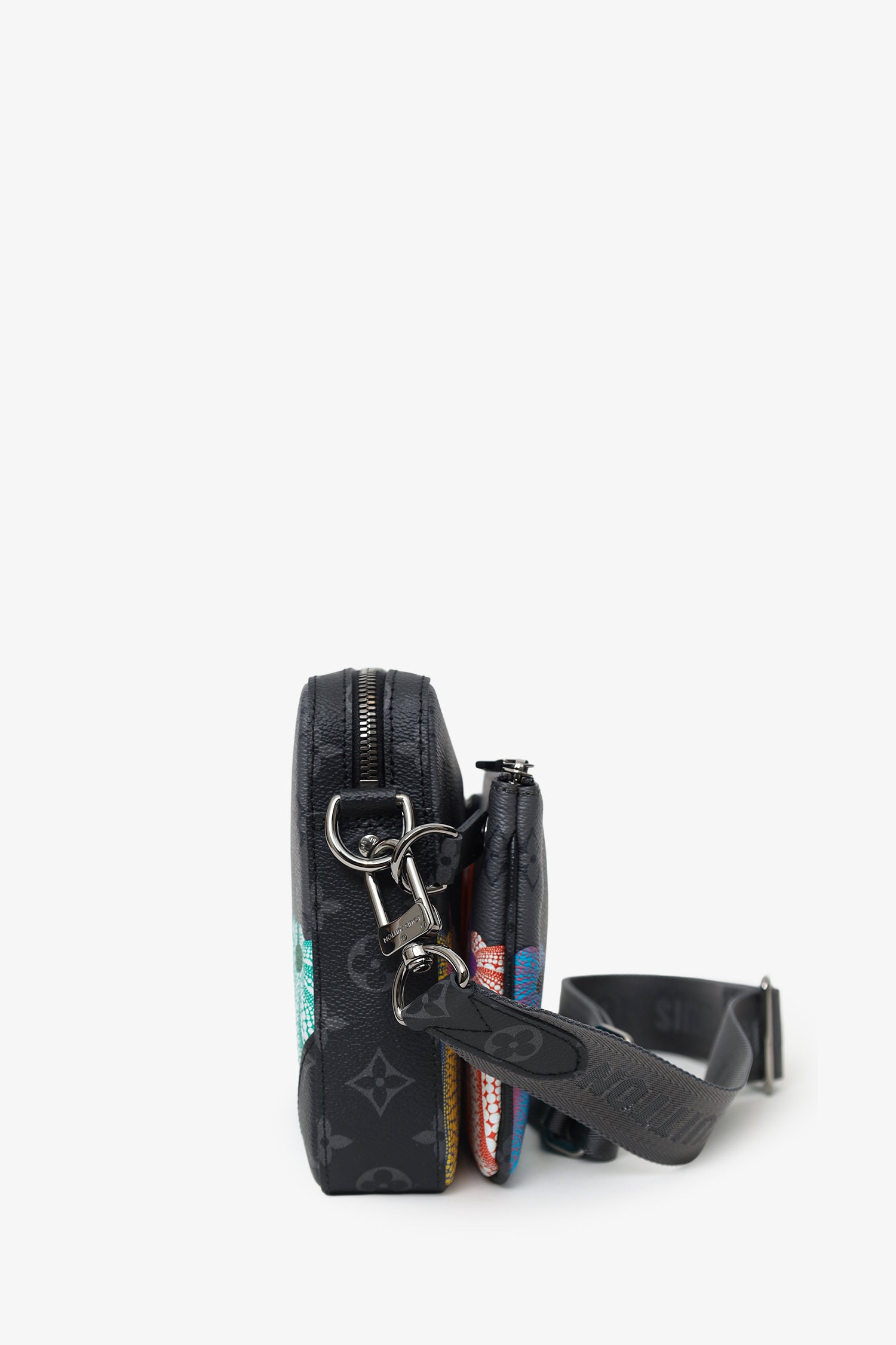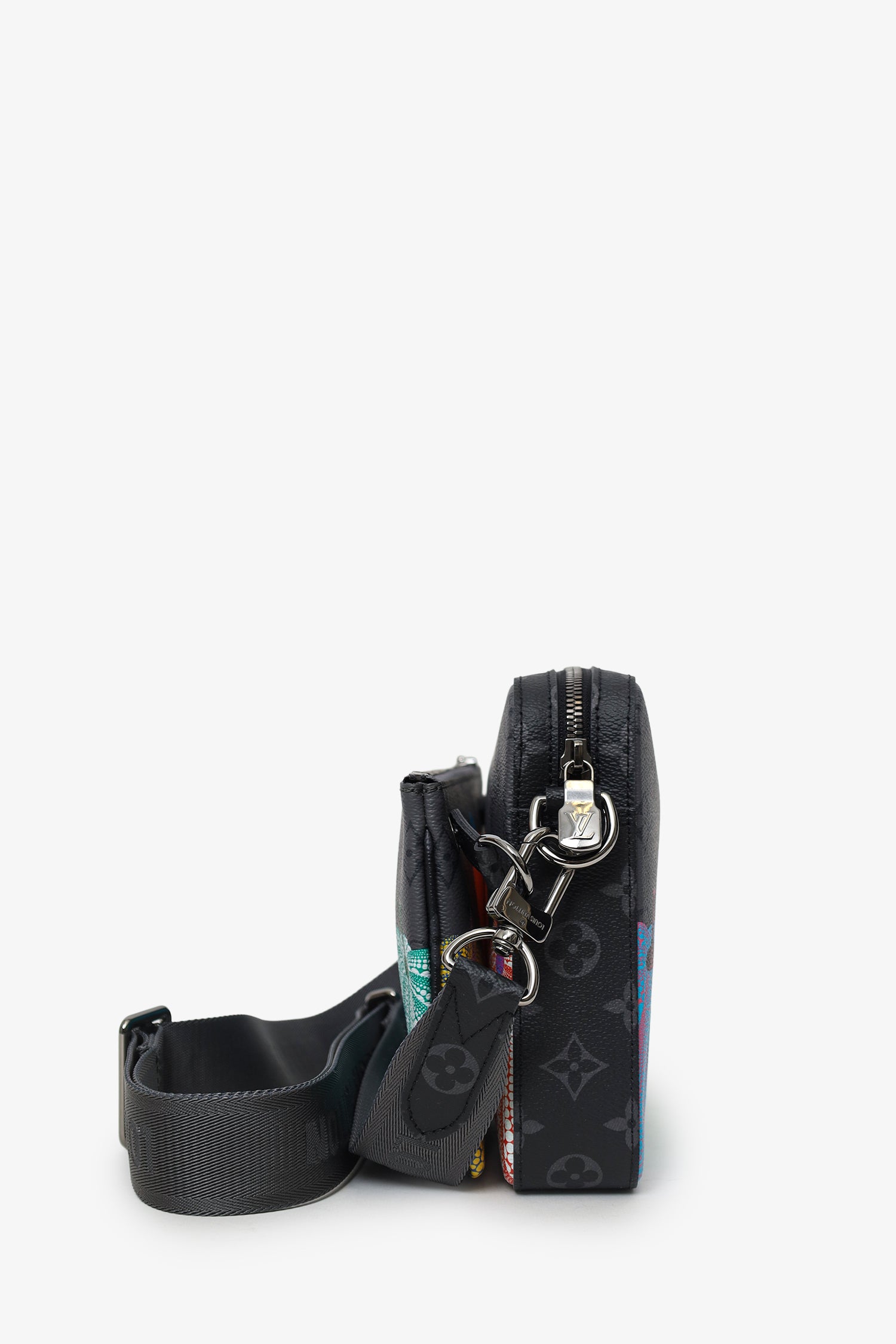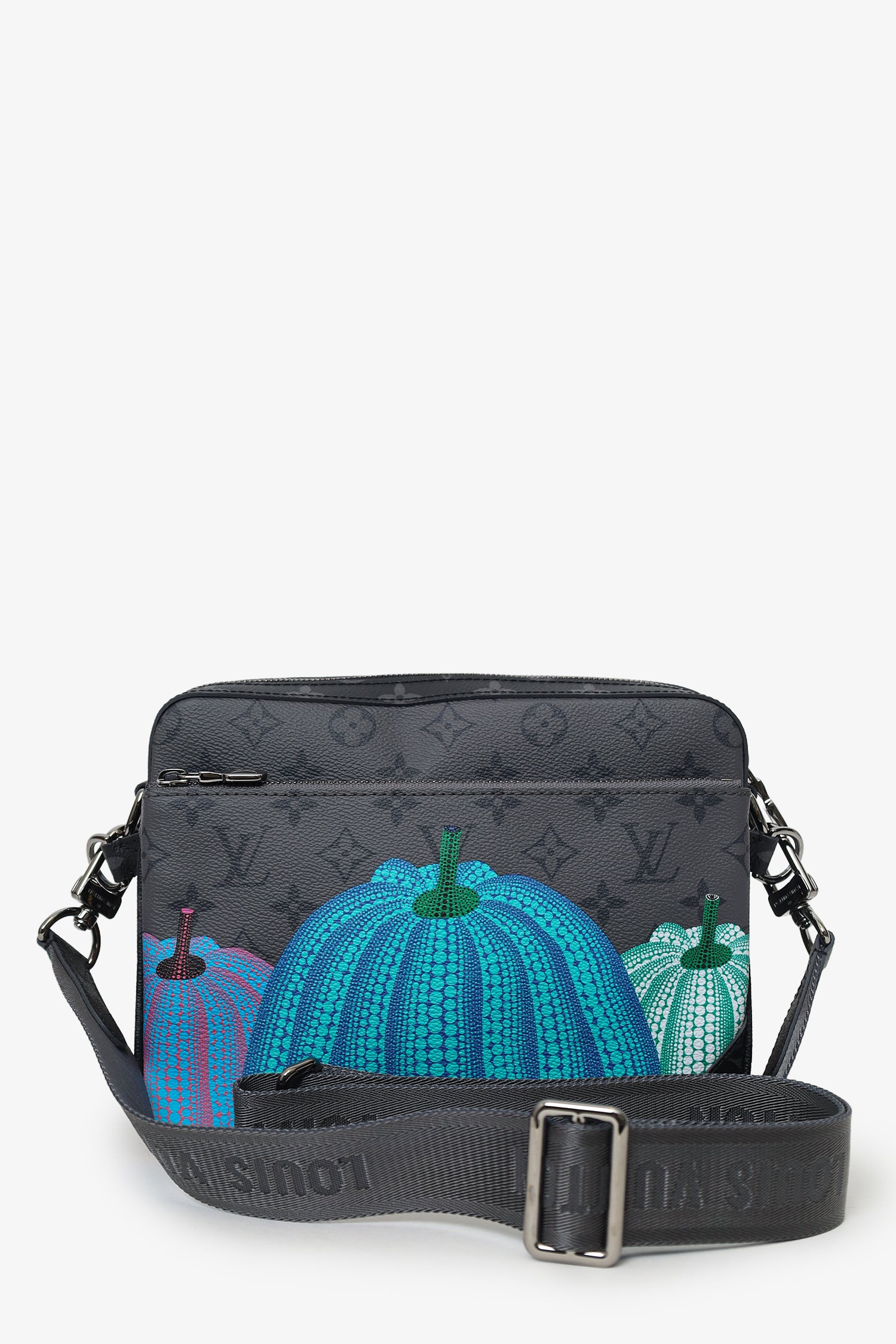 Refresh availabilityLouis Vuitton x Yayoi Kusama 2023 Reverse Monogram Eclipse Trio Messenger Bag. Top zip closure. Adjustable and removable crossbody strap with clasp closure. Lined interior with single slip pocket. 2 additional removable zip-up pouches with lined interiors. Gunmetal-tone hardware. Tonal stitching.