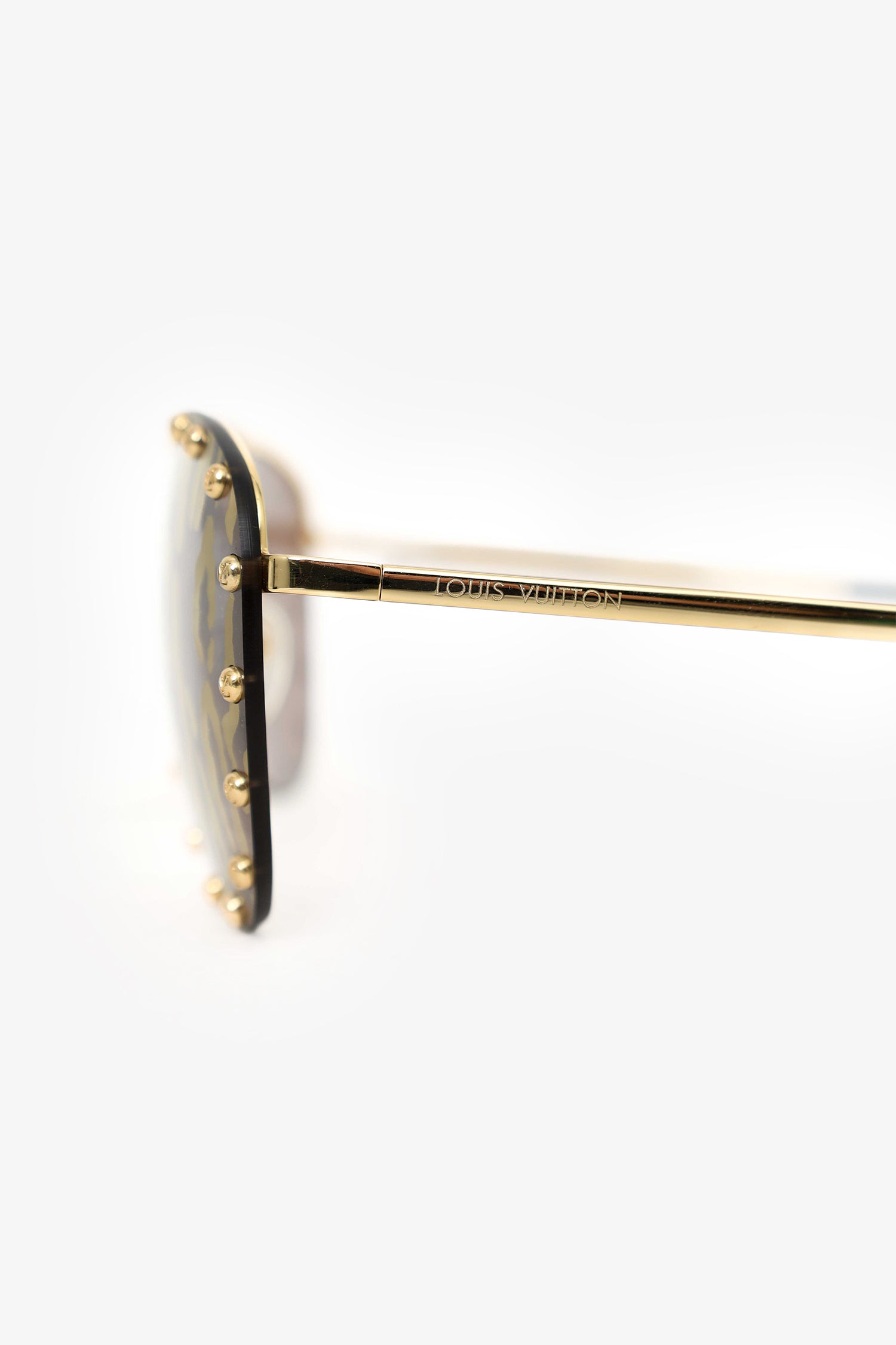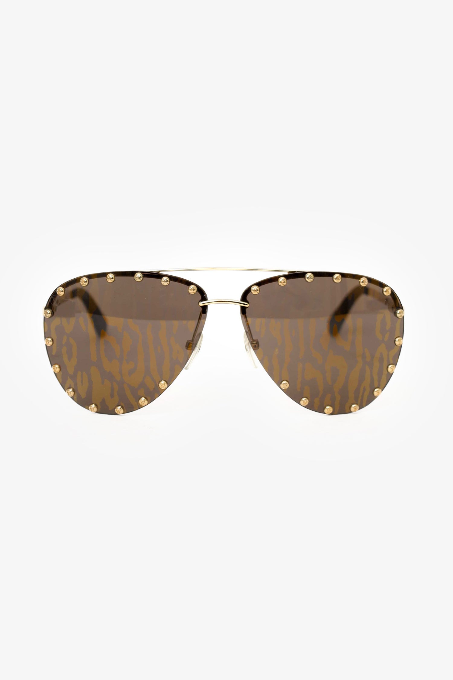 Refresh availabilityLouis Vuitton Zebra Aviator Studded Sunglasses. Adjustable nose pads. Printed lenses. Gold-tone hardware.