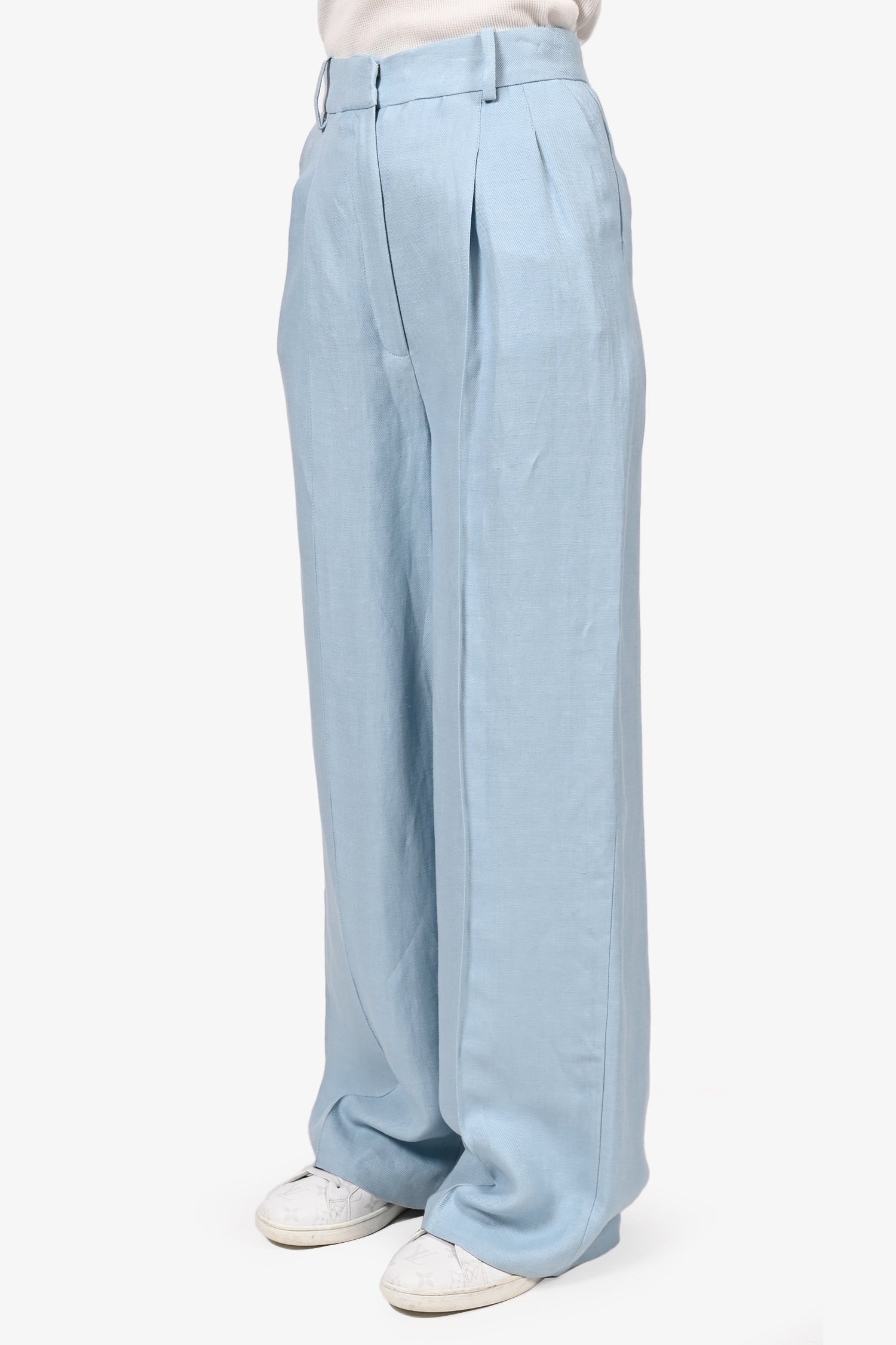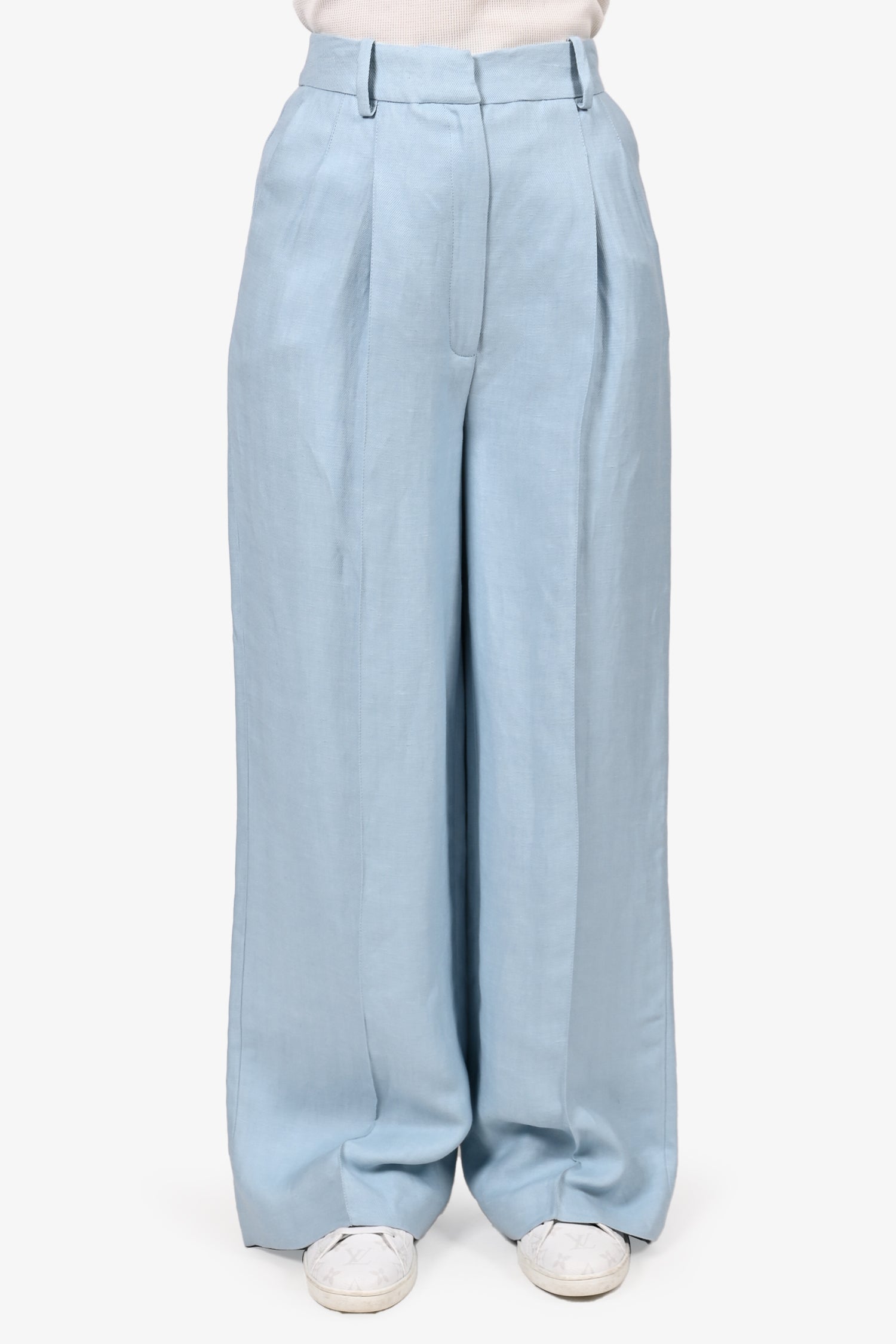 LouLou Studio Blue Linen Blend Pleated Trousers Size S