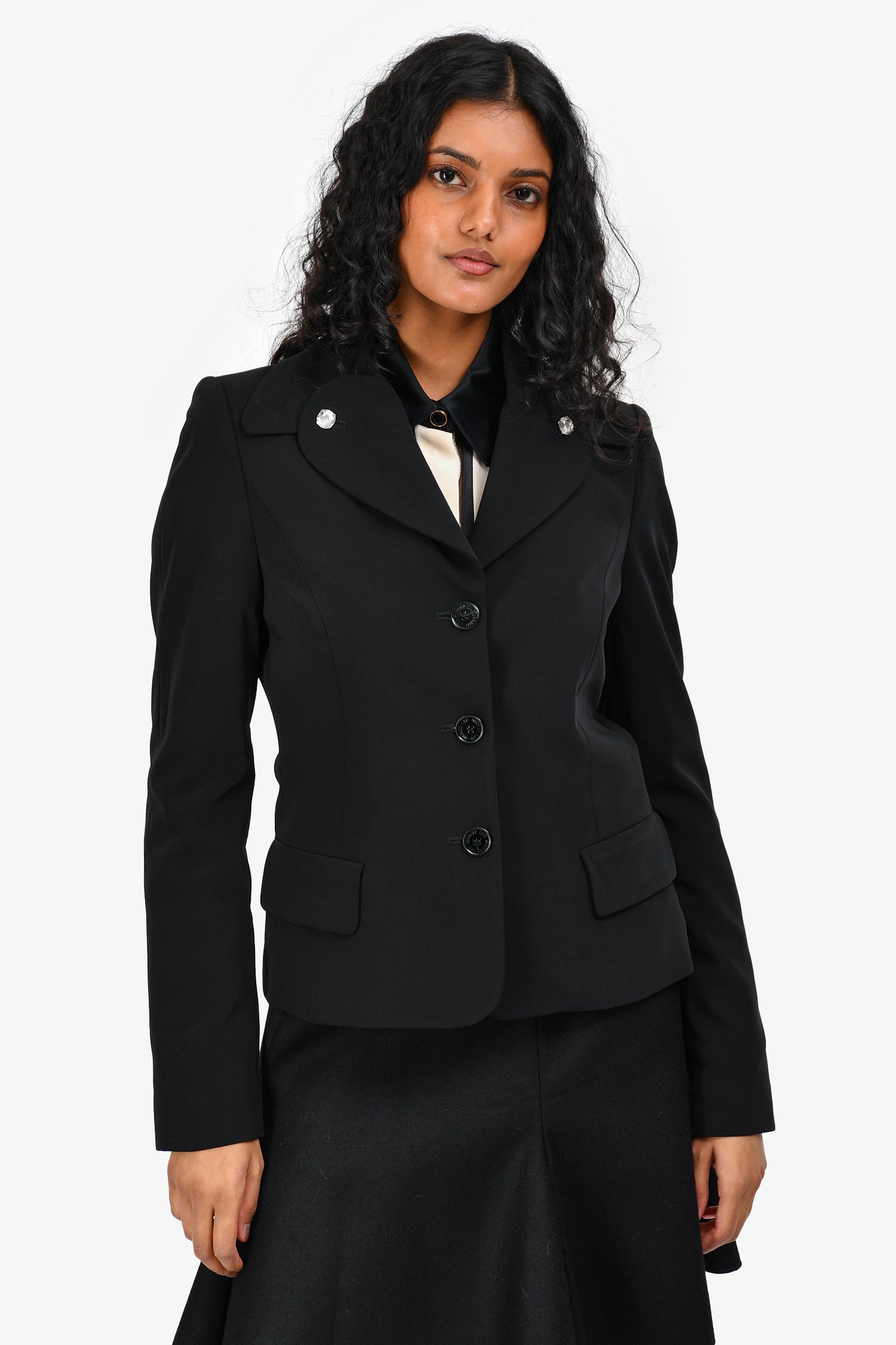 Refresh availabilityLove Moschino Black Crystal Embellished Blazer. Front button-down closure. Crystal button detail at collar. Lined. Tonal stitching.